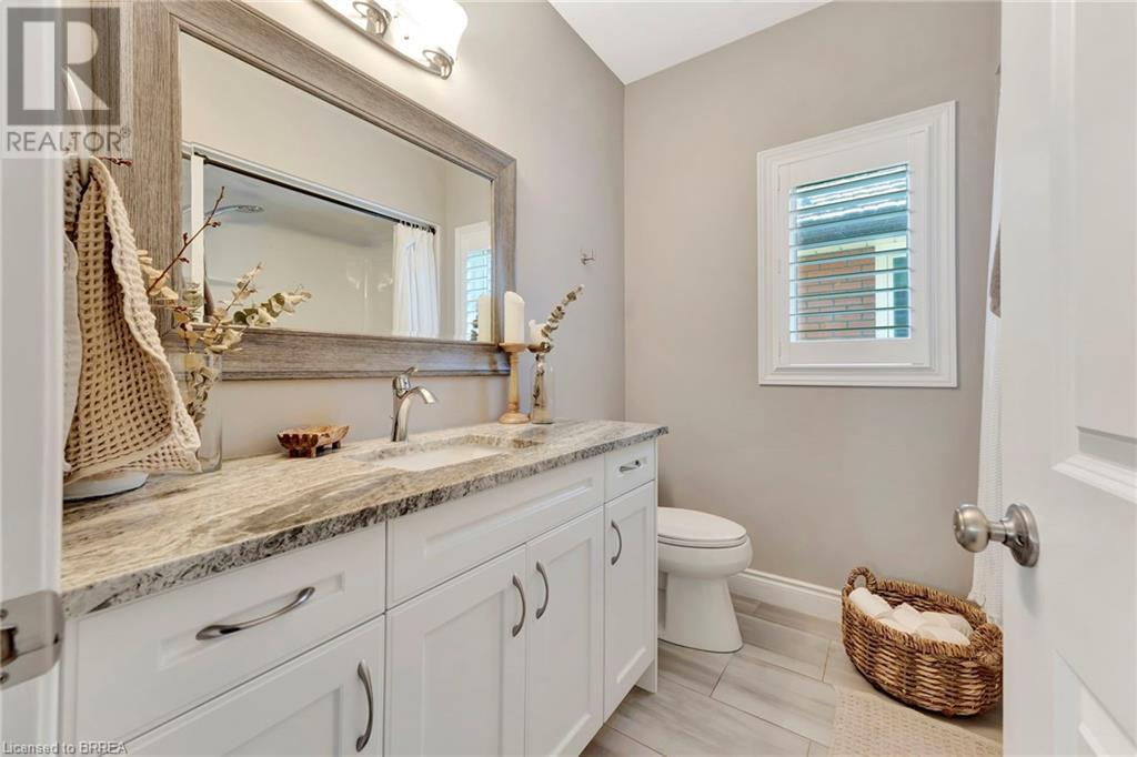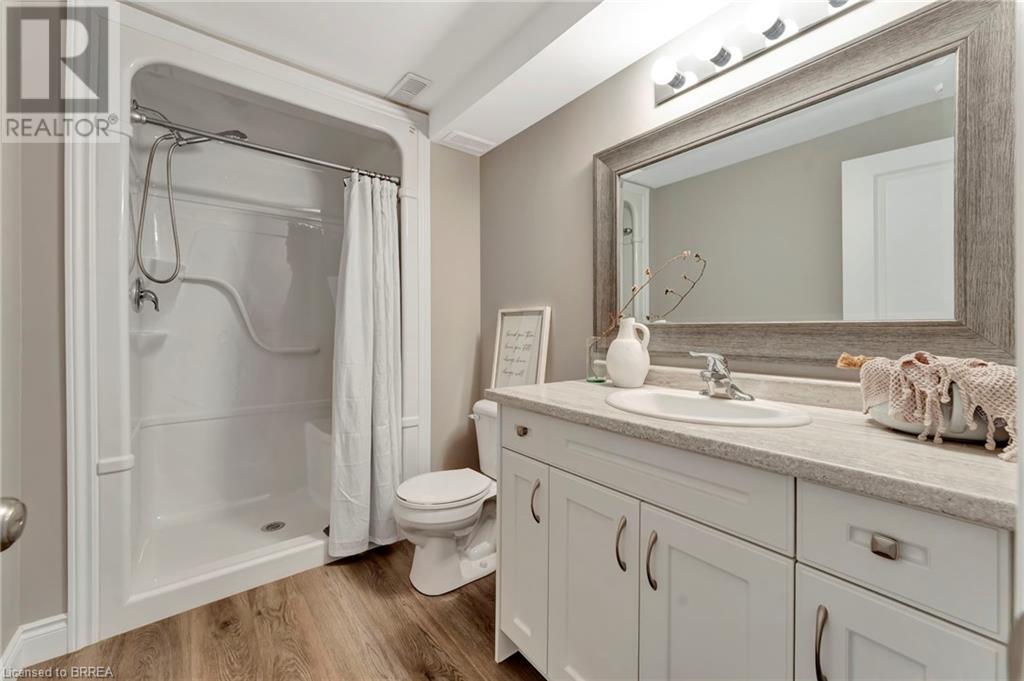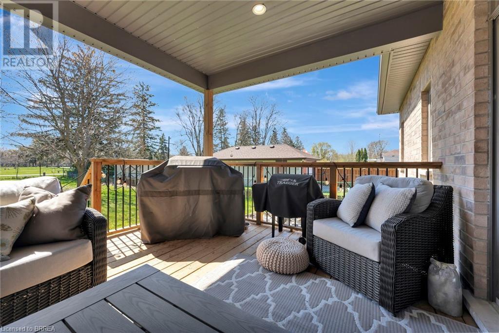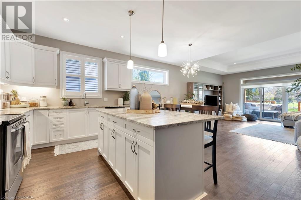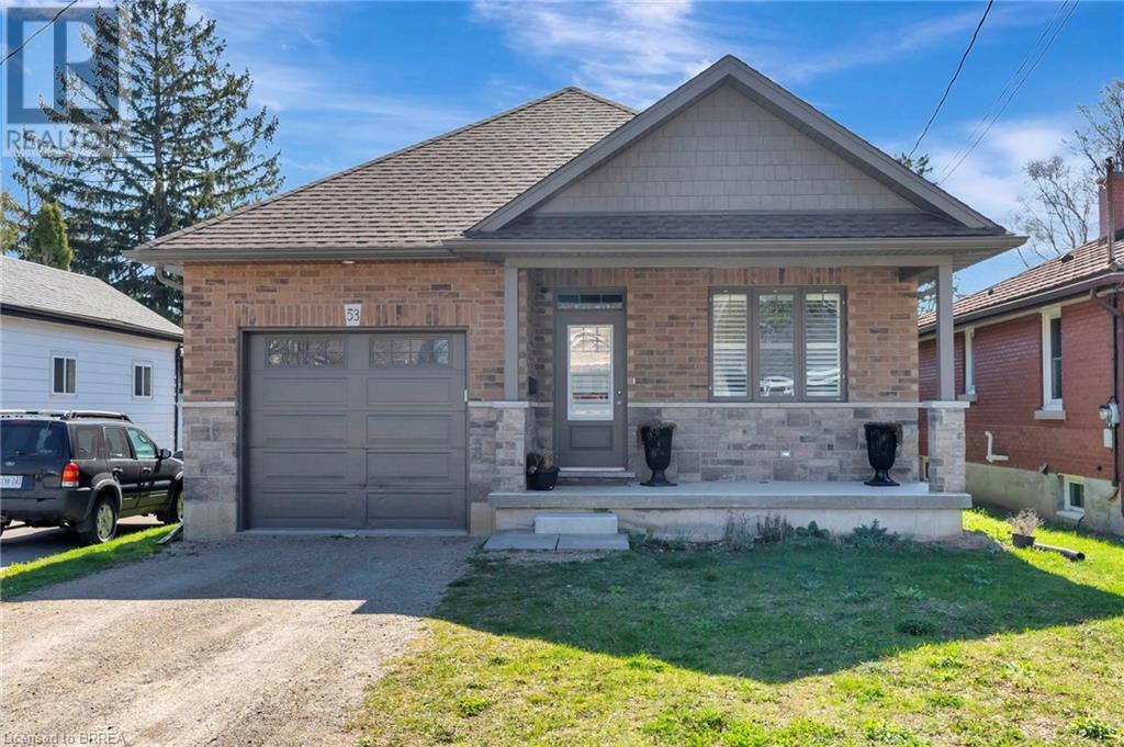 Welcome to 53 Herbert Street, nestled in the picturesque city of Brantford. This meticulously crafted property boasts an array of upscale features and meticulous attention to detail throughout. Step into the main level and immerse yourself in the seamless open-concept living, dining, and kitchen area, adorned with gleaming hardwood flooring. The kitchen, a haven for culinary enthusiasts, showcases stainless steel appliances, a double sink, and a convenient eat-in island. Adjacent to the kitchen, the bright and airy dining and living space beckons, offering access to the expansive backyard retreat. Outside, a sprawling covered deck awaits, overlooking the vast backyard that seamlessly blends into a serene park and school grounds. Retreat to the primary bedroom sanctuary, featuring hardwood floors, elegant California shutters, a spacious walk-in closet, and a lavish 4-piece ensuite boasting a luxurious shower. Another carpet-free bedroom and an additional 3- piece bathroom grace the main level, ensuring comfort and convenience for residents and guests alike. Descend to the lower level to discover a generous recreation room adorned with hardwood flooring and a cozy gas fireplace, perfect for gatherings and relaxation. This level also houses a practical laundry room, an additional 3-piece washroom, and a versatile room with hardwood floors, offering endless possibilities for use. Don't miss out on the chance to experience the epitome of turn-key living. Schedule your viewing of this exceptional property today and make it yours! (id:55009)