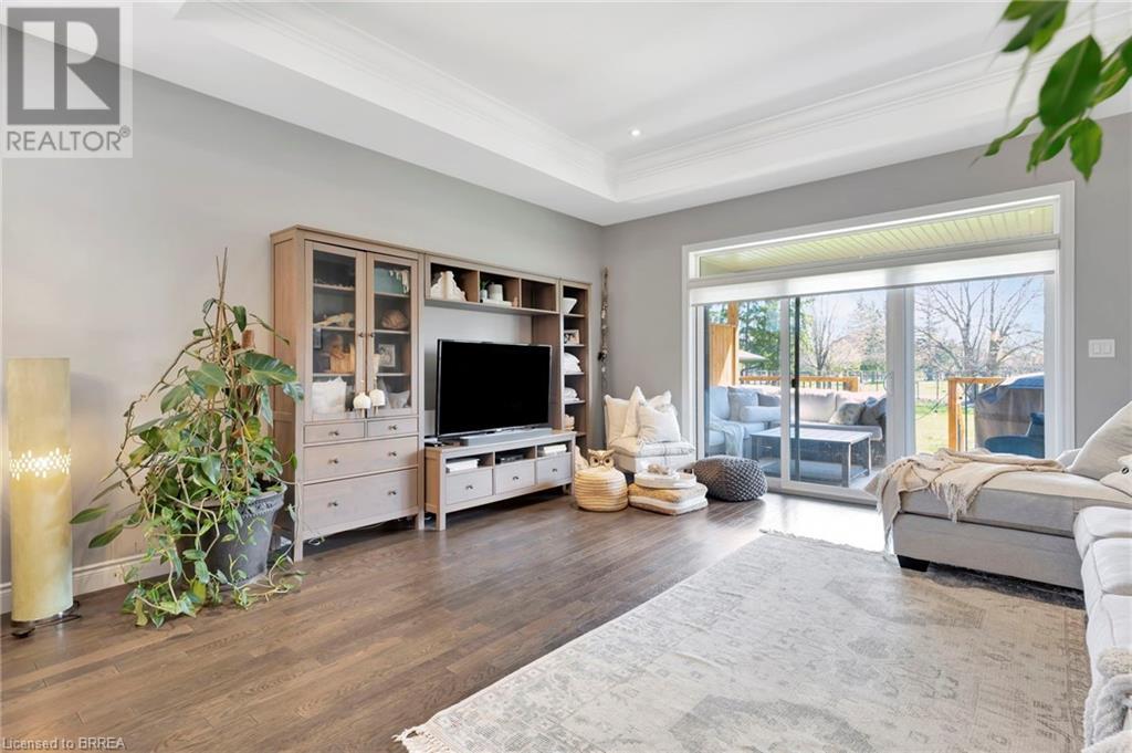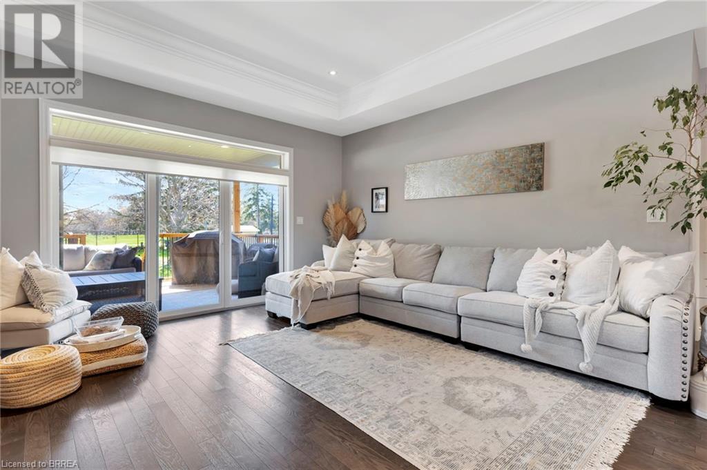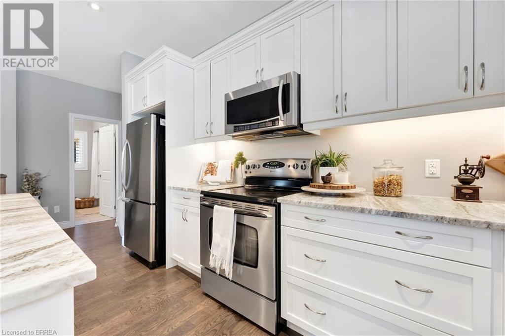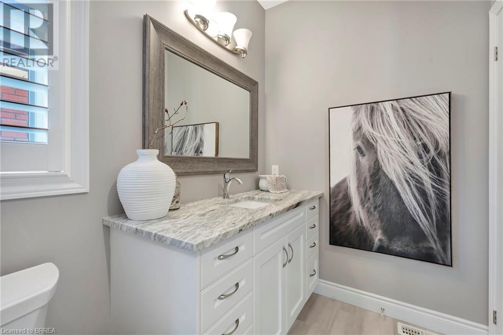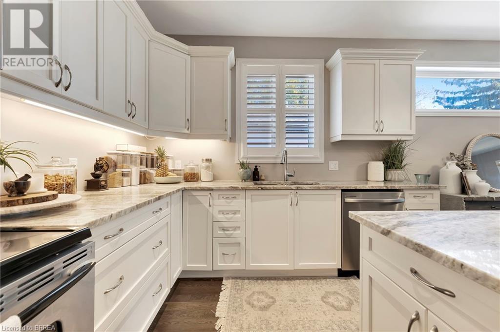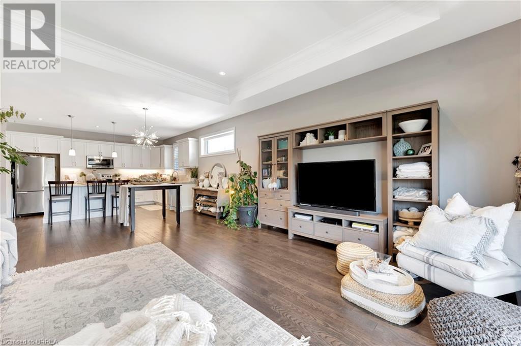 Welcome to 53 Herbert Street, nestled in the picturesque city of Brantford. This meticulously crafted property boasts an array of upscale features and meticulous attention to detail throughout. Step into the main level and immerse yourself in the seamless open-concept living, dining, and kitchen area, adorned with gleaming hardwood flooring. The kitchen, a haven for culinary enthusiasts, showcases stainless steel appliances, a double sink, and a convenient eat-in island. Adjacent to the kitchen, the bright and airy dining and living space beckons, offering access to the expansive backyard retreat. Outside, a sprawling covered deck awaits, overlooking the vast backyard that seamlessly blends into a serene park and school grounds. Retreat to the primary bedroom sanctuary, featuring hardwood floors, elegant California shutters, a spacious walk-in closet, and a lavish 4-piece ensuite boasting a luxurious shower. Another carpet-free bedroom and an additional 3- piece bathroom grace the main level, ensuring comfort and convenience for residents and guests alike. Descend to the lower level to discover a generous recreation room adorned with hardwood flooring and a cozy gas fireplace, perfect for gatherings and relaxation. This level also houses a practical laundry room, an additional 3-piece washroom, and a versatile room with hardwood floors, offering endless possibilities for use. Don't miss out on the chance to experience the epitome of turn-key living. Schedule your viewing of this exceptional property today and make it yours! (id:55009)