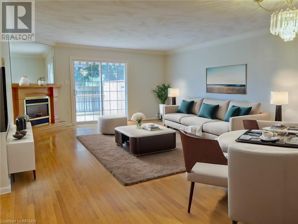 $458 MonthlyMOTIVATED SELLER! Discover the perfect blend of comfort and convenience in this delightful one-floor condominium. Located in a highly sought-after area, this property offers easy access to shopping, scenic trails, and major highways. Over 1,200 sq. ft. above grade, featuring 2 spacious bedrooms. The primary bedroom includes a walk-through to a large 4-piece bathroom with a walk-in bathtub for added safety and a convenient laundry closet. Enjoy a generous open-concept dining and living area with a cozy gas fireplace and patio doors leading to a private, expansive deck. The motorized awning provides comfort as you relax and enjoy the serene green space and mature trees. The kitchen features cupboards galore & expansive counters - perfect the foodie in the family. The finished lower level features a large recreation room with another gas fireplace, an additional bedroom or office, and a second 3-piece bathroom. This level also has a large storage room. One-floor living in this well-maintained condominium is rare and highly desirable. Don’t miss out on this opportunity to make this your forever home!! (id:55009)