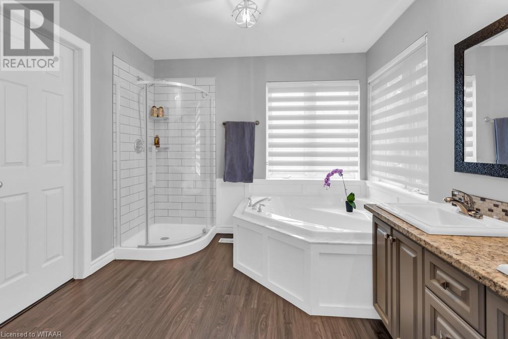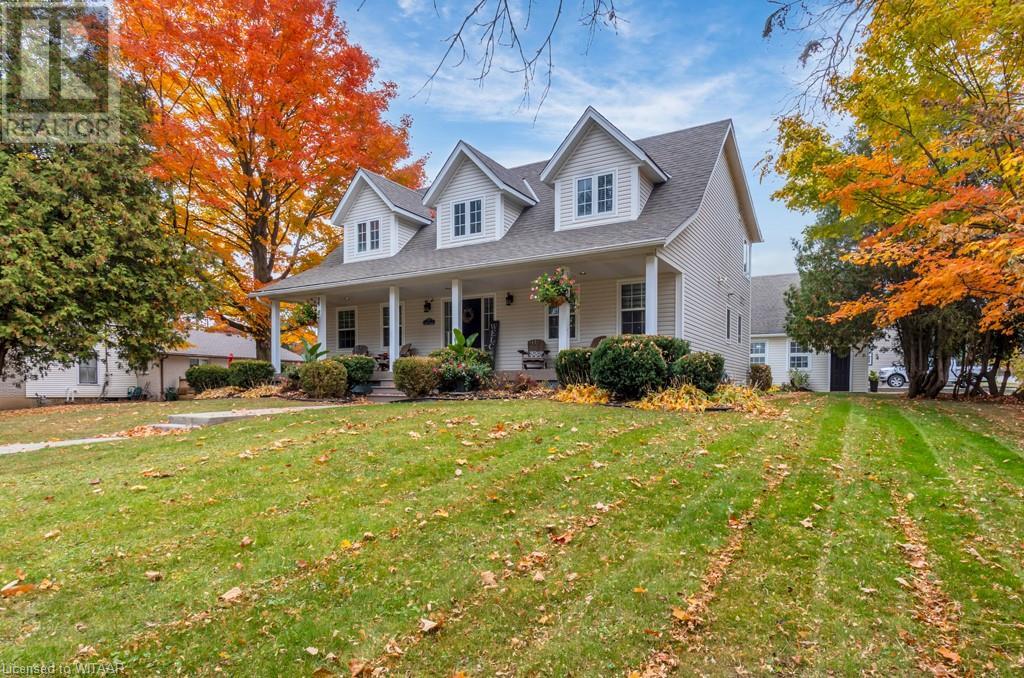 Welcome to your dream Cape Cod style home in the quiet community of Ayr. A perfect blend of classic charm and modern convenience. This stunning property features an oversized double garage, providing ample space for vehicles and storage ,or finish the loft for a perfect complete shop for the hobbyist! Step inside to discover an open concept kitchen and living area complete with a gas fireplace, ideal for entertaining and family gatherings. The kitchen is a chef’s delight, equipped with modern appliances, plenty of counter space, and a large island that doubles as a breakfast bar. The living areas are spacious and inviting, with large windows and high ceilings. The main floor also includes an additional bedroom with a cheater door to a full bath, the space could also be a work from home office. The home boasts three generously sized bedrooms on second floor and three full baths in the home. The primary bedroom is a true retreat, complete with a luxurious 5-piece ensuite and a walk-in closet. The ensuite features a soaking tub, a separate The finished basement is a versatile space, with a large recreation room that could be a home theater and still have enough space for a games area . It provides additional living space and endless possibilities for customization. The rough in bath is ready for finishing to provide additional comforts Located close to scenic walking trails and the quaint downtown area of Ayr, this home offers the best of both worlds – a peaceful, suburban setting with easy access to local shops, cafes, and amenities. Whether you’re enjoying a morning stroll on the trails or exploring the charming downtown, you’ll love the lifestyle this location offers. Don’t miss the opportunity to make this beautiful Cape Cod style house your new home. It’s a perfect blend of elegance, comfort, and convenience, waiting for you to create lasting memories. (id:55009)