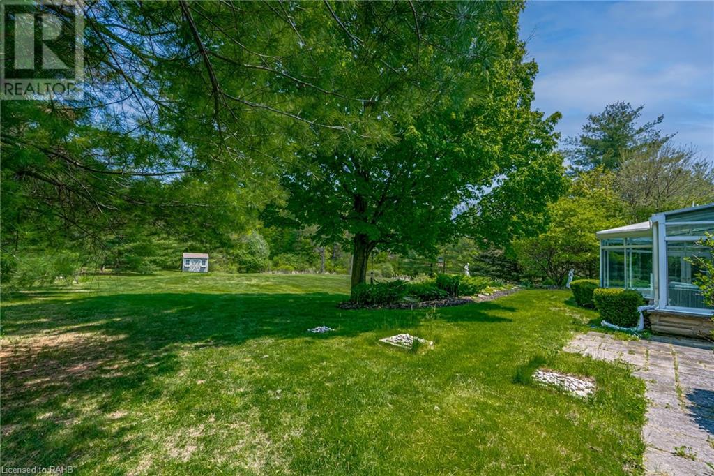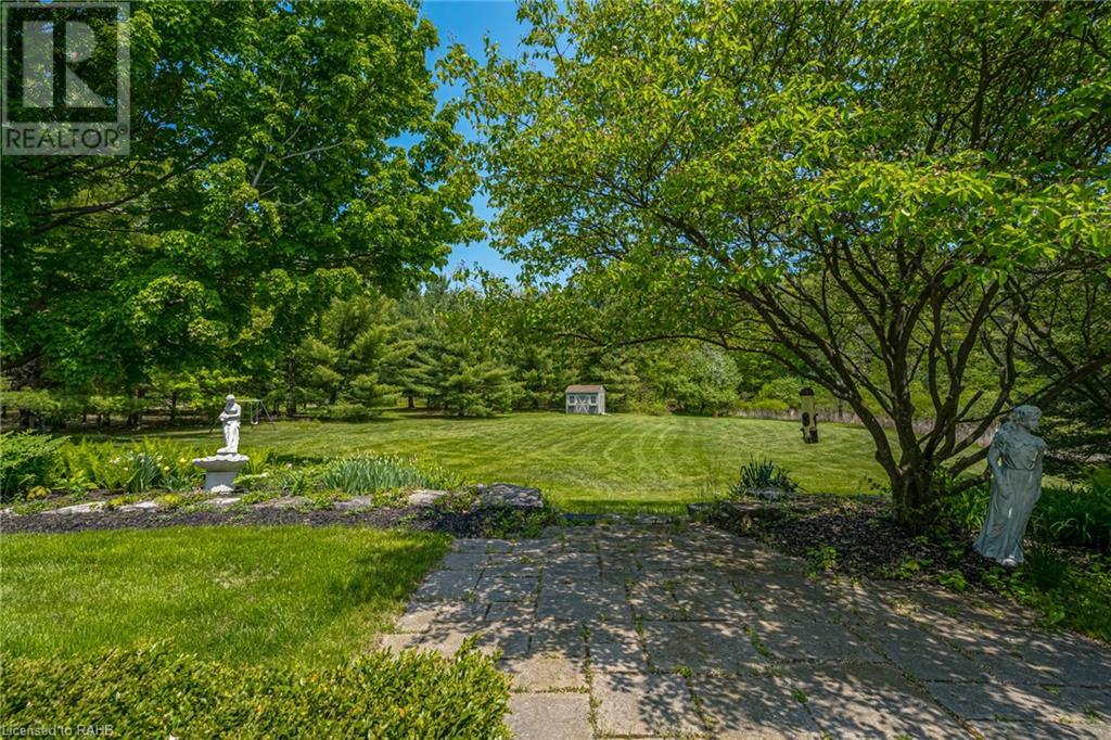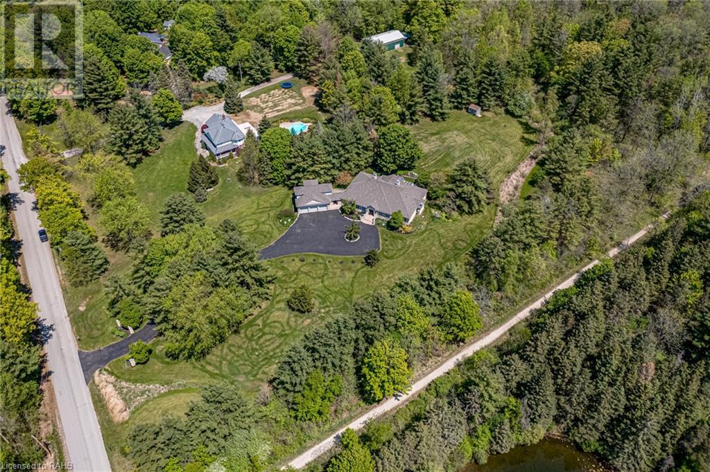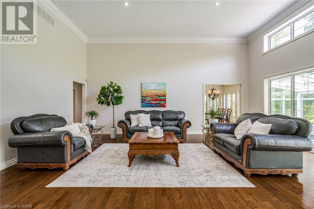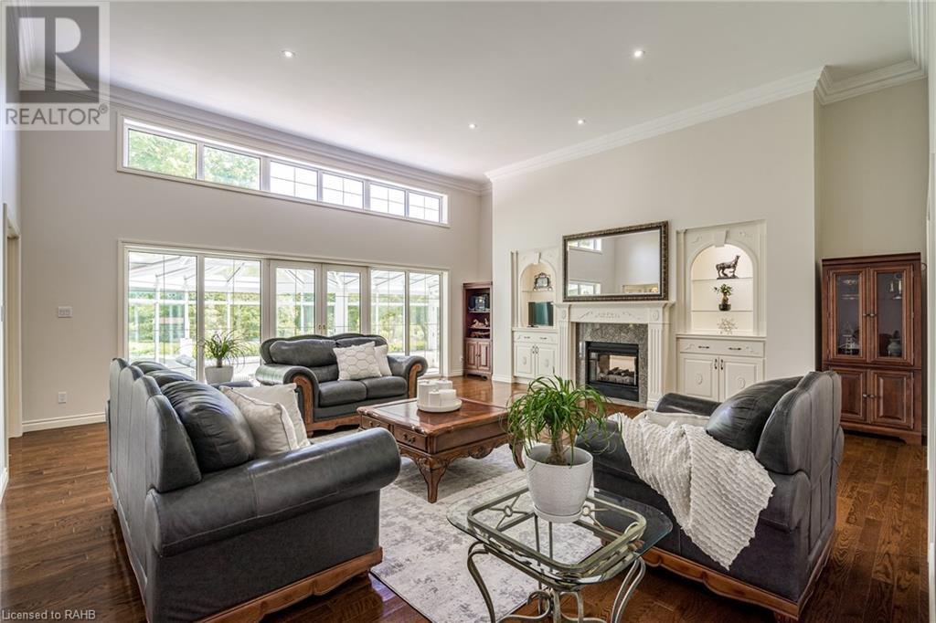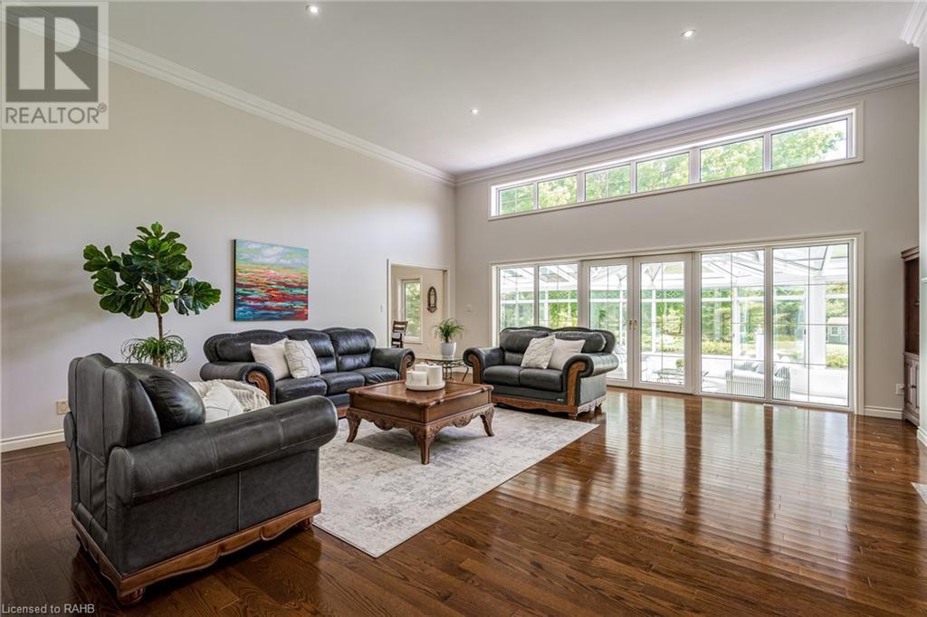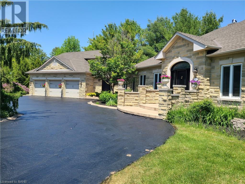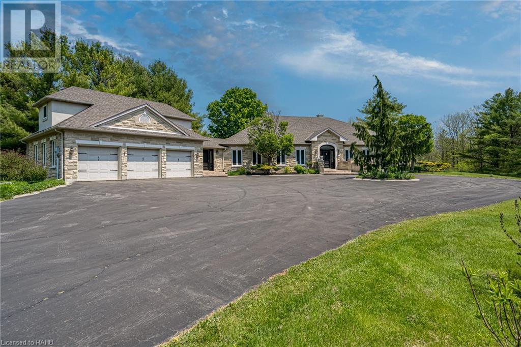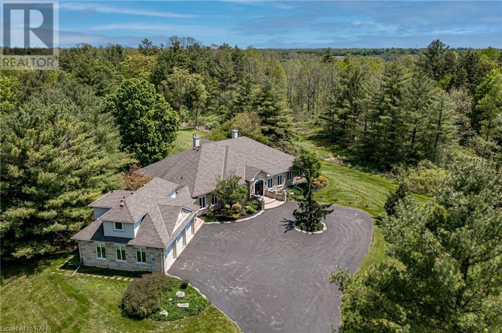 Introducing 53 Ranch Rd, a breathtaking property that offers sanctuary from fast-paced living just minutes from Ancaster, Dundas & Brantford. This custom built bungaloft is situated on a 3+ acre treed lot that offer tranquility and privacy with only one immediate neighbour. The gorgeous, professionally landscaped grounds are stunning all year long, as are the surrounding trails a streets. The long paved driveway leads to a 3 car garage with direct access to the home. Step through the front door into the grand foyer. Natural light floods the foyer & the rest of the 4000+ sqft home from the oversized top quality tilt&turn windows. You will feel at home in the gourmet eat-in kitchen, with its walk-in pantry and adjacent screened dining area. The family room is the heart of this quality home and features 13' soaring ceilings & a gas fireplace. The family room leads to the glass-enclosed solarium, with a hot-tub, conversation area and access to the backyard. Enjoy the glorious views as you unwind. The primary bedroom features a 5pc ensuite, large walk-in closet & a sitting area. 2 additional bedrooms can be found on the main floor, as well as a formal dining room off the kitchen. ln the other wing of the home, you will find a private inlaw/nanny suite, equipped with a private entrance, sitting area, bathroom & the potential for future kitchenette. Experience the tranquility of country living, minutes from city convenience. This enchanting property is unmatched. (id:55009)