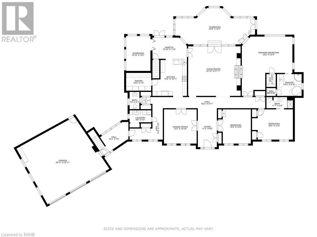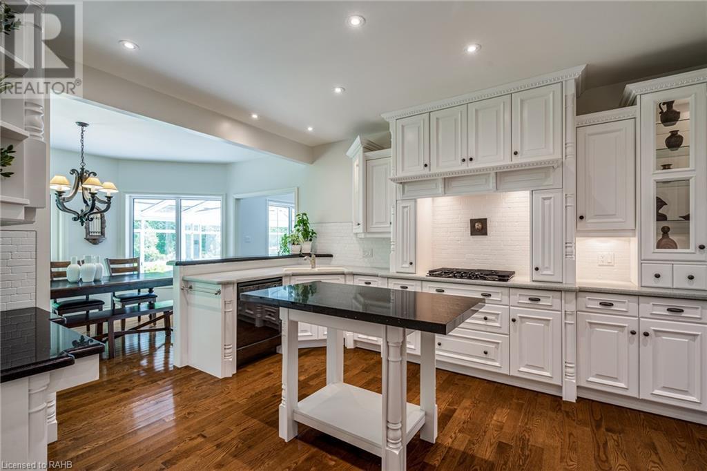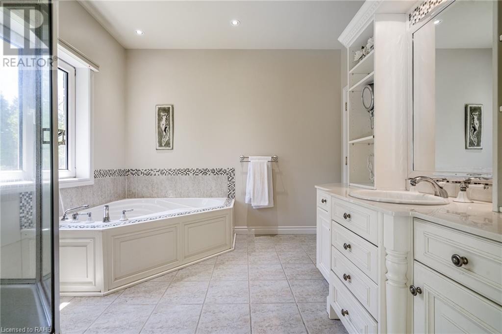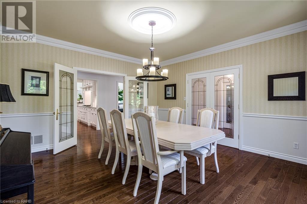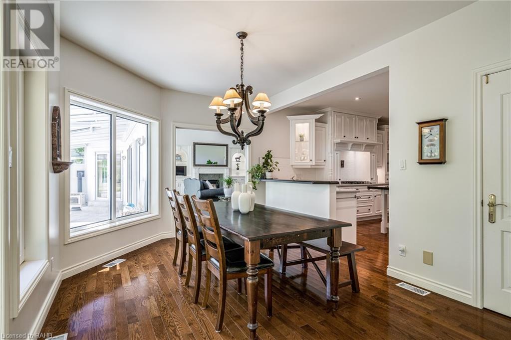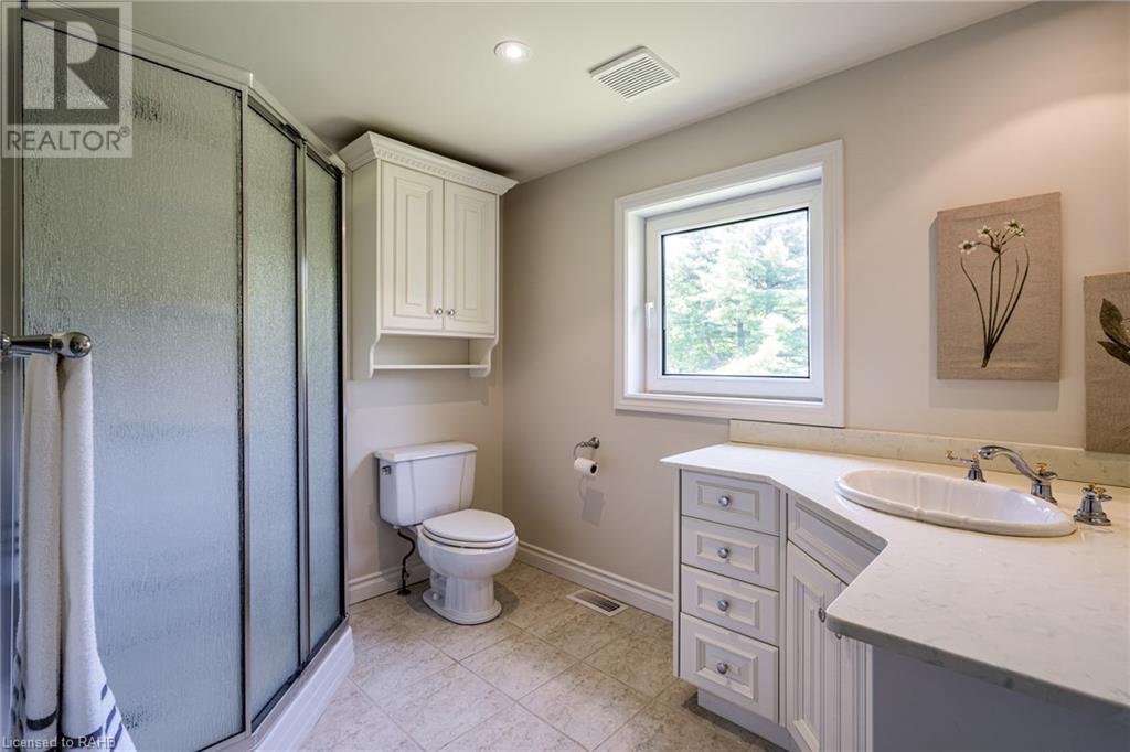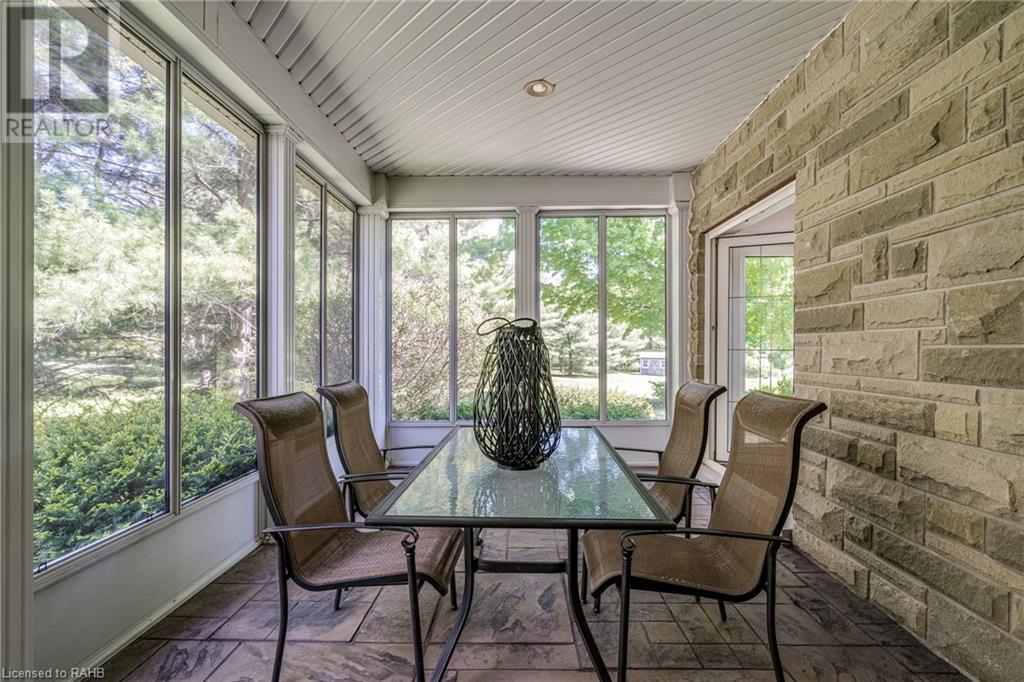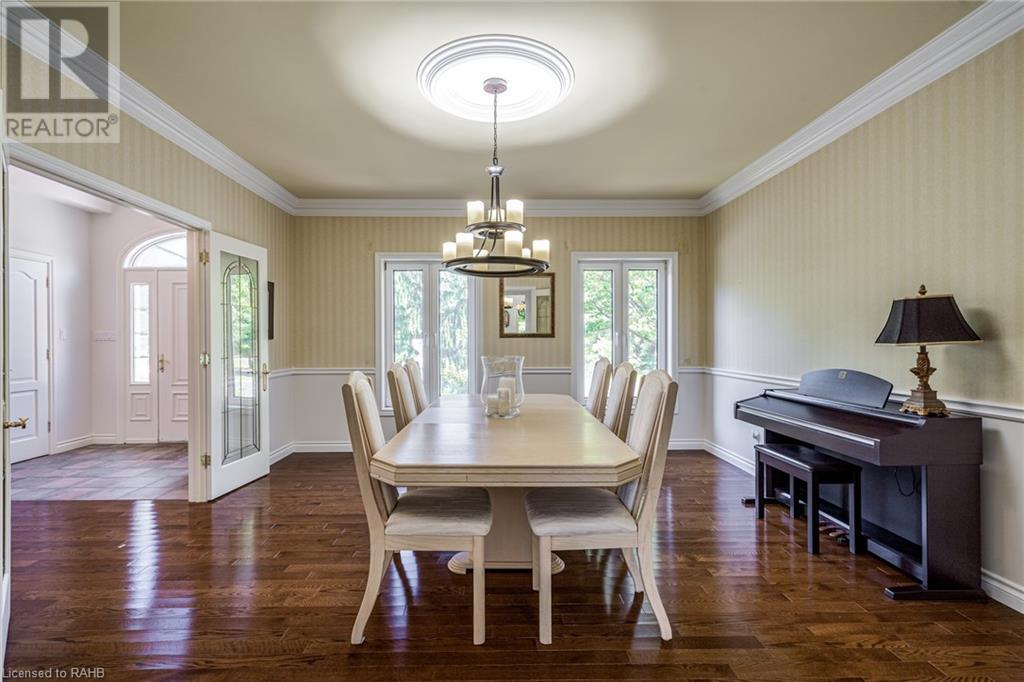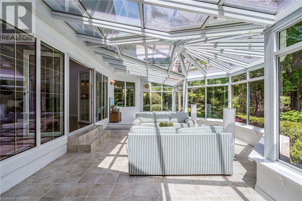Introducing 53 Ranch Rd, a breathtaking property that offers sanctuary from fast-paced living just minutes from Ancaster, Dundas & Brantford. This custom built bungaloft is situated on a 3+ acre treed lot that offer tranquility and privacy with only one immediate neighbour. The gorgeous, professionally landscaped grounds are stunning all year long, as are the surrounding trails a streets. The long paved driveway leads to a 3 car garage with direct access to the home. Step through the front door into the grand foyer. Natural light floods the foyer & the rest of the 4000+ sqft home from the oversized top quality tilt&turn windows. You will feel at home in the gourmet eat-in kitchen, with its walk-in pantry and adjacent screened dining area. The family room is the heart of this quality home and features 13' soaring ceilings & a gas fireplace. The family room leads to the glass-enclosed solarium, with a hot-tub, conversation area and access to the backyard. Enjoy the glorious views as you unwind. The primary bedroom features a 5pc ensuite, large walk-in closet & a sitting area. 2 additional bedrooms can be found on the main floor, as well as a formal dining room off the kitchen. ln the other wing of the home, you will find a private inlaw/nanny suite, equipped with a private entrance, sitting area, bathroom & the potential for future kitchenette. Experience the tranquility of country living, minutes from city convenience. This enchanting property is unmatched. (id:55009)