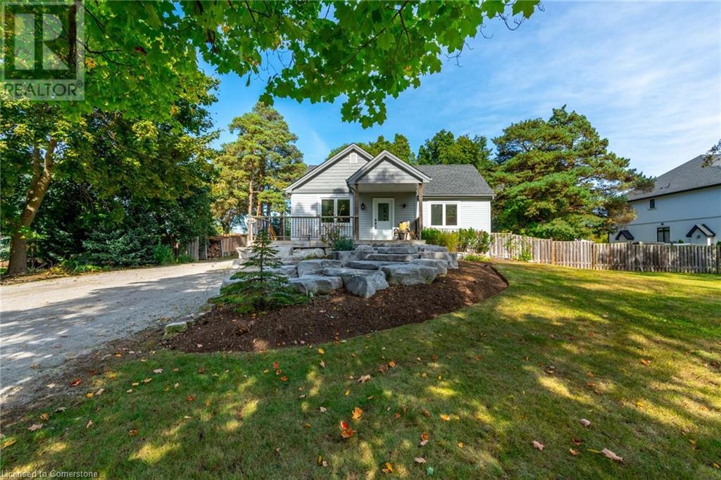 Welcome to this charming bungalow on 2.03 acres in east Waterdown! This beautifully updated bungalow offers the tranquility of country-style living with all the modern conveniences. Featuring four spacious bedrooms, two full bathrooms, and an open, inviting floor plan, this home is sure to impress. The renovated kitchen boasts stone countertops, a large island with a breakfast bar, and stainless-steel appliances—perfect for both everyday meals and entertaining. Enjoy peaceful sunsets from the privacy of your front porch, or host gatherings on the expansive back patio, complete with a built-in firepit and surrounded by mature trees. With 2+/- acres of land, the possibilities are endless—whether you're dreaming of adding a workshop, starting a garden, enjoying outdoor recreation, or planning future expansions. This property is conveniently located just minutes from major highways (407, QEW and 403) and all essential amenities, while still providing the peaceful privacy you crave. Don't be TOO LATE*! *REG TM. RSA (id:55009)