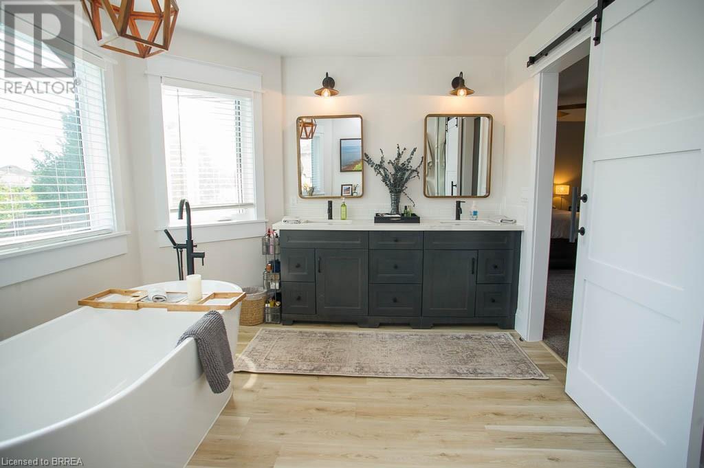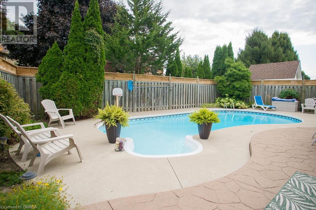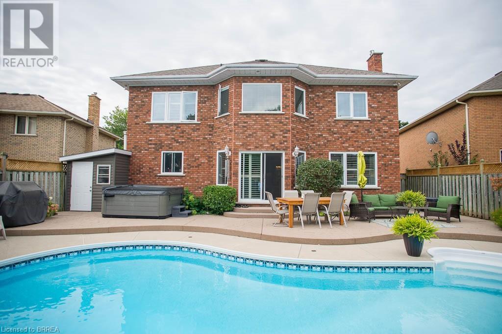 Welcome home to 54 Blackfriar Lane, a stunning all brick, 2-storey home located on a quiet tree-lined street in the North End of Brantford. This 4 bed, 4.5 bathroom home has more than 5000 square feet of finished living space, with a finished basement! This home offers curb appeal & more with a stunning brick exterior, with black highlights including a stamped concrete driveway & walkway that leads you up to the front entrance. The foyer offers high ceilings with a curved staircase as a focal point. A formal living room & dining room combination is perfect for entertaining your guests for special occasions. The kitchen is the heart of the home & has been completely renovated with mocha-toned cabinetry, stainless steel appliances, ample storage & quartz countertops. With a large breakfast nook that's perfect for making your morning coffee & an enormous breakfast area - this will be the gathering place of your home. A large living room with a natural gas fireplace & cultured stone surround will be the place where you come together as a family after a fabulous meal. The main floor also has an office that would make a great main floor bedroom, powder room, & large laundry room with outdoor & garage access. Make your way up the winding staircase to find a fabulous primary suite with loads of closet space & an ensuite bathroom that will make you think you're at the spa! Three additional bedrooms, & two full bathrooms, one of which is a second ensuite located in the front bedroom, complete the upper level. This house continues on into the basement with the perfect place for your gym, a large games & recreation area that features a bar, a fifth guest room with jack & jill privilege to the fourth full bathroom in the house! We've saved the best for last with the backyard oasis you've been looking for including an in-ground pool & loads of space to entertain. This home truly has it all and is located close to parks, schools and highway access! (id:55009)