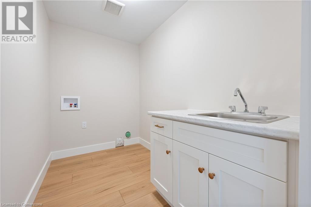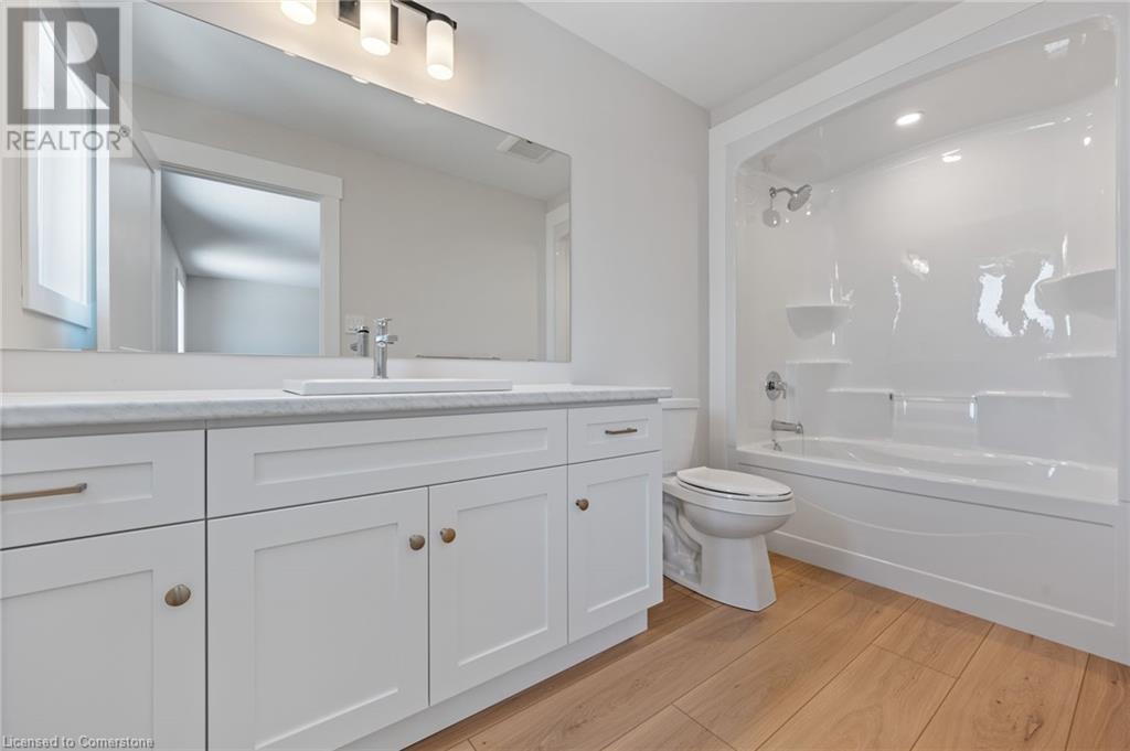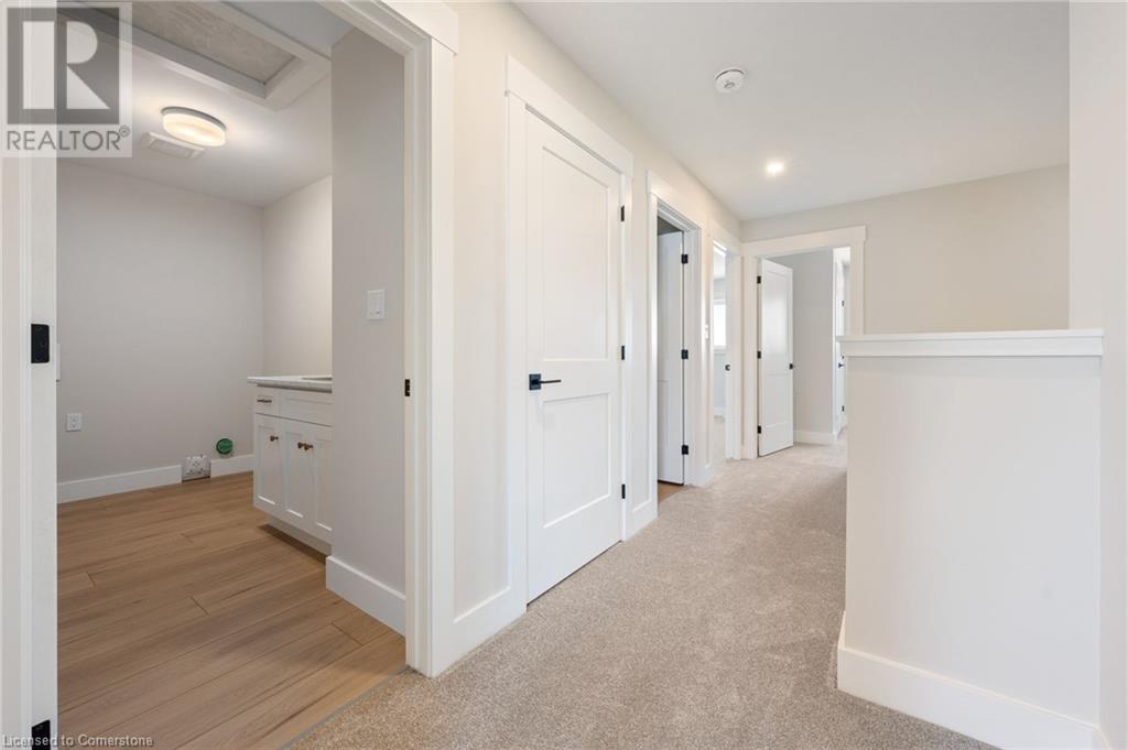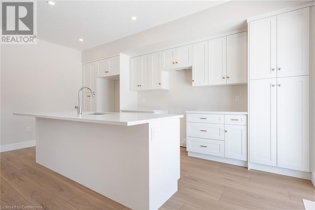 Get ready to fall in love with The AMBROSE-LEFT, a stunning new semi-detached 2-storey home with an attached double-car garage in the beautiful Villages of Waterford! Offering 1799 sqft of modern living space, this home is perfect for families seeking comfort & style. The home welcomes you with a covered front porch leading to a spacious foyer that opens to an open concept kitchen, dining nook & great room. The kitchen features custom cabinetry with pot & pan drawers, pull-out garbage & recycle bins, soft-close drawers & doors, quartz countertops, a breakfast bar island & a pantry. Luxury vinyl plank flooring is featured throughout the main floor, upper-level bathrooms & the upstairs laundry room, which comes complete with a sink. The second floor features 3 spacious bedrooms, including the large primary bedroom with a 4-piece ensuite (tub/shower combo) & a walk-in closet. With 9 ft ceilings on the main floor & 8 ft ceilings in the basement, the home is airy & open, providing plenty of space for your family to enjoy. The attached double-car garage comes with an 8 ft high door, & there’s room for 2 more cars on the driveway. The undeveloped basement features large windows, a bathroom rough-in, & offers plenty of potential for customization. The home includes front & rear landscaping, central air conditioning tankless hot water, & rough-ins for central vacuum. Thoughtful details such as contemporary lighting, pot lights, & a brick, stone, & vinyl exterior add to the home's charm & durability. Enjoy the peace of mind that comes with new construction & the New Home Warranty. Additional perks include fibre optic internet, a programmable thermostat, & no rental equipment. The home is conveniently located near schools, the library, shopping, & grocery stores, making it ideal for families and investors. Licensed Salesperson in the Province of Ontario has an interest in Vendor Corp. Interior photos are of a completed home with a similar floor plan. (id:55009)