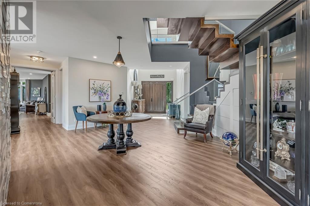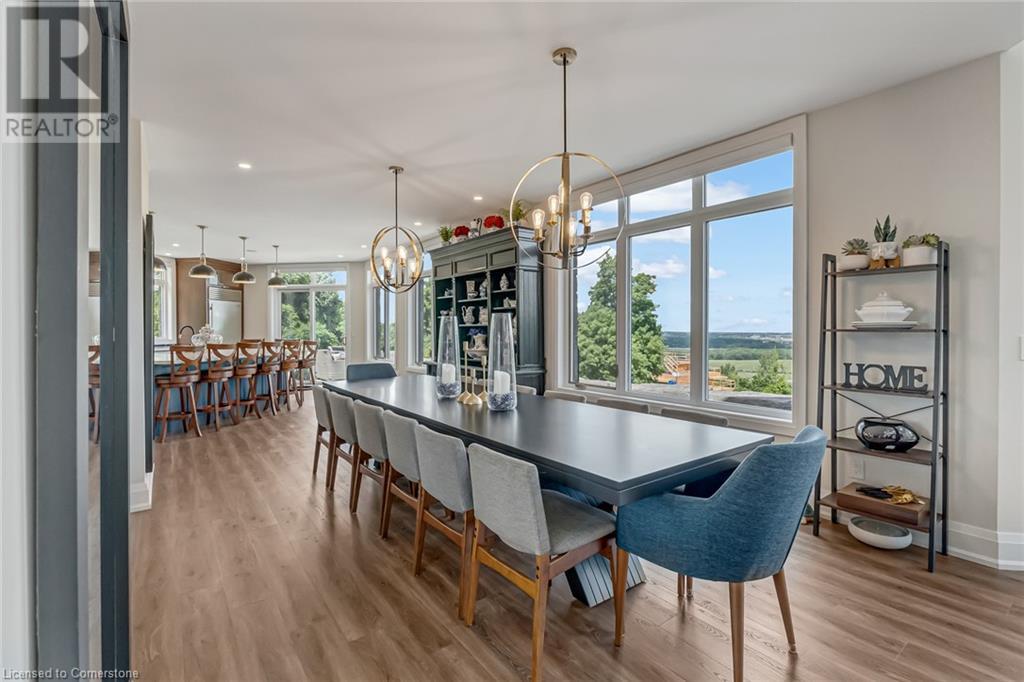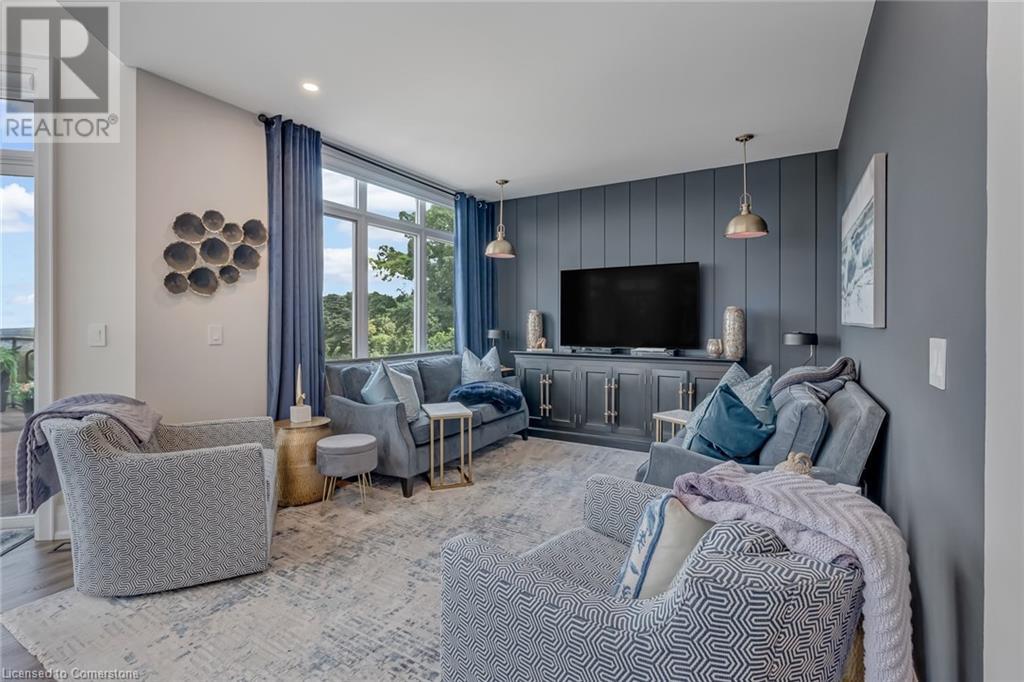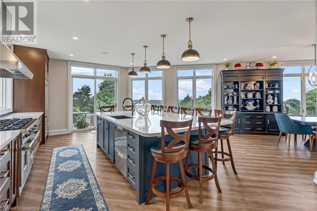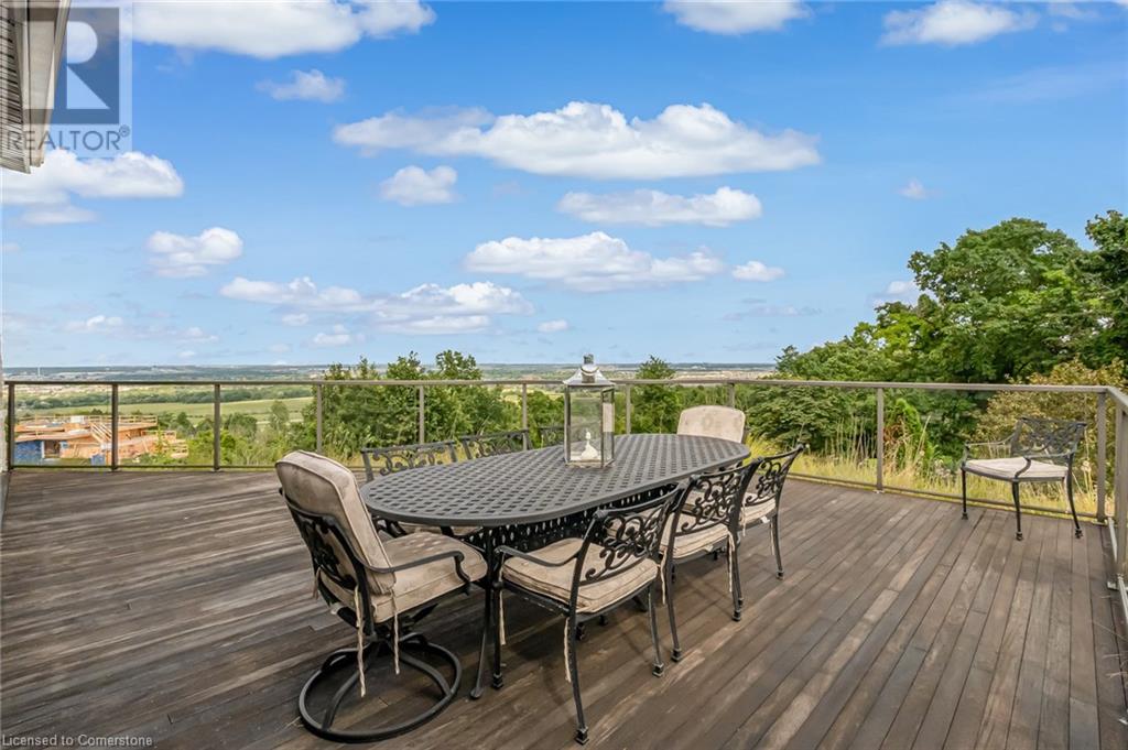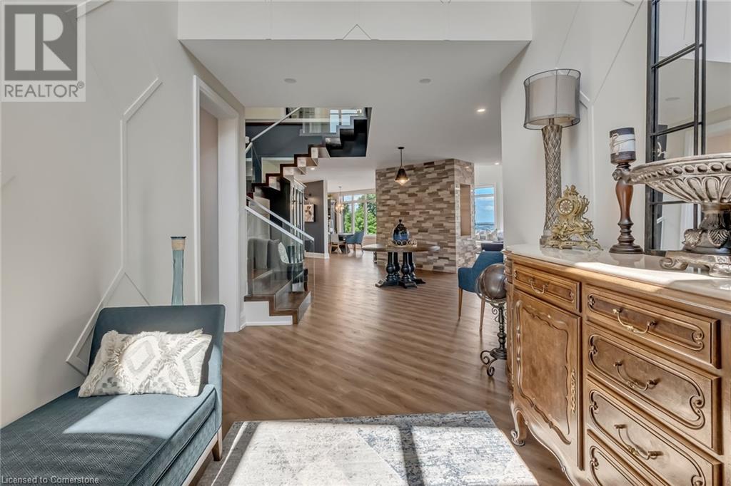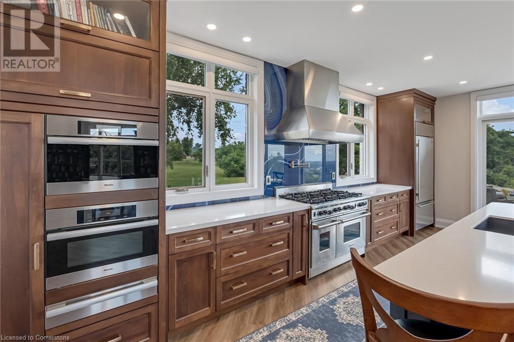 Set against the backdrop of a stunning escarpment estate, this magnificent terrace home embodies the essence of modern opulence across a lush 13.5-acre vista. Experience the pinnacle of architectural excellence in a dwelling that seamlessly integrates avant-garde design with the serene embrace of nature. Enter a realm of sophistication within this 6,085 square foot sanctuary, featuring exquisite finishes and an sprawling open-concept layout accentuated by soaring 24-foot ceilings and floor to ceiling glass walls that invite an abundance of natural light to highlight every luxurious detail. The gourmet kitchen is a culinary masterpiece, equipped with top-of-the-line appliances and a chic central island, ideal for hosting unforgettable gatherings that will captivate your guests. This residence offers five lavish bedrooms and seven indulgent bathrooms, including a tranquil primary suite on the main level, complete with a spa-inspired ensuite for unparalleled relaxation. A separate suite provides additional accommodation, perfect for a nanny, in-laws, or teenagers desiring their own retreat. The rambling grounds celebrate the beauty of nature, featuring a newly constructed concrete pool and picturesque pathways that meander through enchanting woodlands, complete with a charming soothing stream. With generous parking for many vehicles, this home serves as a private haven for those who appreciate both seclusion and grandeur. The exterior boasts exceptional insulation for energy efficiency, while ten walkouts lead to Malibu-style decks, adorned with a unusual green roof edge and elegant glass balusters, capturing breathtaking views of Southern Ontario. 2.5-acre field adjacent to the residence presents the perfect opportunity for an equestrian addition. This property transcends mere real estate; it is a declaration of an extraordinary lifestyle. Welcome to a home where each day unfolds like an exclusive retreat. (id:55009)