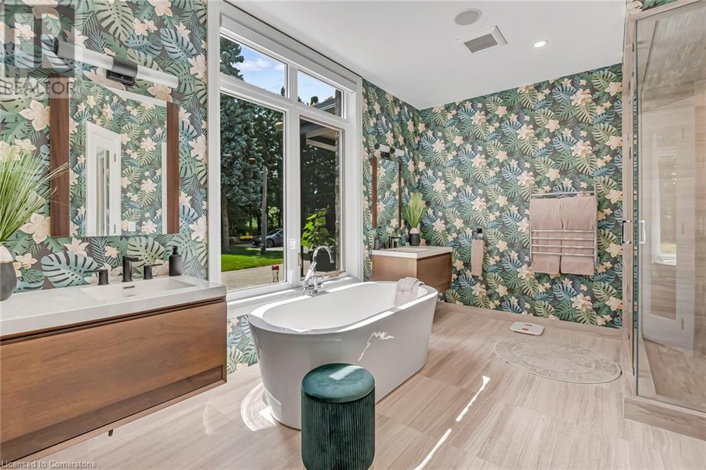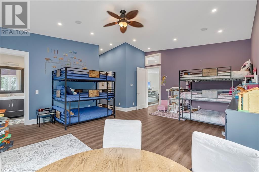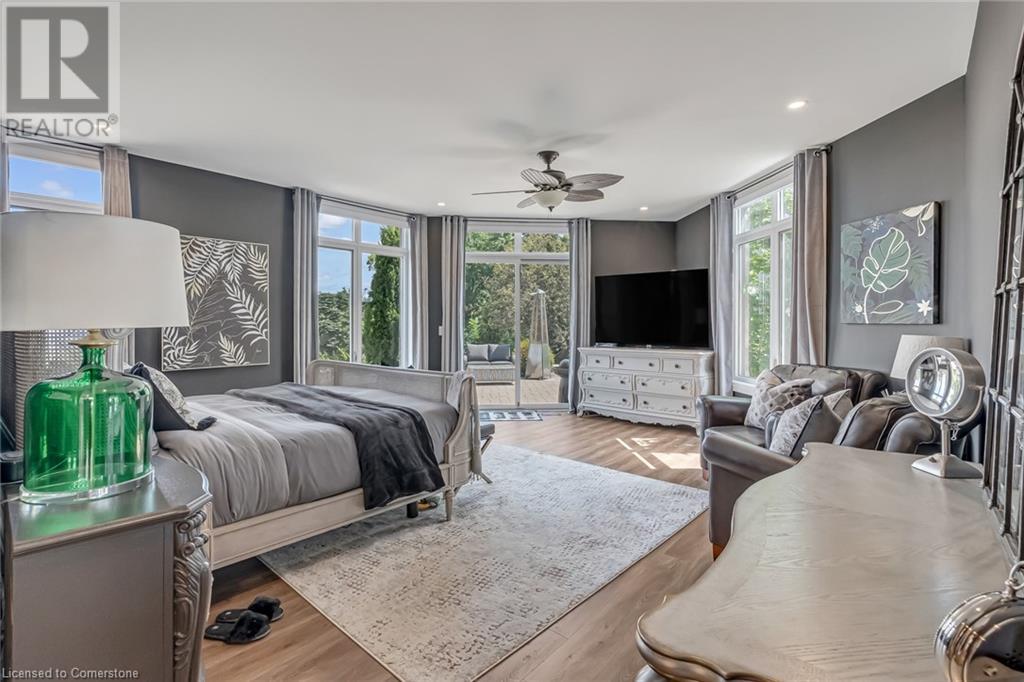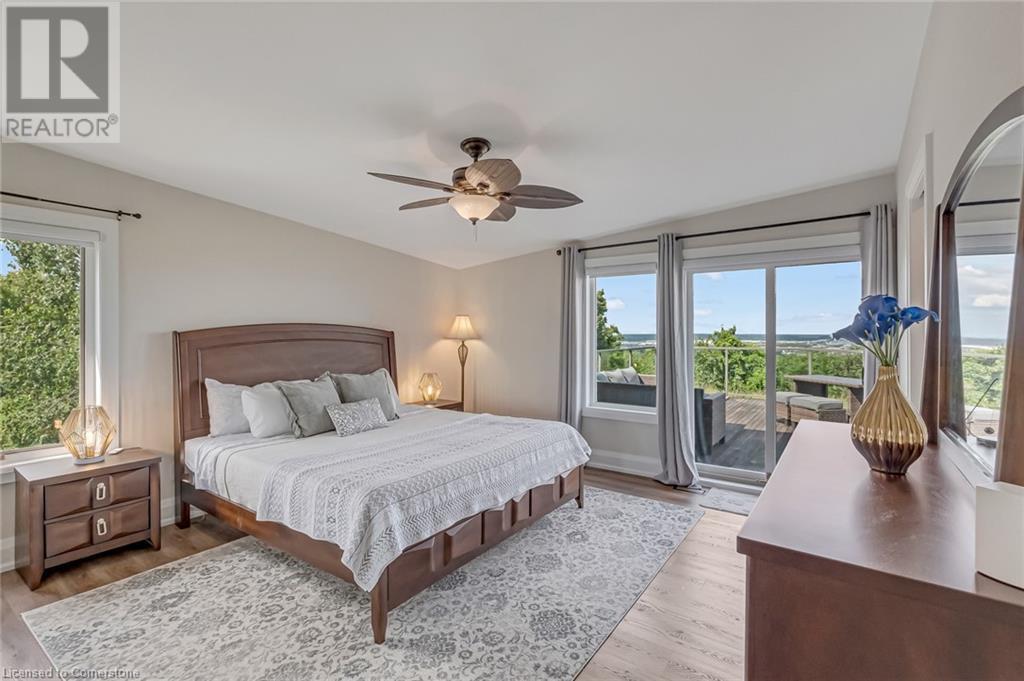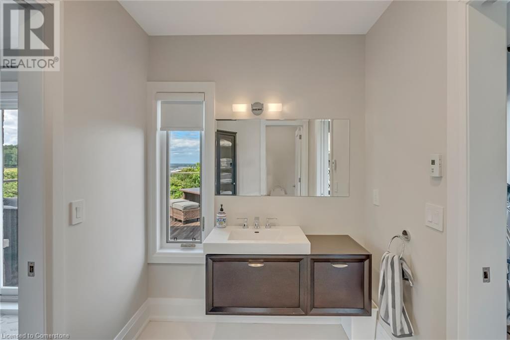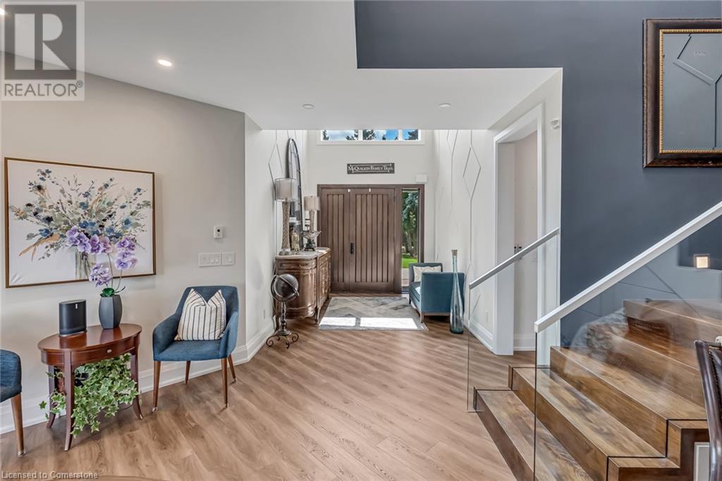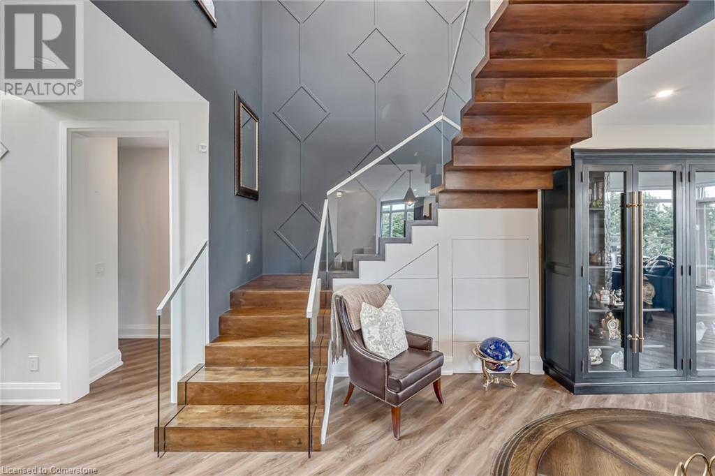 Set against the backdrop of a stunning escarpment estate, this magnificent terrace home embodies the essence of modern opulence across a lush 13.5-acre vista. Experience the pinnacle of architectural excellence in a dwelling that seamlessly integrates avant-garde design with the serene embrace of nature. Enter a realm of sophistication within this 6,085 square foot sanctuary, featuring exquisite finishes and an sprawling open-concept layout accentuated by soaring 24-foot ceilings and floor to ceiling glass walls that invite an abundance of natural light to highlight every luxurious detail. The gourmet kitchen is a culinary masterpiece, equipped with top-of-the-line appliances and a chic central island, ideal for hosting unforgettable gatherings that will captivate your guests. This residence offers five lavish bedrooms and seven indulgent bathrooms, including a tranquil primary suite on the main level, complete with a spa-inspired ensuite for unparalleled relaxation. A separate suite provides additional accommodation, perfect for a nanny, in-laws, or teenagers desiring their own retreat. The rambling grounds celebrate the beauty of nature, featuring a newly constructed concrete pool and picturesque pathways that meander through enchanting woodlands, complete with a charming soothing stream. With generous parking for many vehicles, this home serves as a private haven for those who appreciate both seclusion and grandeur. The exterior boasts exceptional insulation for energy efficiency, while ten walkouts lead to Malibu-style decks, adorned with a unusual green roof edge and elegant glass balusters, capturing breathtaking views of Southern Ontario. 2.5-acre field adjacent to the residence presents the perfect opportunity for an equestrian addition. This property transcends mere real estate; it is a declaration of an extraordinary lifestyle. Welcome to a home where each day unfolds like an exclusive retreat. (id:55009)