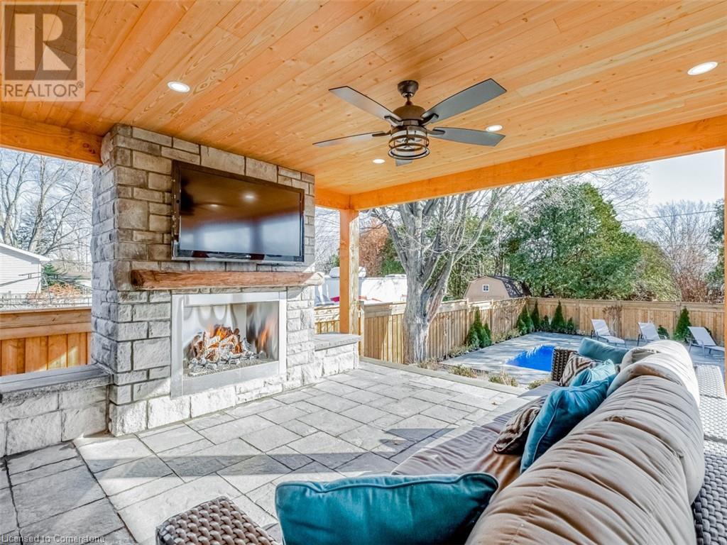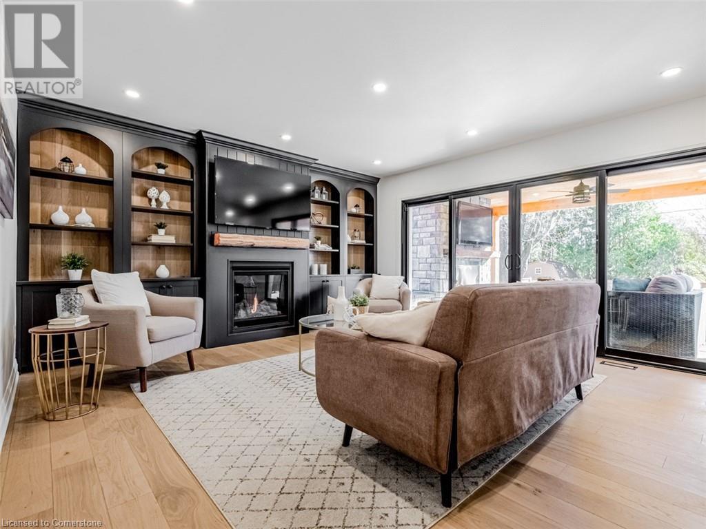 Luxurious Living in Prestigious ELIZABETH GARDENS. ONE of a kind 2 Storey Farmhouse offers 3+1 Brms 2618 sq/ft of Exquisite Living Space. Engineered hdwd floors + LED lighting throughout open riser staircase, heated flooring in bathrooms, gourmet kitchen open concept quarts breakfast island and counters GE Cafe appls. Home office with built-ins, upper lvl Boast 2 spacious brms all w/ensuites spacious laundry. Finished lower lvl w/recroom, gym, 4th bedrm and Storage Rom & 4 pce Bath. Main lvl covered sunroom w/FP Stone floor, overlooks inground pool oasis w/sep Htub exterior landscape lighting, private fully fenced yard A Must View. (id:55009)