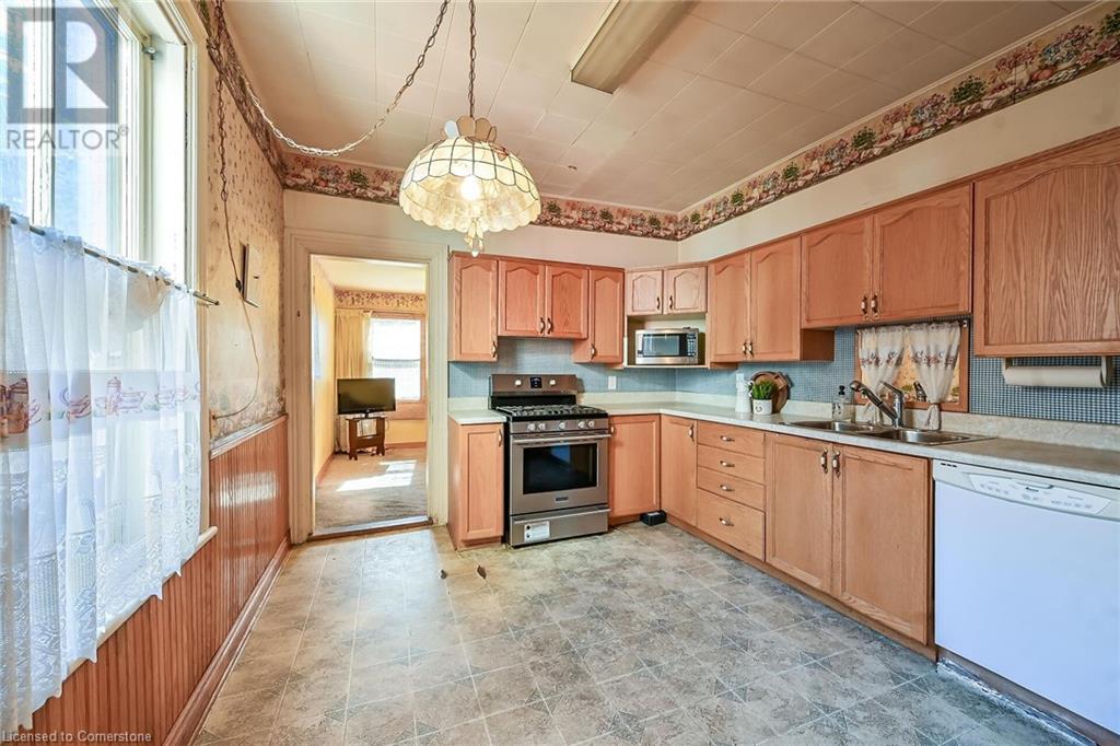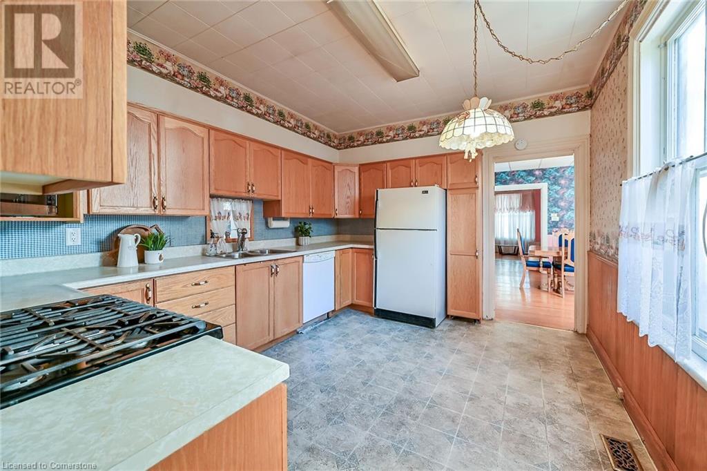 Attention investors, first time buyers and renovators! Three bedroom 1494 sq ft home with tons of old world charm. Featuring spacious foyer with separate living room with gas fireplace, large generous dining room, eat in kitchen and family room off the back of the home overlooking the large fully fenced backyard. Hardwood stairs lead to second floor, with 3 large bedrooms, large bathroom. Unfinished basement with walk up. Needs tlc and some repairs. Long rear yard, with Parking off a well lit spacious alley. (id:55009)