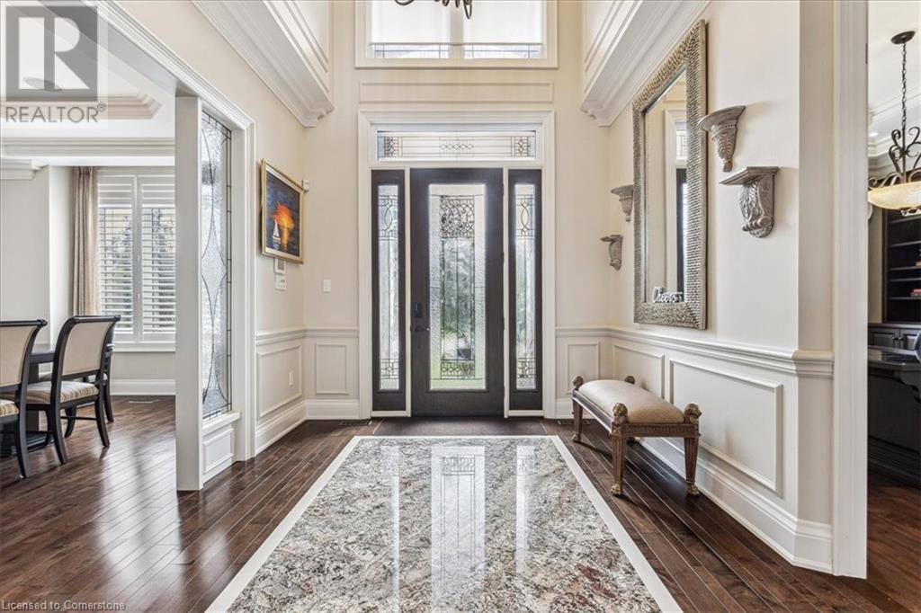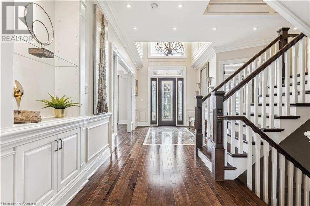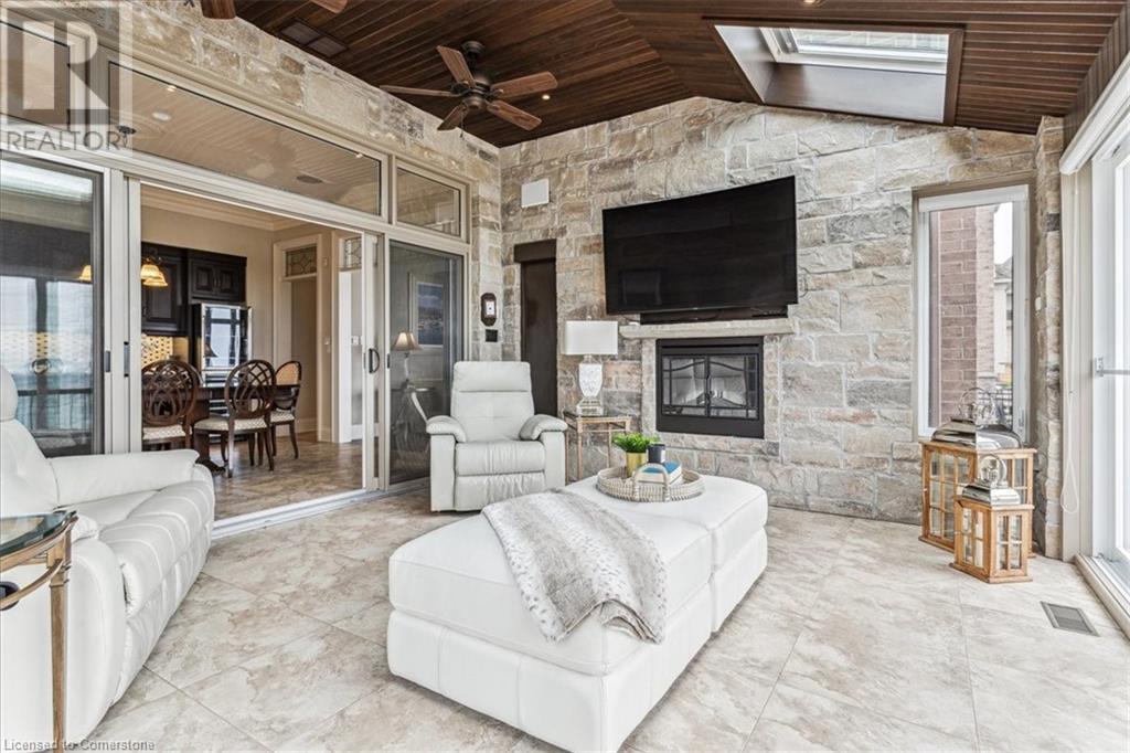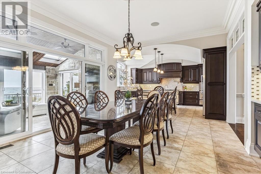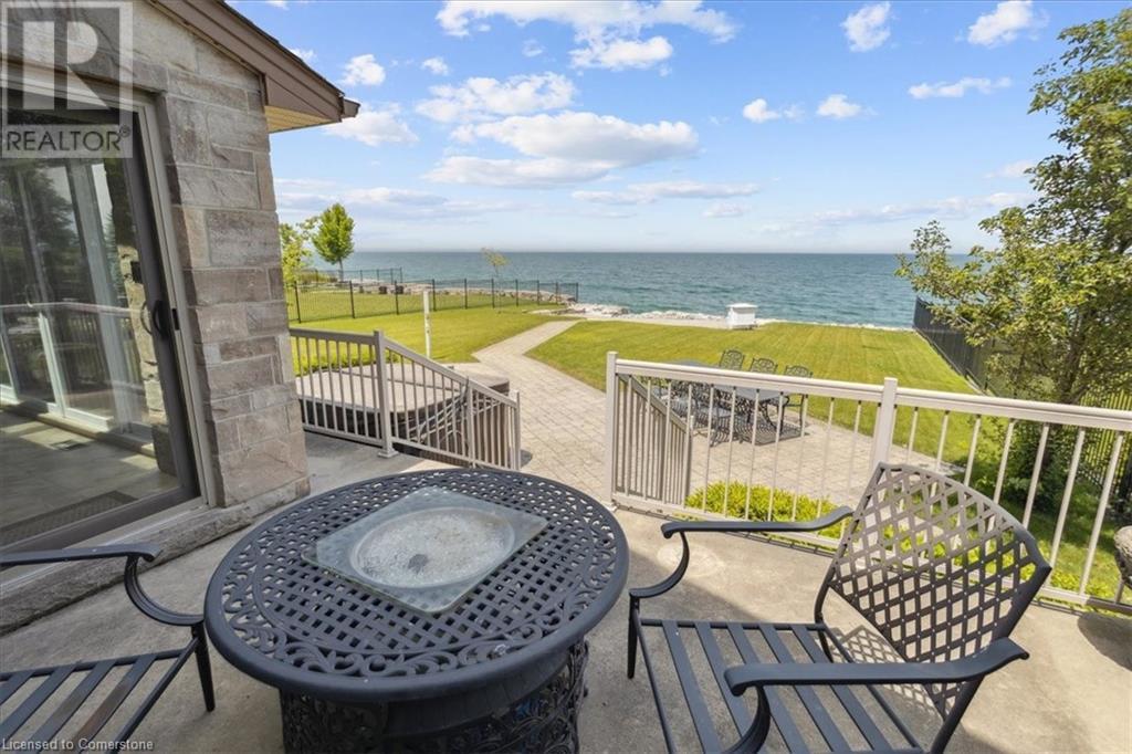 This is an Exceptional Custom built Lakefront home on the shores of Lake Ontario with a recently fortified Sea wall and stone steps to the water’s edge. Rarely does a home in this location, and of this caliber come to market. This home was built by the Home Builder for himself. Over 4700 sq ft above grade plus a partially finished basement. Truly a home to be viewed live to appreciate all the notable features that draw you in. High ceilings on all three levels with multi-layered tray and coffered ceilings, ease of access home elevator with four stops including the garage. The dream garage has three full spaces plus two car/boat power lifts for incredible utility and vehicle storage. Designer finishes throughout including granite, hardwood and porcelain floors, next level custom trim, ceiling and millwork unique only to this home, 3 gas fireplaces, 4 generous sized bedrooms all with ensuites, primary bedroom with walk-out to private balcony, main floor office with built-in cabinets, glass filled sunroom for maximum natural light and incredible views of the lake beyond, custom interior glass and transom windows, entertain in the dining room fit for a dozen or more guests, enjoy the indoor swim spa all year round, and the security of a whole home generator. This home just may have it all! (id:55009)