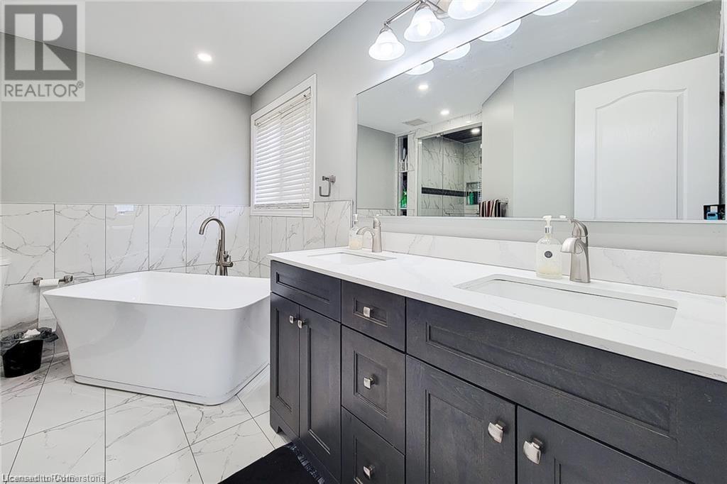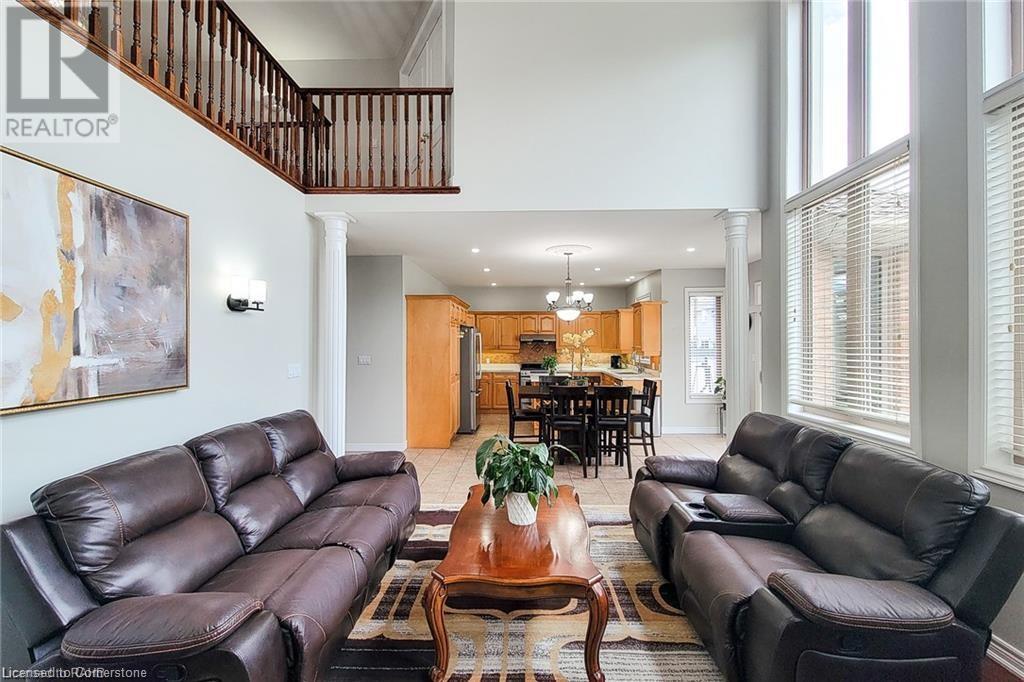 Nestled in the sought-after Meadowlands of Ancaster - this stunning 6 bedroom (4+2), 3.5-bathroom home offers 4000 sq ft of open-concept living, perfect for growing or multi-generational families and entertainers. Inside, a beautifully updated interior with high-end finishes (Fresh paint, new counters, countless upgrades) highlight the luxury in this gorgeous home. The main level boasts a large truly open concept 2-storey living area that soars over 18 feet high! Massive windows fill the space with natural light, creating a warm and inviting atmosphere. An updated modern kitchen with stainless steel appliances, and a dining area ideal for gatherings. The professionally finished basement, with a separate side entrance, adds valuable living space or can be it's own unit. It includes two additional large rooms, large living space, wet bar and kitchen, offering endless possibilities including a potential income opportunity. Situated on a larger corner lot, provides ample outdoor space for relaxation and recreation. The beautifully landscaped yard and stamped concrete driveway and patio are perfect for outdoor activities and entertaining. Located in the prestigious Meadowlands community, this home is close to top-rated schools, parks, shopping, and dining. Enjoy the convenience of easy access to major highways and public transportation, making commuting a breeze. Don't miss the opportunity to own this exceptional home in one of Ancaster's most desirable neighbourhoods. Schedule your private viewing today! (id:55009)