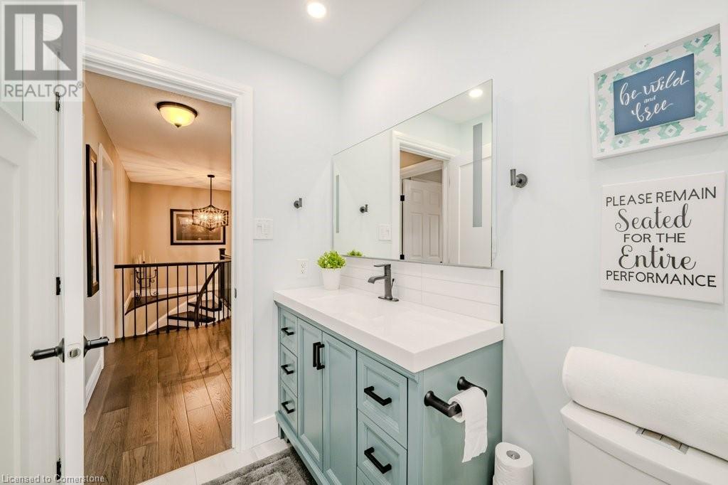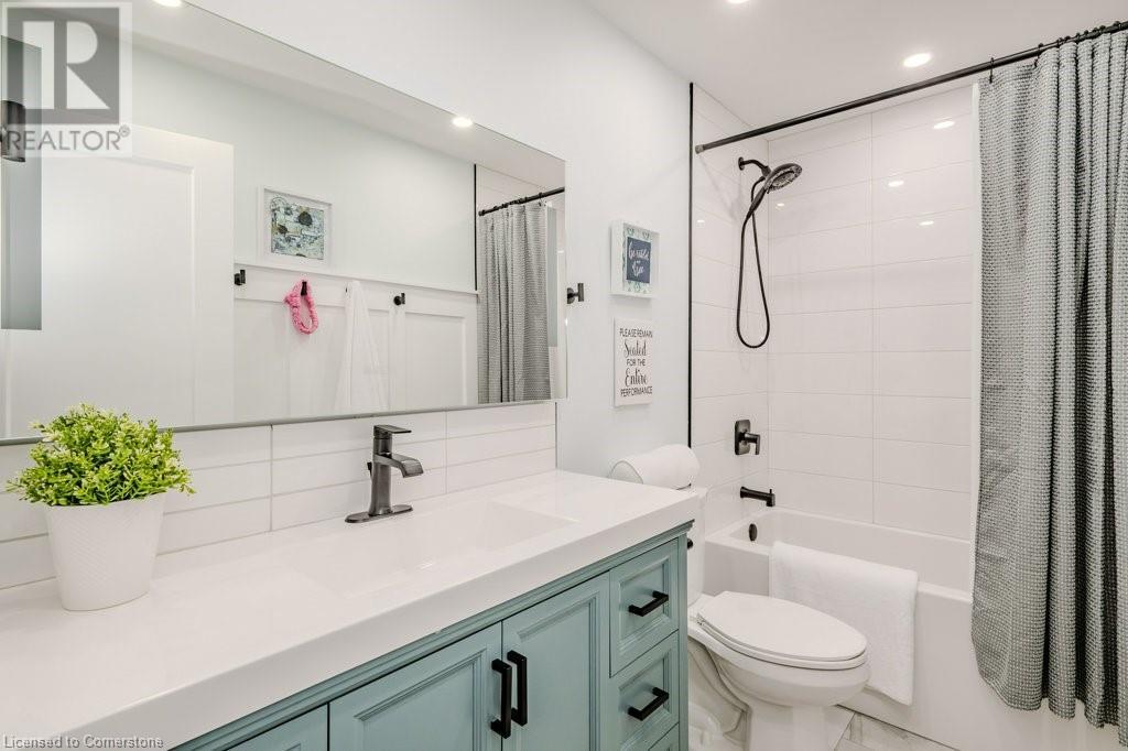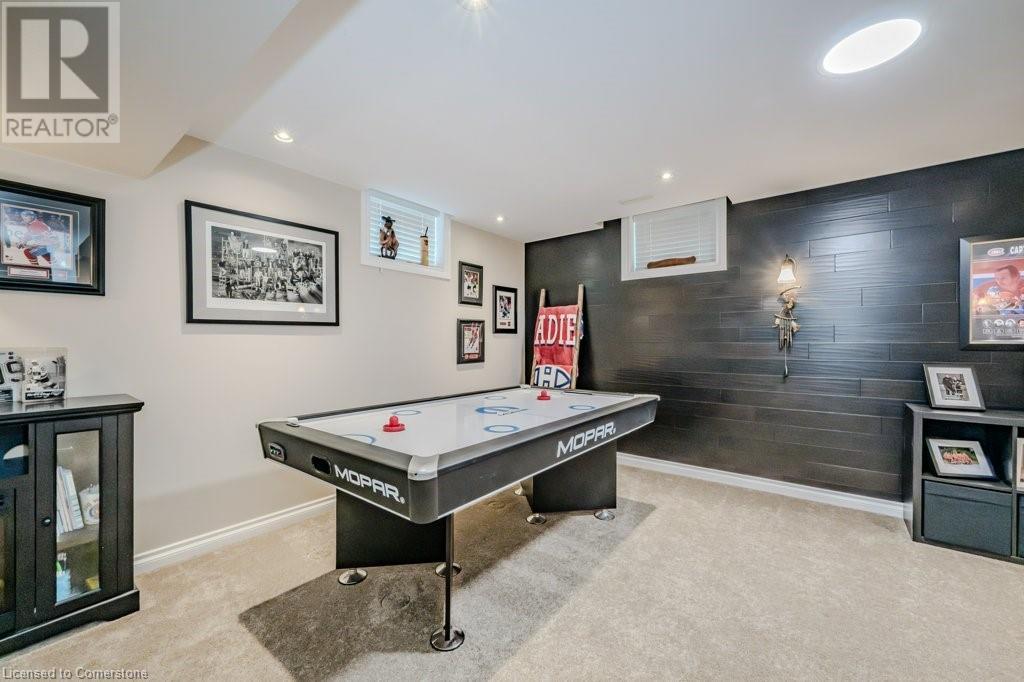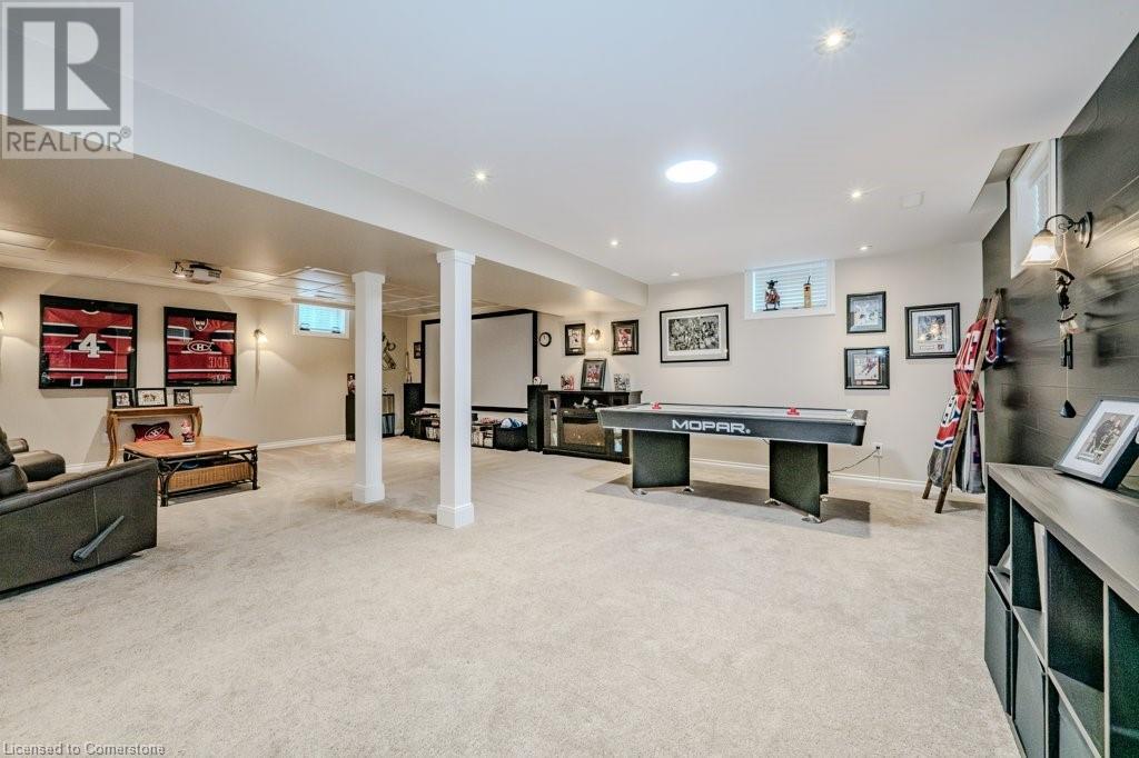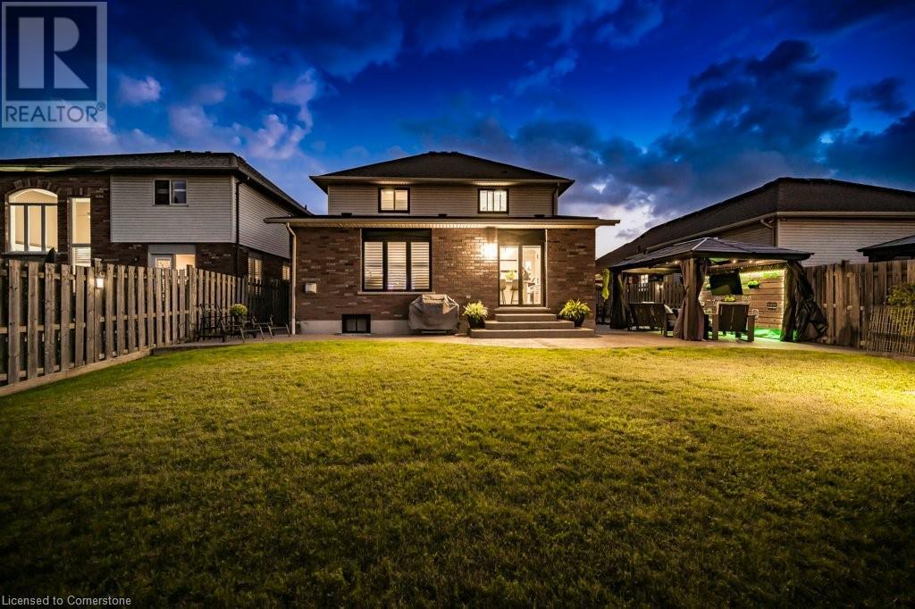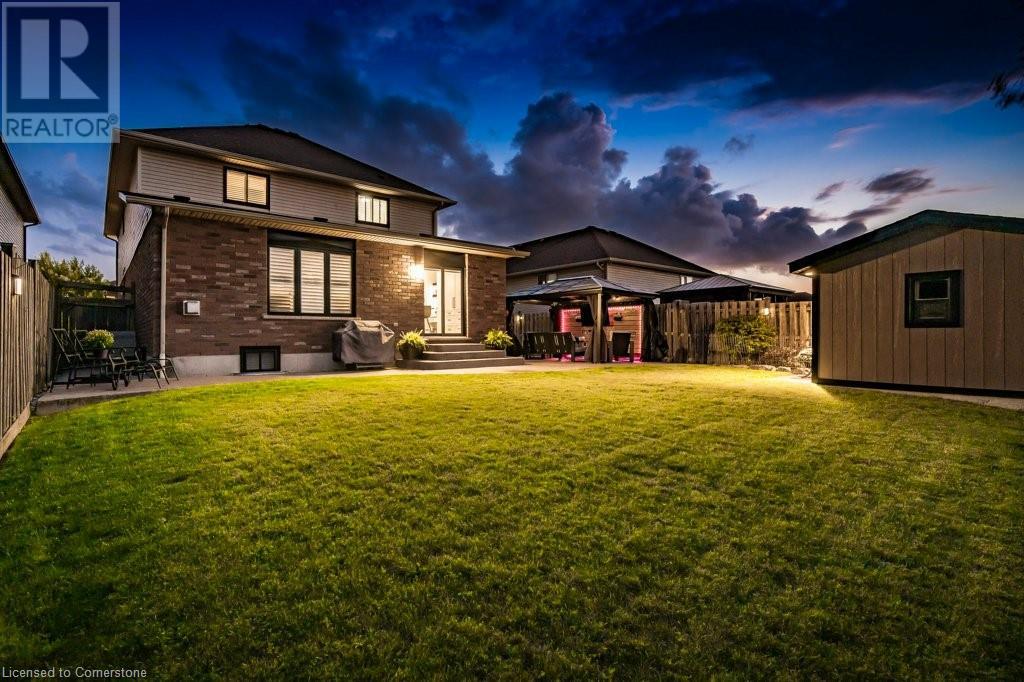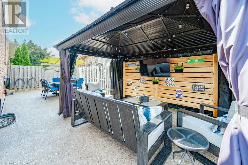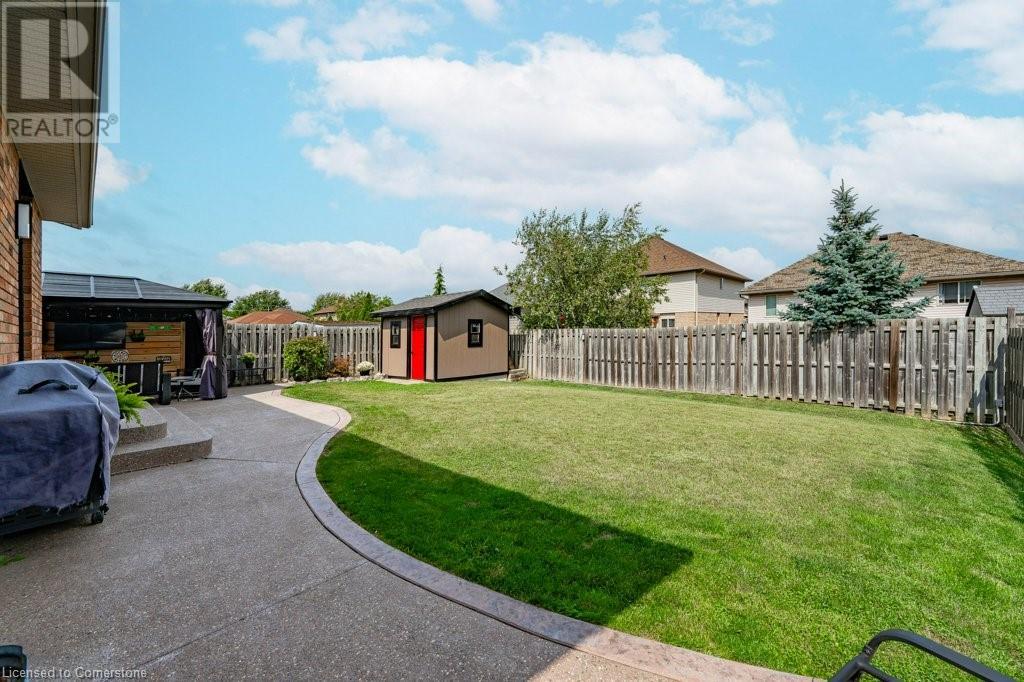 Welcome to 56 Napa Lane an exquisitely renovated 4 bedroom family home. All the major boxes have been ticked here: Roof with 50 year shingles, all windows(2020), Front & Patio doors(2021), Updated HVAC, Main floor reno(2021): featuring vaulted ceilings, gas fireplace, potlighting, accent wall with recessed lighting, hardwood flooring, chefs kitchen with farmhouse sink, quartz kitchen island with breakfast bar, SS appliances, restaurant style fridge/freezer & wood soft close cabinets with undercab. Upstairs both baths have been updated(2022) with tiled showers, high end fixtures & quartz vanities with bluetooth mirrors. Large primary with WIC & ensuite. Finished basement made for entertaining: Projector w/ screen, dry bar, air hockey table and 3 pc bath. Curb appeal is A+++ with stamped concrete, tasteful landscaping, private covered porch, soffit lighting, large fenced yard with garden shed, outdoor gazebo living centre with tv mount & decorative concrete surround. Great location close to Winona Park, schools, highway access, Costco, restaurants, grocery, amenities & 10 minutes to Fifty Point beach. (id:55009)