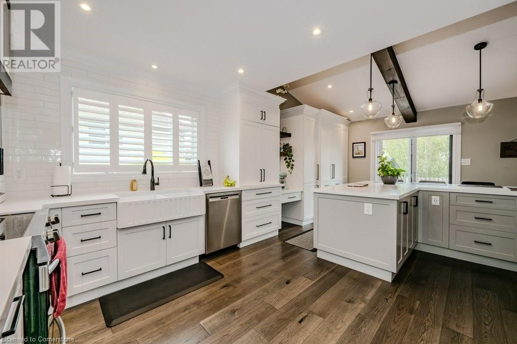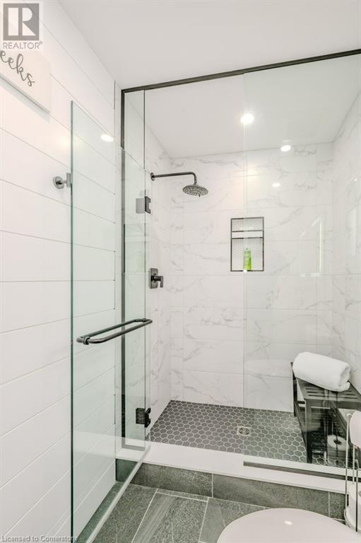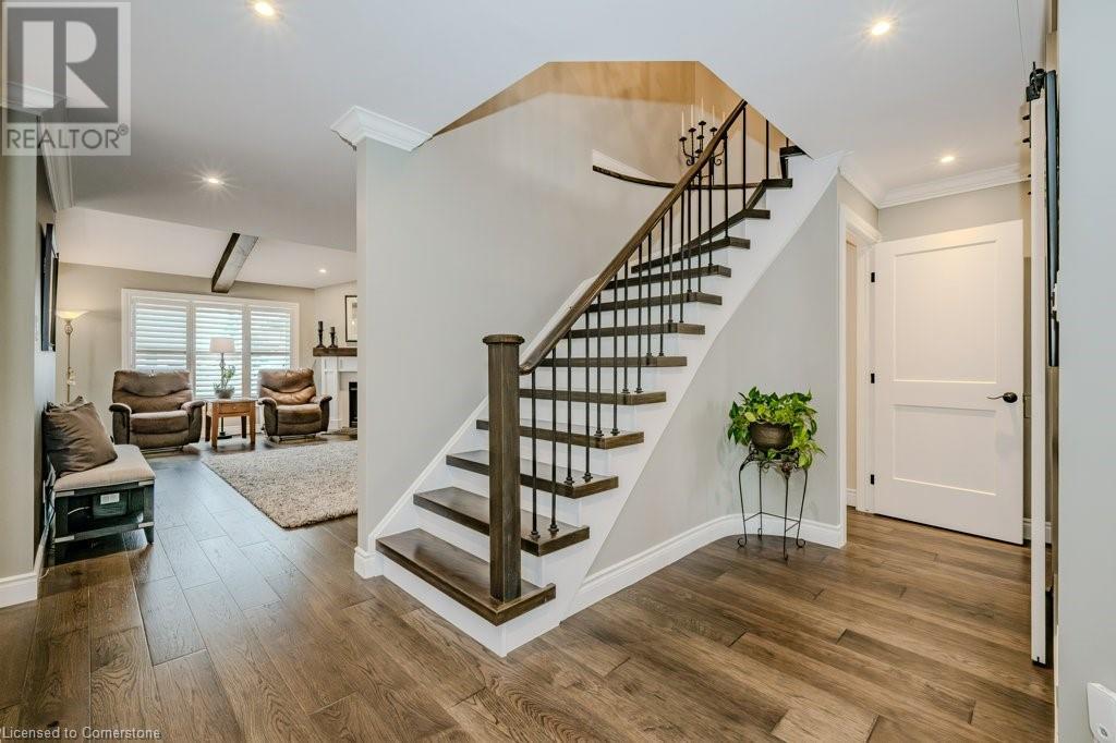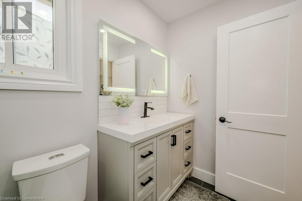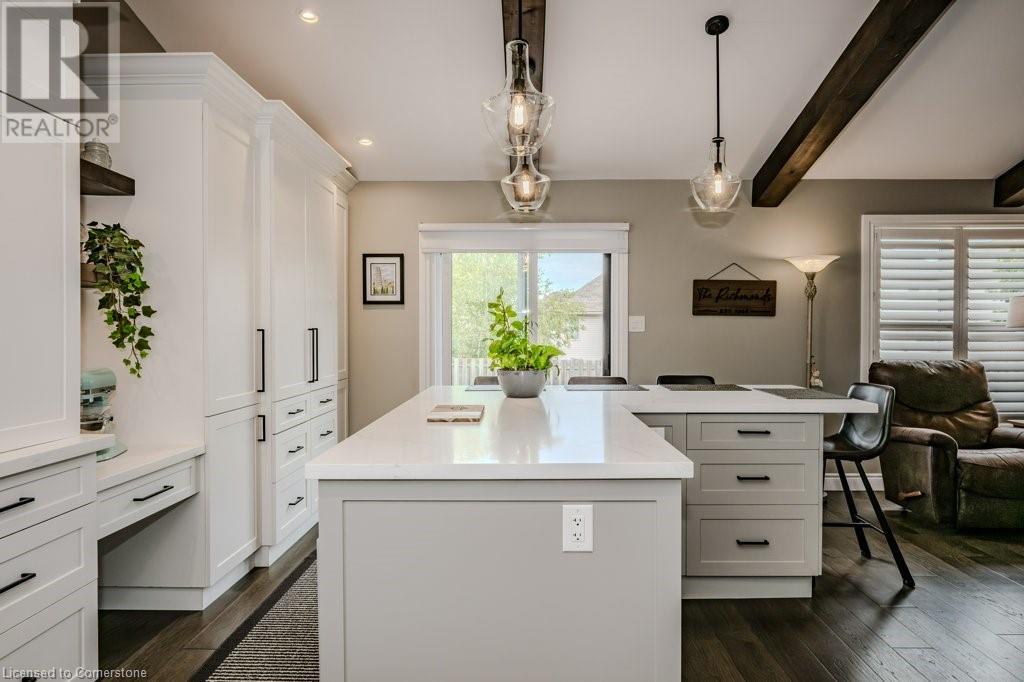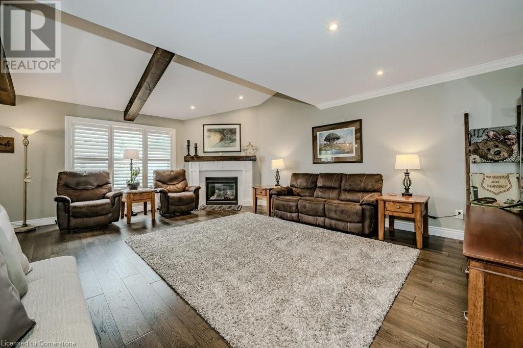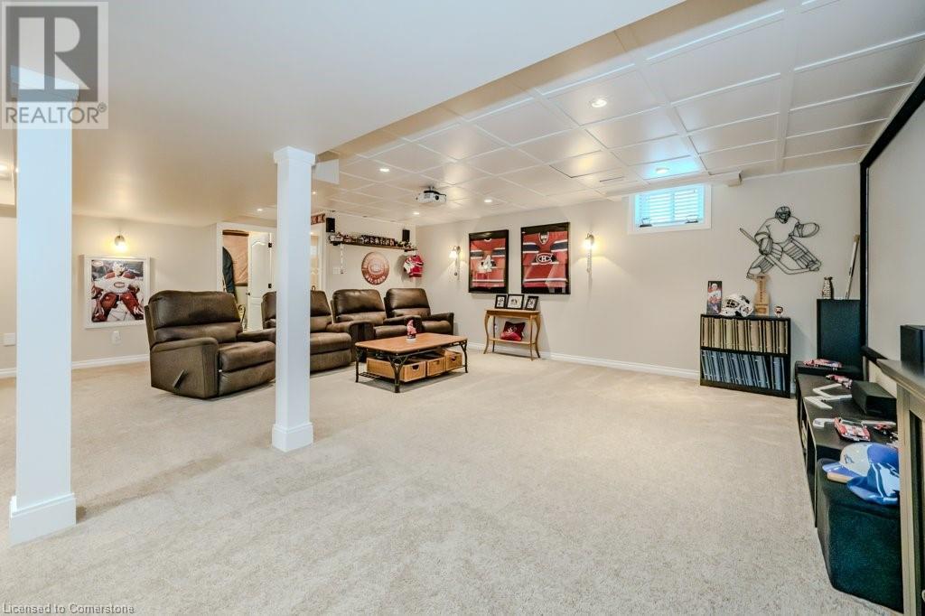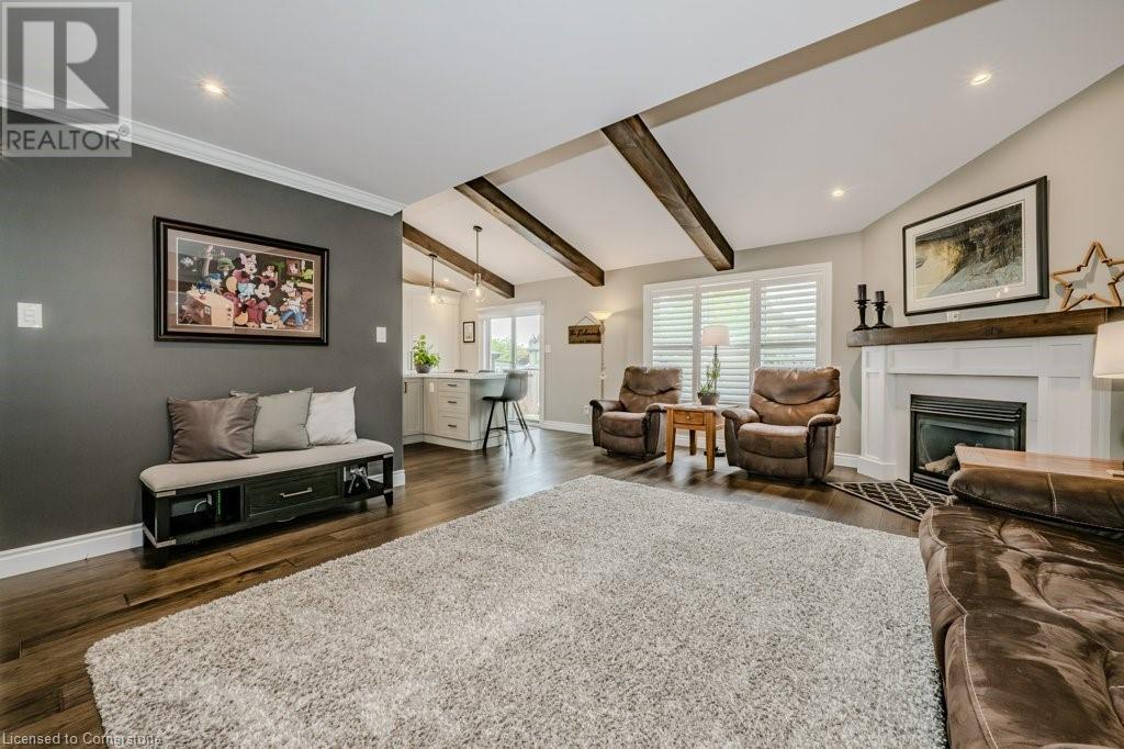 Welcome to 56 Napa Lane an exquisitely renovated 4 bedroom family home. All the major boxes have been ticked here: Roof with 50 year shingles, all windows(2020), Front & Patio doors(2021), Updated HVAC, Main floor reno(2021): featuring vaulted ceilings, gas fireplace, potlighting, accent wall with recessed lighting, hardwood flooring, chefs kitchen with farmhouse sink, quartz kitchen island with breakfast bar, SS appliances, restaurant style fridge/freezer & wood soft close cabinets with undercab. Upstairs both baths have been updated(2022) with tiled showers, high end fixtures & quartz vanities with bluetooth mirrors. Large primary with WIC & ensuite. Finished basement made for entertaining: Projector w/ screen, dry bar, air hockey table and 3 pc bath. Curb appeal is A+++ with stamped concrete, tasteful landscaping, private covered porch, soffit lighting, large fenced yard with garden shed, outdoor gazebo living centre with tv mount & decorative concrete surround. Great location close to Winona Park, schools, highway access, Costco, restaurants, grocery, amenities & 10 minutes to Fifty Point beach. (id:55009)