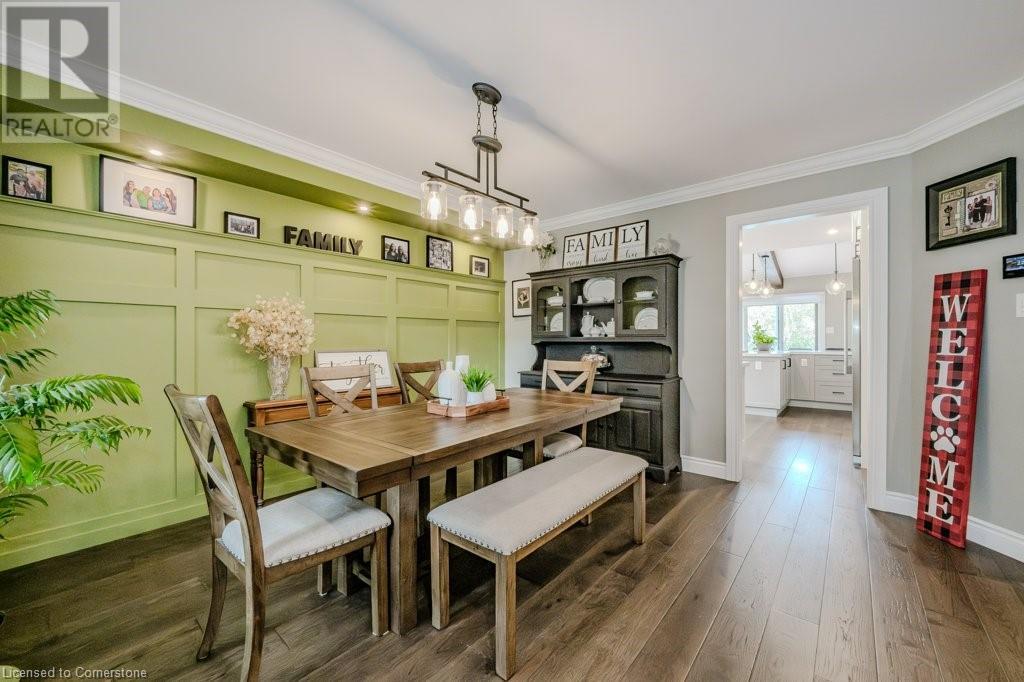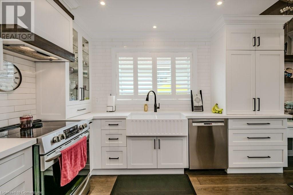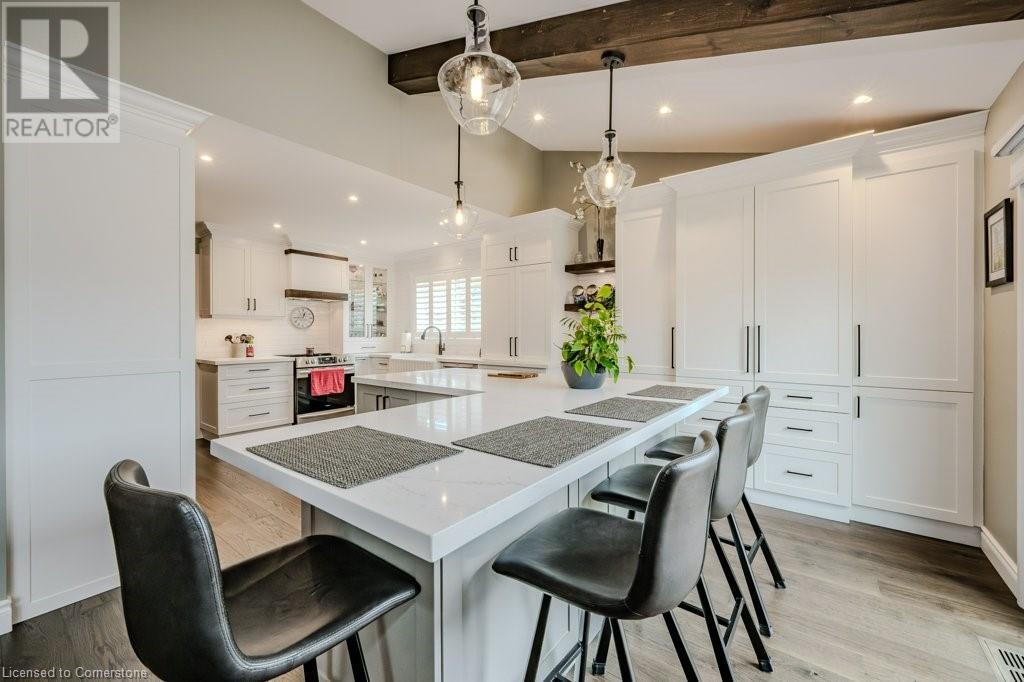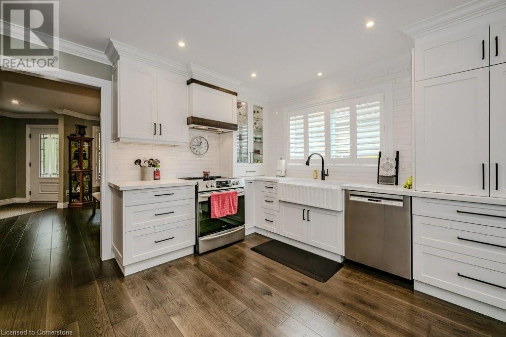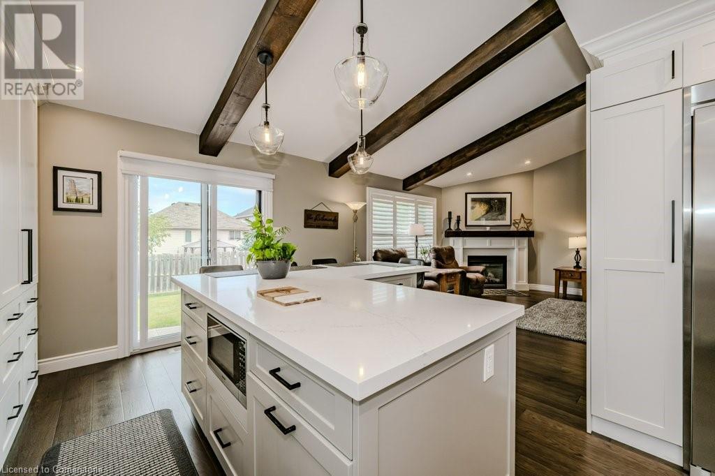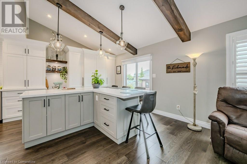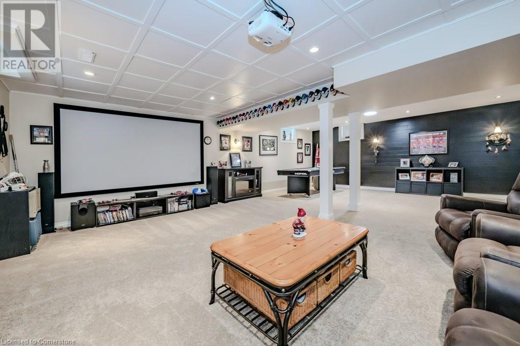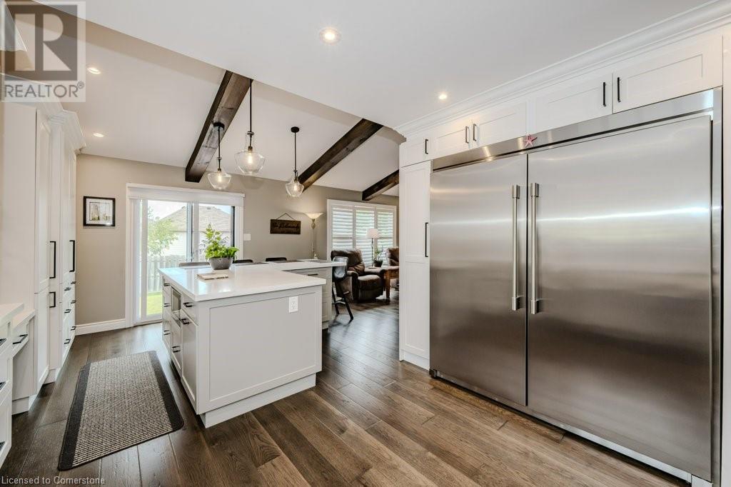 Welcome to 56 Napa Lane an exquisitely renovated 4 bedroom family home. All the major boxes have been ticked here: Roof with 50 year shingles, all windows(2020), Front & Patio doors(2021), Updated HVAC, Main floor reno(2021): featuring vaulted ceilings, gas fireplace, potlighting, accent wall with recessed lighting, hardwood flooring, chefs kitchen with farmhouse sink, quartz kitchen island with breakfast bar, SS appliances, restaurant style fridge/freezer & wood soft close cabinets with undercab. Upstairs both baths have been updated(2022) with tiled showers, high end fixtures & quartz vanities with bluetooth mirrors. Large primary with WIC & ensuite. Finished basement made for entertaining: Projector w/ screen, dry bar, air hockey table and 3 pc bath. Curb appeal is A+++ with stamped concrete, tasteful landscaping, private covered porch, soffit lighting, large fenced yard with garden shed, outdoor gazebo living centre with tv mount & decorative concrete surround. Great location close to Winona Park, schools, highway access, Costco, restaurants, grocery, amenities & 10 minutes to Fifty Point beach. (id:55009)