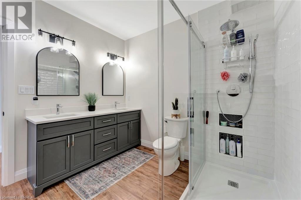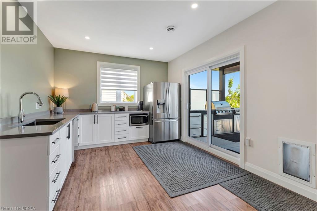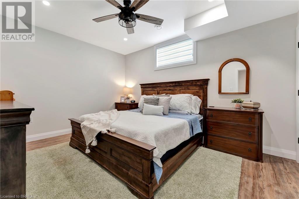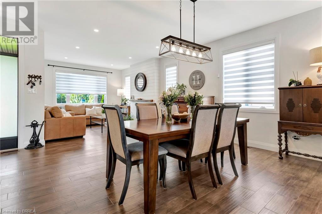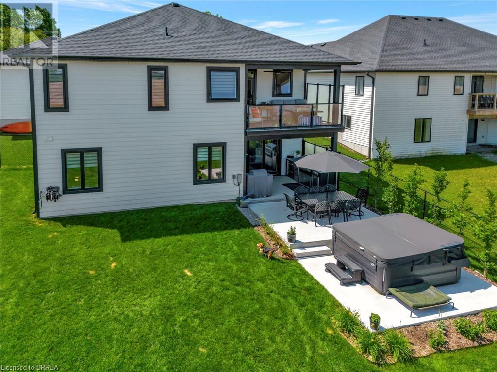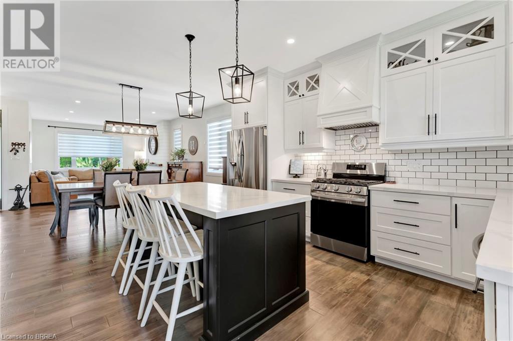 This exceptional home is a true gem, designed to impress with its stunning features and attention to detail. With over 3,000 sq ft of thoughtfully crafted living space, it offers both style and comfort. Step into the open-concept main floor, where elegant design meets modern convenience. You'll find a custom kitchen complete with extended height cabinets, upper glass door fronts, sleek quartz countertops, a classic subway tile backsplash, and a two-toned island—perfect for culinary adventures or casual dining. The spacious pantry adds a practical touch. The main floor flows seamlessly, enhanced by upgraded light fixtures and refined window treatments, leading to a bright and airy living space with walkout access to an elevated covered deck. Perfect for summer entertaining, it invites you to enjoy the best of indoor-outdoor living. The primary suite is a private oasis, featuring a luxurious 4-piece ensuite with a double vanity and a contemporary black hexagon-tiled shower and floors, providing a spa-like retreat at home. This level also offers two additional bedrooms, including a flexible space perfect for a home office, along with a stylish 4-piece bathroom and a convenient main-floor laundry room. Downstairs, the finished lower level is all about comfort and relaxation, boasting a large recreation room with a cozy fireplace, two additional bedrooms, and another chic 4-piece bathroom complete with a glass shower and double vanity. Step outside to the covered lower patio and enjoy the serene views of the surrounding fields or gather around the firepit for memorable evenings under the stars. (id:55009)