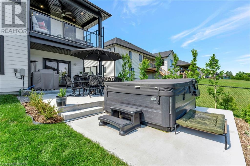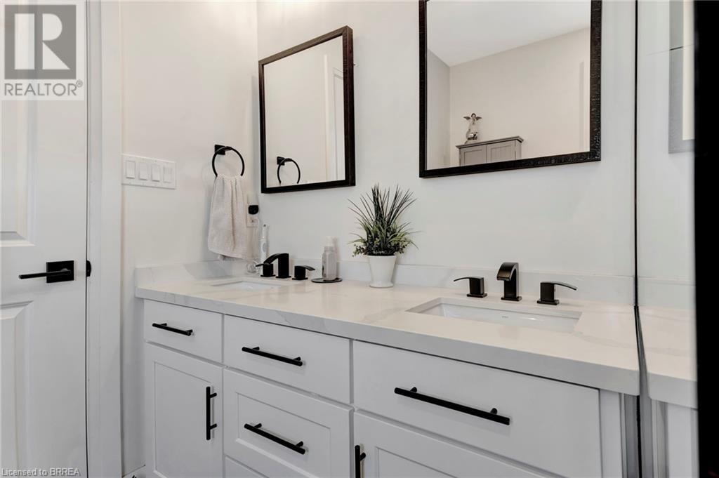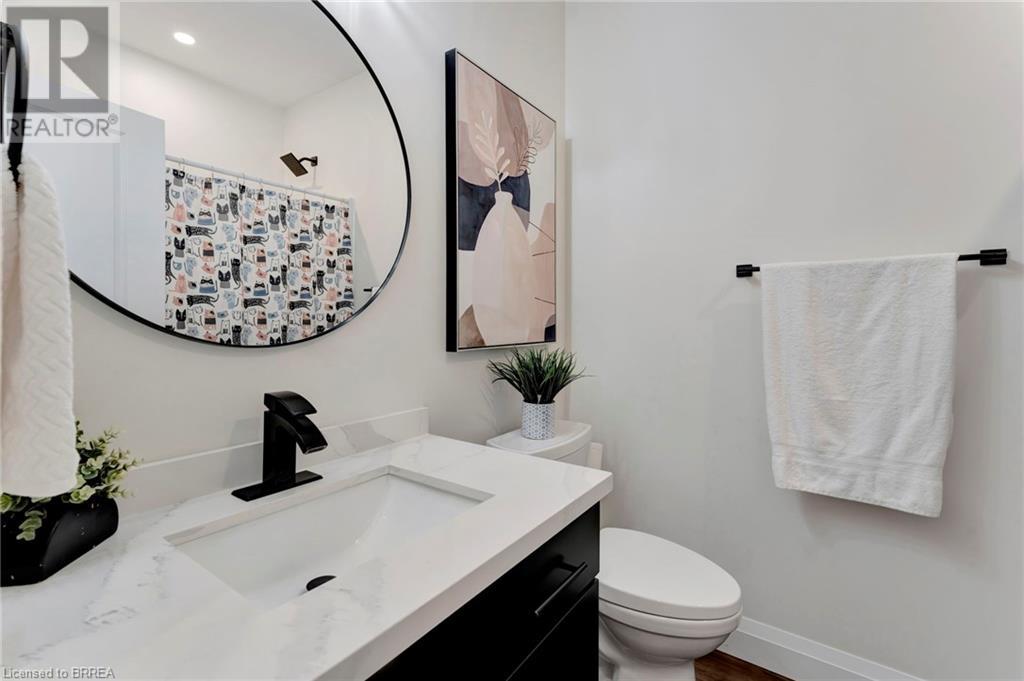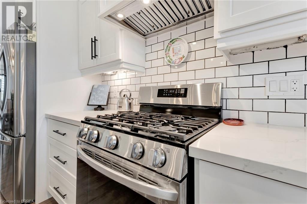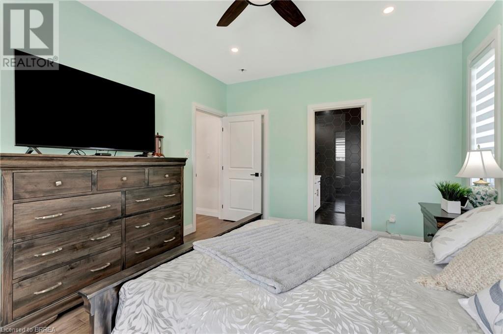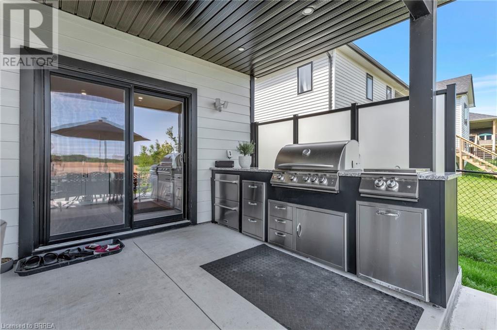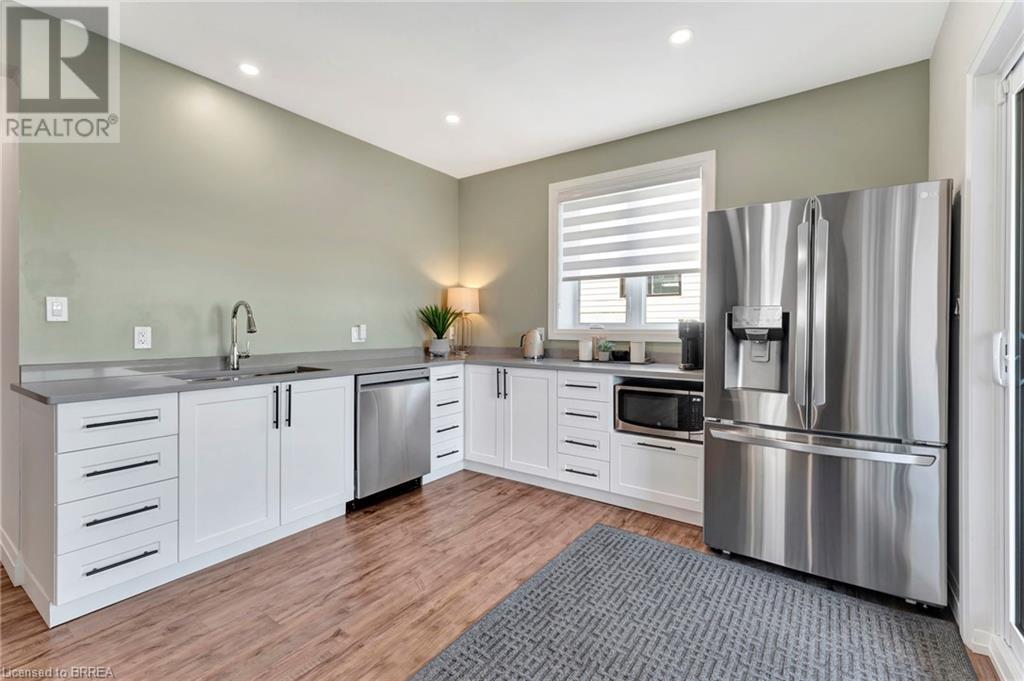 This exceptional home is a true gem, designed to impress with its stunning features and attention to detail. With over 3,000 sq ft of thoughtfully crafted living space, it offers both style and comfort. Step into the open-concept main floor, where elegant design meets modern convenience. You'll find a custom kitchen complete with extended height cabinets, upper glass door fronts, sleek quartz countertops, a classic subway tile backsplash, and a two-toned island—perfect for culinary adventures or casual dining. The spacious pantry adds a practical touch. The main floor flows seamlessly, enhanced by upgraded light fixtures and refined window treatments, leading to a bright and airy living space with walkout access to an elevated covered deck. Perfect for summer entertaining, it invites you to enjoy the best of indoor-outdoor living. The primary suite is a private oasis, featuring a luxurious 4-piece ensuite with a double vanity and a contemporary black hexagon-tiled shower and floors, providing a spa-like retreat at home. This level also offers two additional bedrooms, including a flexible space perfect for a home office, along with a stylish 4-piece bathroom and a convenient main-floor laundry room. Downstairs, the finished lower level is all about comfort and relaxation, boasting a large recreation room with a cozy fireplace, two additional bedrooms, and another chic 4-piece bathroom complete with a glass shower and double vanity. Step outside to the covered lower patio and enjoy the serene views of the surrounding fields or gather around the firepit for memorable evenings under the stars. (id:55009)