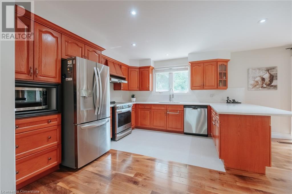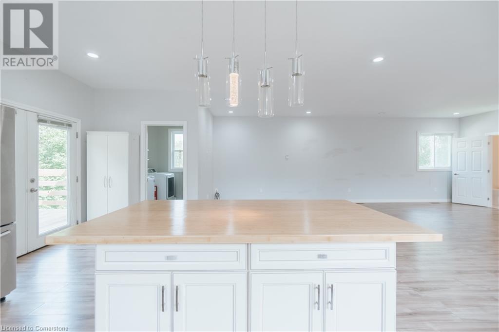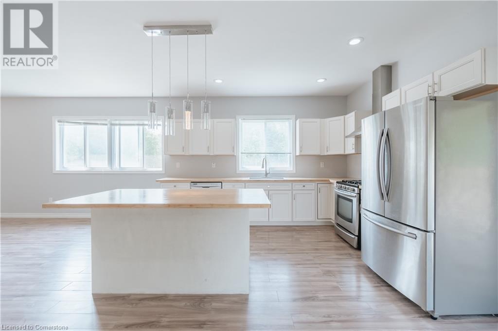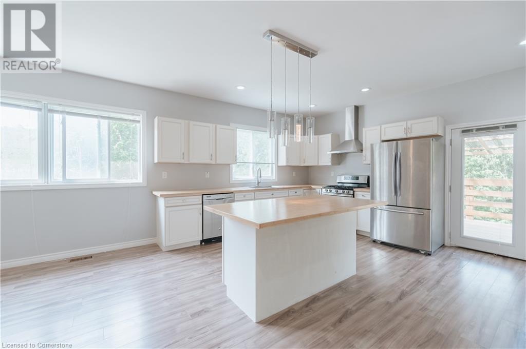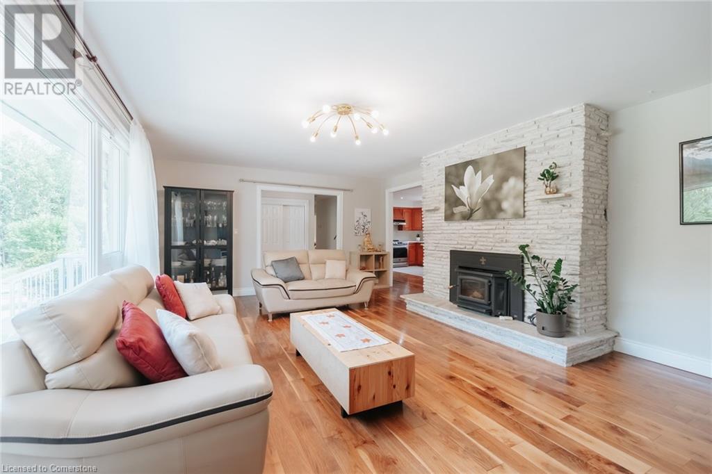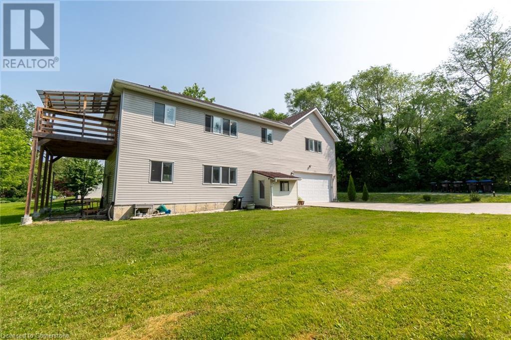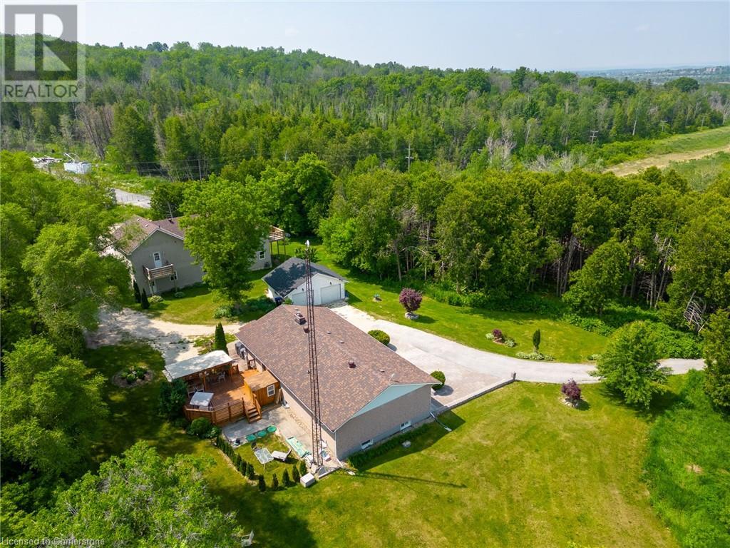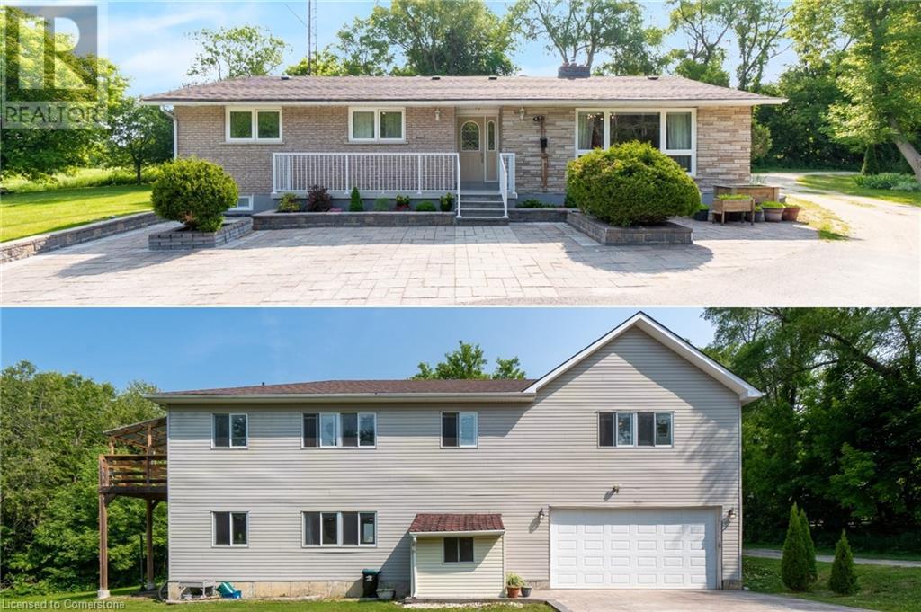 Multi-family living! This unique property features has dual living areas, each with its own entrance, kitchen, bedrooms, and bathrooms. Ideal for multi-generational families or offering rental potential, Sprawling approximate 3.7-Acres.The bungalow: The primary living area includes an open-concept design with a spacious living room, newly renovated kitchen and bathrooms, and a dining area that opens to a private deck, perfect for entertaining. This property features a 3-bedroom brick bungalow with Brazilian walnut plank floors, two wood fireplaces, an induction stove, two kitchens, spa-like main bathroom, a new second 3-piece bathroom, and two sets of laundry, finished 2 bed basement apartment a walkout back deck Separate Live/Workshop: The versatile workshop includes 2 bedrooms, 2 bathrooms, a laundry room, a fully-equipped kitchen, and a large open space. This additional area is perfect for extended family, guests, or as an income-generating rental unit. The detached garage provides convenient parking and additional storage space in addition to the oversized driveway. The property also includes a spacious driveway and 4 car garage with plenty of parking (id:55009)