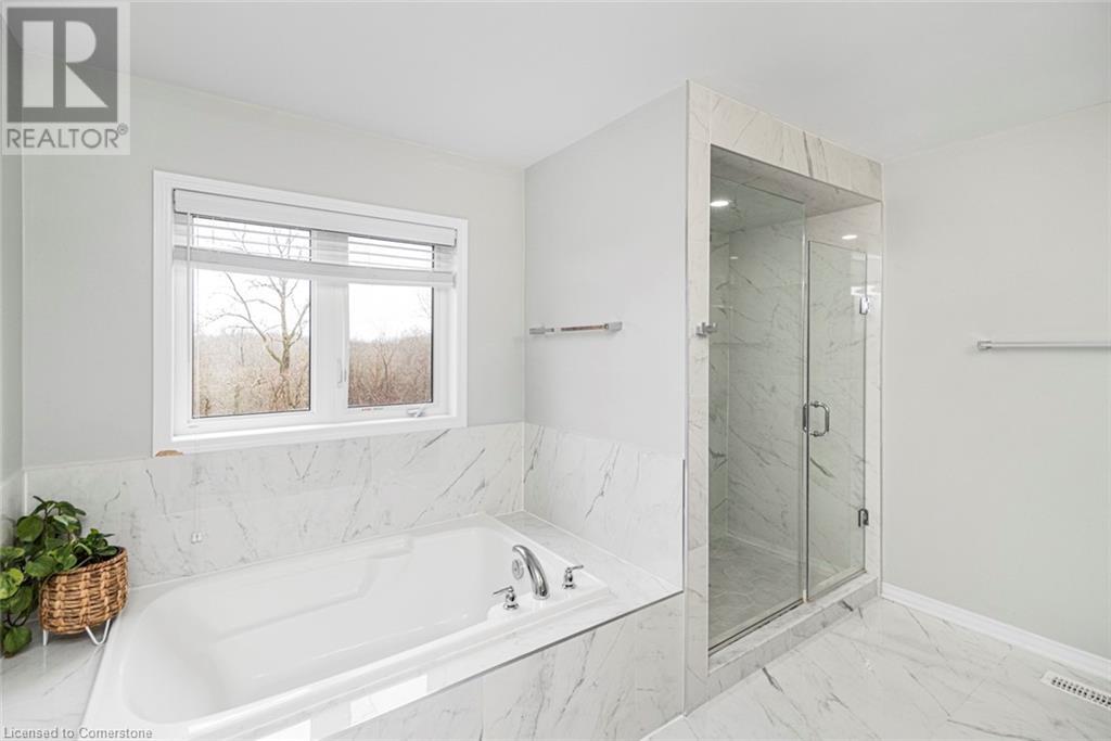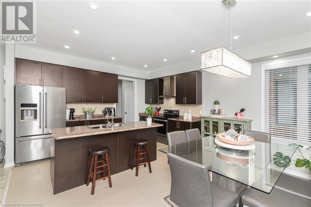 Nestled on a quiet street in Caledonia, 57 Larry Crescent offers the perfect blend of tranquility and modern living. With NO REAR NEIGHBORS and backing onto a treed greenspace, this 4-bedroom home provides a serene escape while remaining conveniently close to all amenities. The main level welcomes you with a sense of spaciousness and warmth. A separate dining rooms, hardwood staircase adds a touch of classic charm. The heart of the home is the expansive family room, offering scenic views of the greenspace and a cozy atmosphere for gatherings. The large kitchen boasting ample cabinetry, storage, and counter space. A central island provides additional workspace, and a casual dining area with backyard access, The upper level is designed for comfort and privacy. The oversized primary suite features a generous walk-in closet and an ensuite bathroom. Three other well-appointed bedrooms share a main bath, ensuring everyone has their own space. A convenient laundry room completes this level. Sized at 42' wide and 98' deep, this property provides ample room for outdoor enjoyment. Enjoy easy access to Riverwalk trails, the Grand River, and other natural attractions. (id:55009)