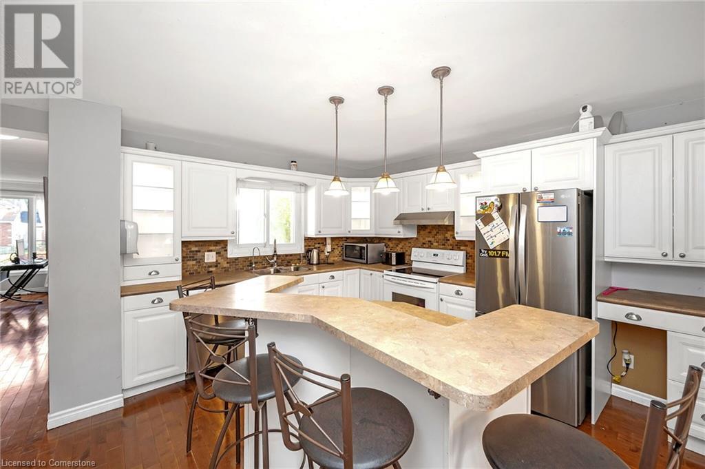 Charming 2 Storey home featuring 4 Br + 1.5 bath, with approx. 1545 sq ft. Welcoming and bright main floor features a family room with vaulted ceiling, skylight and fireplace; a large kitchen with island and lots of cupboards, reverse osmosis water, and a large pantry; dining room with double doors leading to a lovely and private backyard; hardwood floors; finished basement with spacious rec room, 4th bedroom and laundry area. Water filtration in the entire home. Great location close to the Pen Centre, Brock University, and major hways. A fully insulated 10 by 10 shed in the backyard. Fridge 2022, Stove with dehydrator 2019, Dishwasher 2020, Washer and Dryer 2017, Roof 2016. Seller does not warrant the functioning of the fireplace. (id:55009)