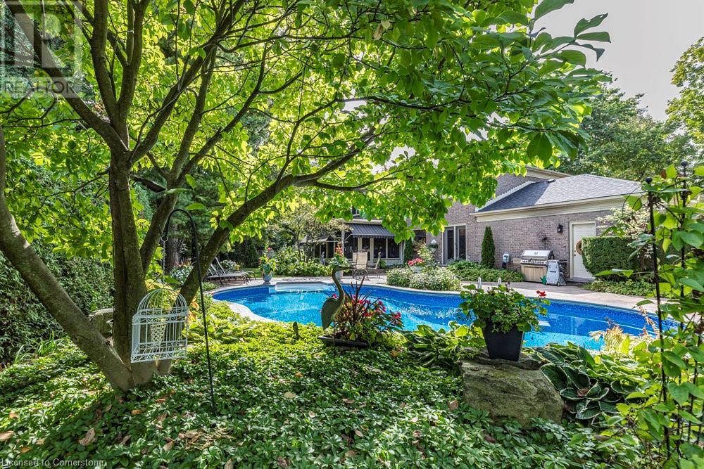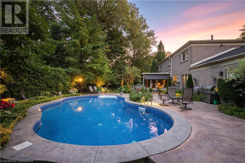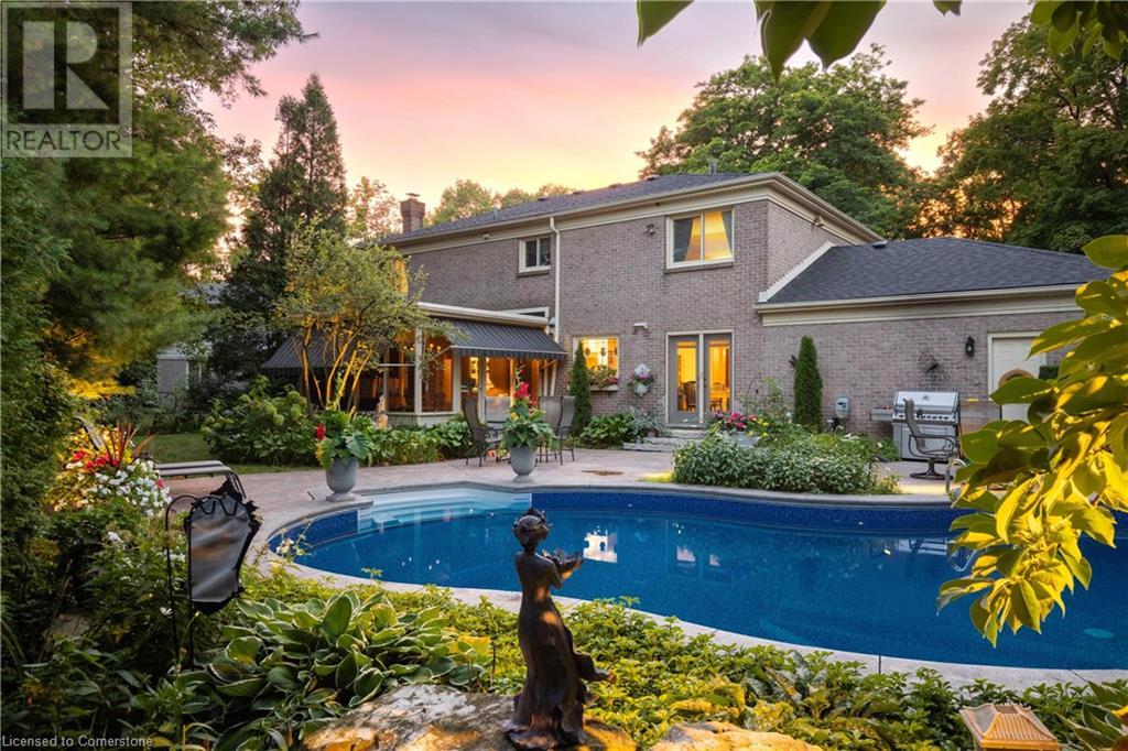 Presenting a rare offering in the heart of Hamilton’s West Mountain. 58 Braemar Place is an exceptional Georgian-style home perfectly situated at the end of a mature, picturesque court. Set on a sprawling pie-shaped lot, this elegant residence boasts a classic exterior with its beautifully landscaped yard featuring lush gardens and a sparkling saltwater pool—ideal for summer relaxation and entertaining. The charming screened-in porch invites you to enjoy your morning coffee or host memorable gatherings with family and friends. Inside, you'll find timeless details and spacious living areas that seamlessly blend comfort and sophistication. This home offers 4 bedrooms and 4 bathrooms, formal living and dining rooms, and a main floor office/den. The expansive lower level serves as an ideal retreat for kids (or the young at heart), complete with a large laundry room and a convenient separate entrance. Nestled in one of Hamiton's premier neighborhoods, this property strikes the perfect balance between natural beauty and urban convenience. Enjoy scenic escarpment trails, easy access to downtown, and proximity to top-rated schools, including Hillfield Strathallan College, Mohawk College, and St. Joseph’s Healthcare. This all-brick Georgian masterpiece has never been on the market before—don’t miss your chance to make it yours! A full list of features is available upon request, or follow the multimedia link for more information. (id:55009)