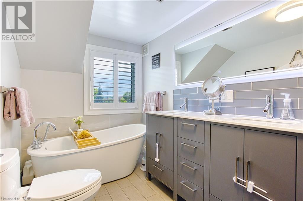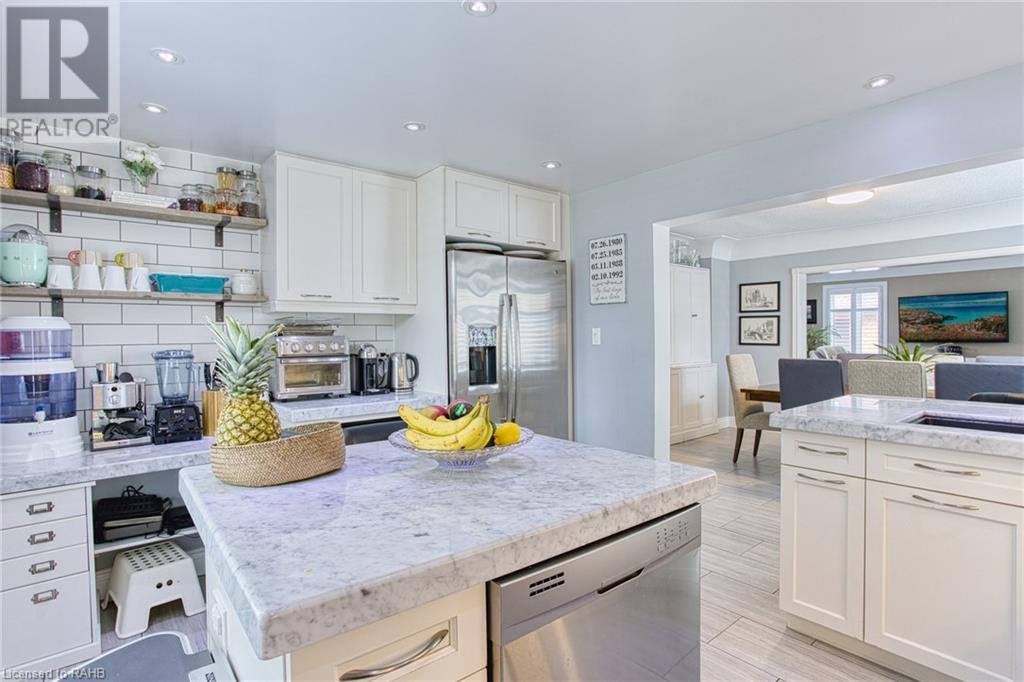 Welcome to 580 Fifty Road, an exquisite abode nestled in Stoney Creek, blending sophistication with functionality, ideally suited for families, those desiring the comfort of multi-generational living or investors alike. Step inside to discover an array of opulent features, including a steel roof under a transferable 50-year warranty, an in-ground sprinkler system, and a captivating enclosed three-season sunroom, perfect for year-round enjoyment. The heart of the home is the gourmet kitchen, outfitted with gleaming stainless steel appliances, marble countertops, and white cabinetry complemented by a sizable island and peninsula with breakfast bars. Entertaining is effortless with the spacious dining area and welcoming living room, leading out onto a splendid deck. Indulge in the luxurious primary suite, complete with dual closets, an inviting fireplace, and an indulgent 5-piece ensuite. The upper level also boasts two additional airy bedrooms and a contemporary 4-piece bathroom. The finished basement provides two extra bedrooms and a generous-sized rec room with a fireplace. The property doesn't stop impressing with over 1000 sqft detached garage and a 700 sqft finished loft space, offering potential as an in-law suite with all amenities including climate control and central vac. With ample parking for 10+ vehicles, this home is a stone's throw from Lake Ontario, the 50 Point Yacht Club, and a short distance from the amenities at Winona Crossing Shopping Plaza. (id:55009)