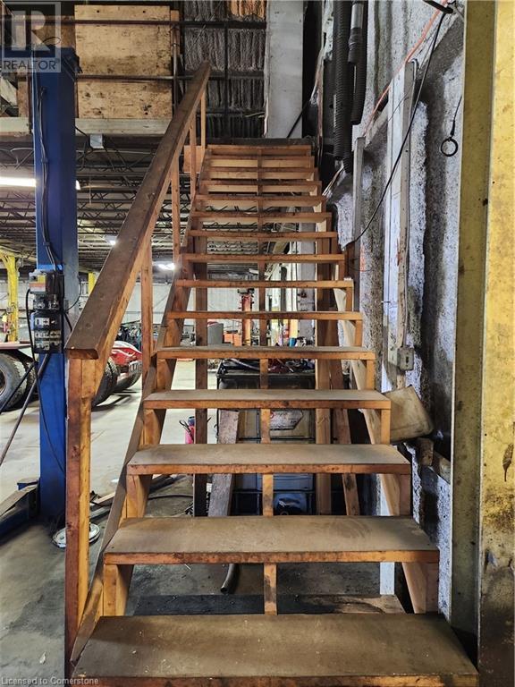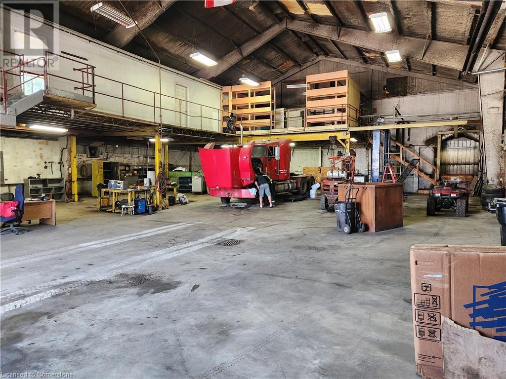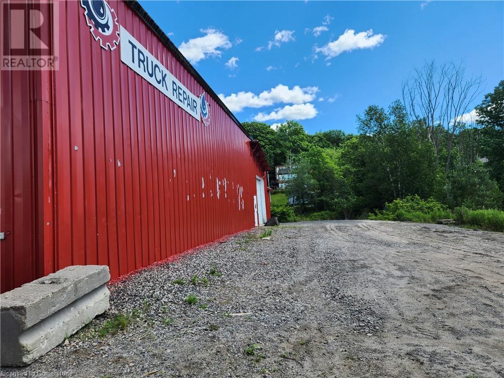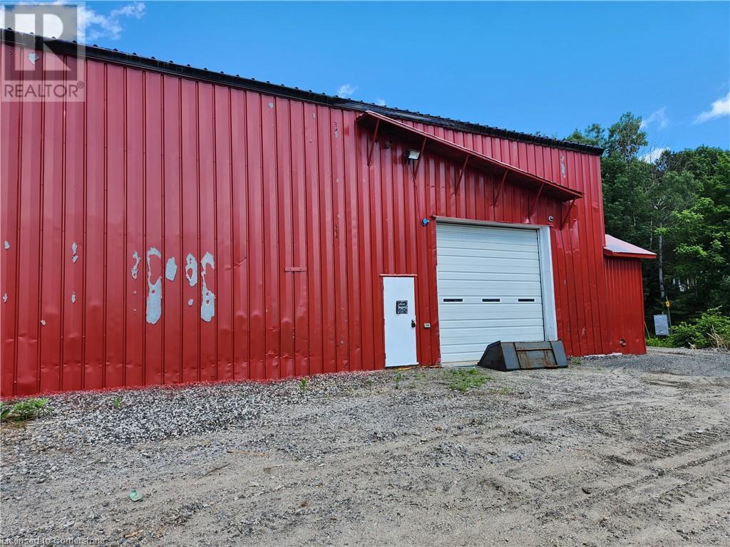 An industrial building available for lease just off of Hwy 11 in Huntsville. The quiet street allows for uninterrupted work while operating your business and M1 zoning allows for multiple uses. The exterior lends itself to lots of storage or vehicle parking and the interior boasts high clear height, main office, two mezzanines, two washrooms, two large loading bay doors, car hoist, kitchenette, and a lot more. Work benches, shelving, office furniture included with the lease. Thank you for looking. (id:55009)