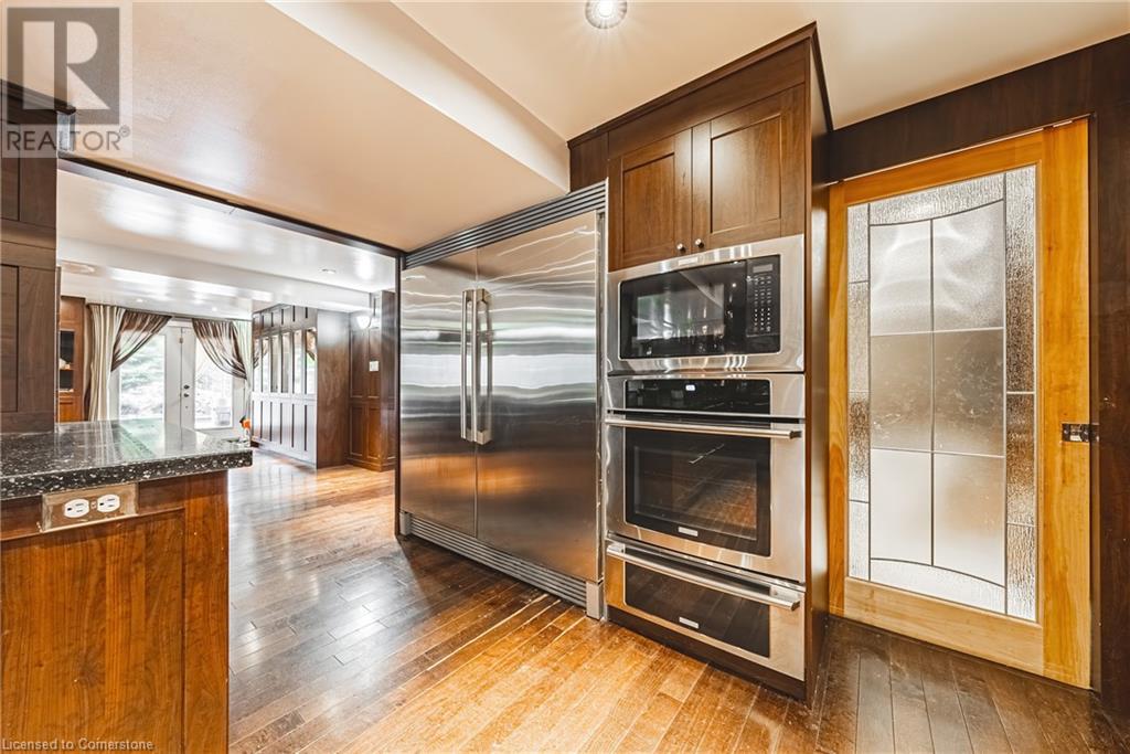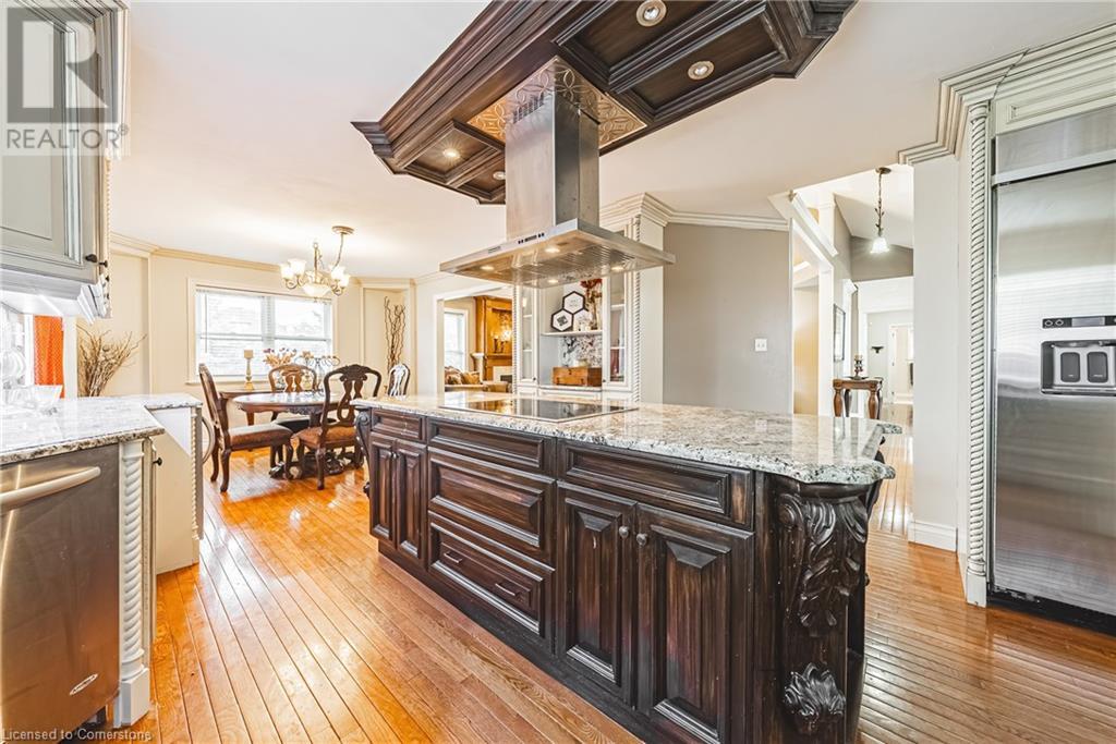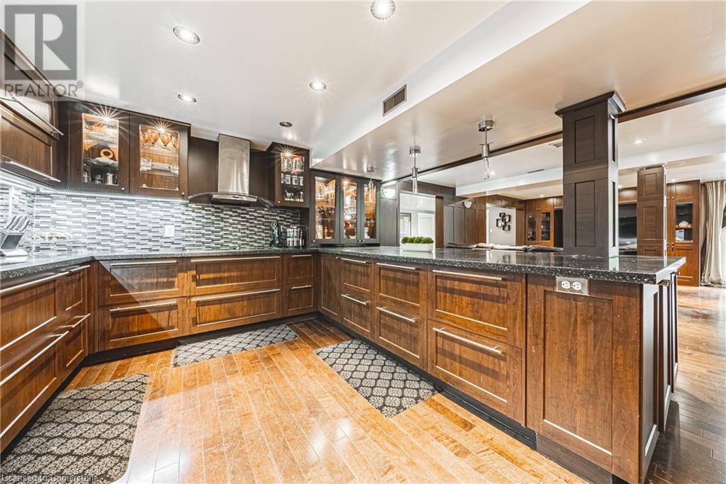 Welcome to Your Dream Estate: Where Elegance Meets Tranquility Nestled in a private court, this stunning bungalow seamlessly blends timeless elegance with modern functionality. From the moment you enter, you’ll be captivated by 10-foot vaulted ceilings, expansive living spaces, and high-end finishes. The living room, anchored by a cozy gas fireplace, sets the stage for relaxation and entertaining. The gourmet kitchen, equipped with premium stainless steel appliances and sleek granite countertops, is a chef’s dream. A sunlit balcony extends from the kitchen, offering peaceful views of your private, tree-lined backyard—perfect for morning coffee or evening gatherings. The main floor boasts three spacious bedrooms, including a serene master suite featuring a luxurious 5-piece ensuite with a soaker tub and walk-in closet. A 4-piece bath and powder room complete the main level. The lower level offers a fully equipped walk-out in-law suite with a separate entrance, an additional kitchen with granite countertops, three more bedrooms, and a 4-piece bath. Ample storage and generous entertainment areas make this space ideal for guests or multi-generational living. Set on 1.73 acres of beautifully landscaped grounds, the property features stamped concrete pathways, a double-car garage, and a 20-car driveway. A separate workshop, complete with electrical and plumbing, offers space for hobbies or projects. For peace of mind, the home is equipped with advanced security and sprinkler systems, ensuring safety and convenience year-round. This extraordinary home offers more than just a place to live—it’s a lifestyle of luxury and tranquility. Don’t miss the chance to make this exceptional property yours! (id:55009)