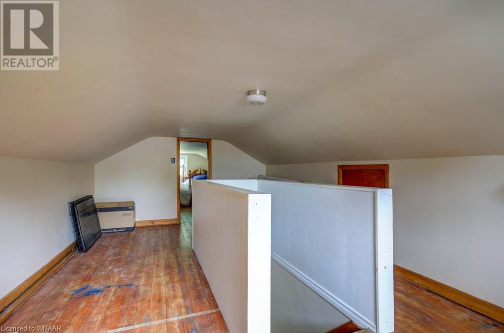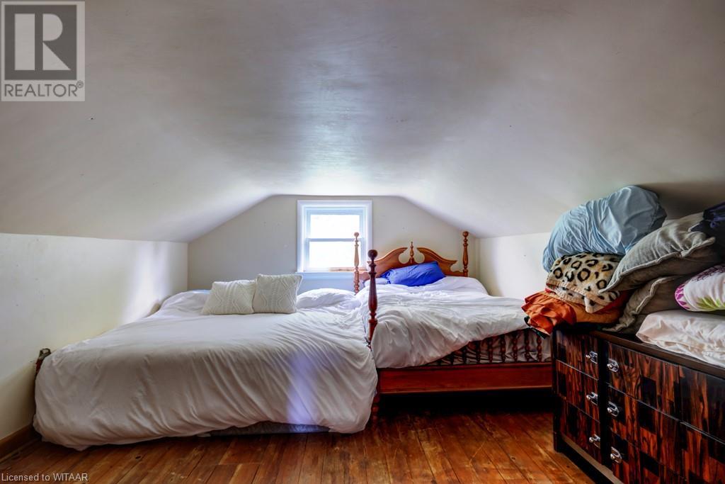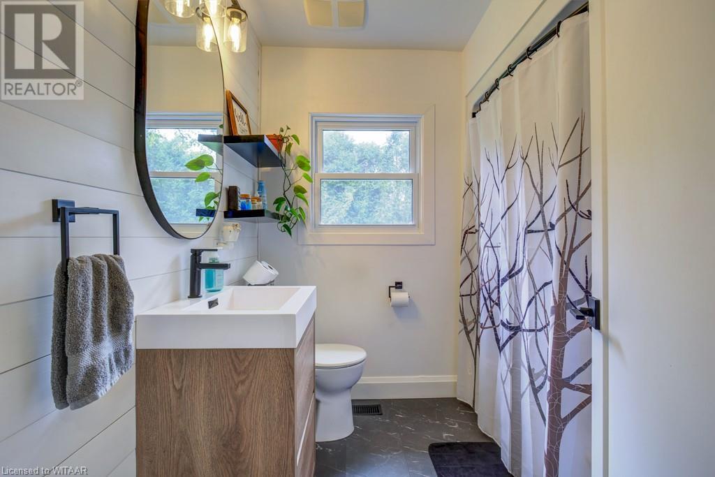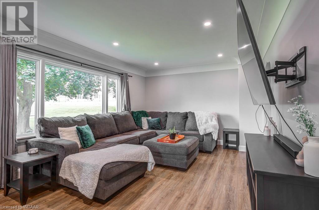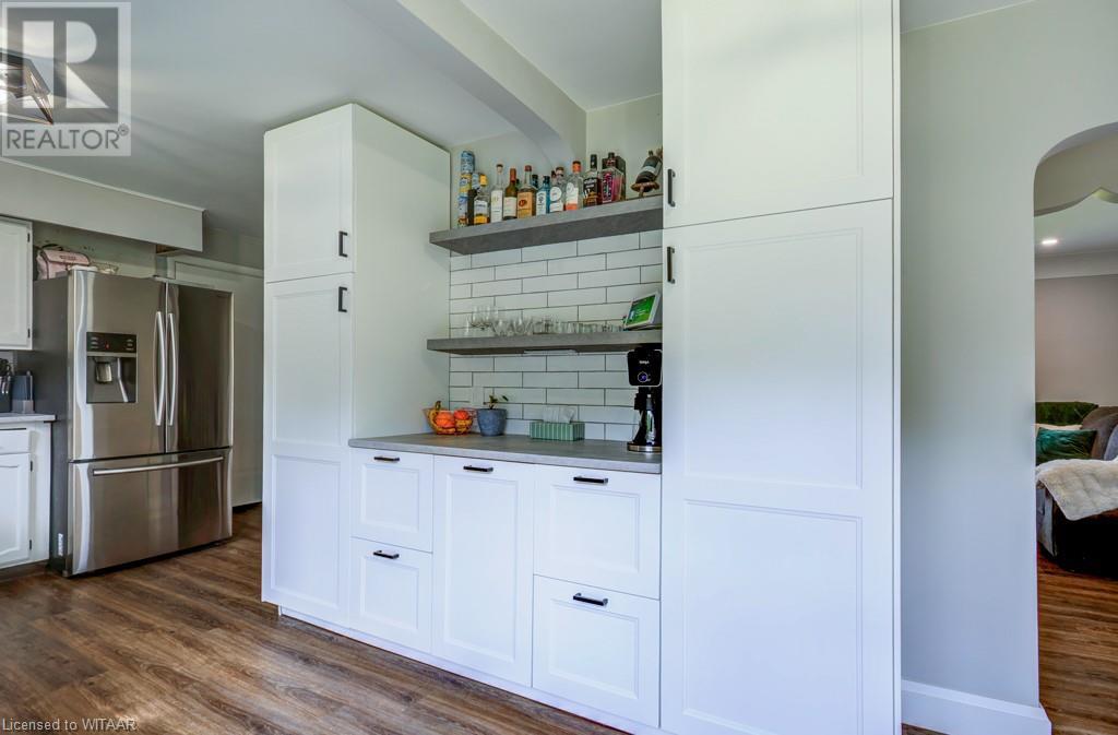 Discover this hidden gem, tucked away on a private dead-end road in a prime location of Tillsonburg. This charming 3-bedroom, 1-bath home sits on a nearly 3/4 acre lot adorned with mature trees, creating a serene, park-like setting while still being close to all amenities. The home boasts stylish interior enhancements that blend functionality and modern elegance. Most of the main level has undergone a total transformation, featuring new flooring, a complete bathroom overhaul with beautiful fixtures, and an incredible kitchen with new countertops, backsplash, ample storage, a coffee bar, and gleaming stainless steel appliances. Other significant updates include newer windows, a water softener, a patio door, a furnace (2019), central air (2020), and a 200-amp service. The upper level currently features one large bedroom and additional versatile space ideal for a hobby room or office. The high-ceiling, full basement layout, has a separate entrance and offers potential for extra storage or even more additional living space. The detached garage/shop, shed, and barn provide a world of possibilities for future enhancement to create the ultimate oasis, right in town. This property is truly, a rare and exceptional find. Come check it out! (id:55009)