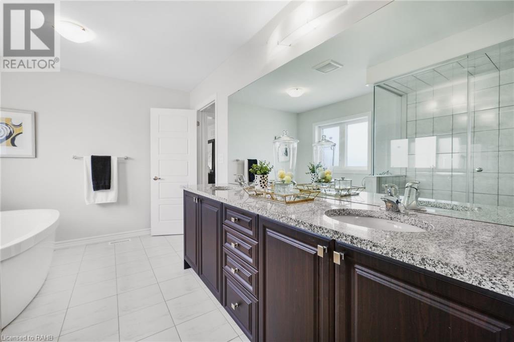 Get away from the Hussle and Bussle of the big city and plant your roots in the fantastic growing community of Merritville, Thorold, ON. This magnificent 3480+sqft 4 beds, 4 baths home, a perfect blend of sophistication and functionality. With over 100K in builder upgrades, located on a tranquil, family friendly street. 9 foot ceilings, 8 foot doors and polished hardwood floors. Open concept living with an abundance of natural light your children will love it! Quartz countertops in the expansive dark wood kitchen, large island with ample storage space. Sprawling living room ideal for family gatherings or quiet nights by the fireplace.Private main floor office for the work from home enthusiast. The second level boasts 4 amazing bedrooms each with their own walk in closet and private bathroom access. The primary bedroom, in particular, is a spacious retreat that will become your sanctuary, ensuite bathroom with 8 foot glass shower and a gorgeous soaker tub. All bathrooms are premium, granite counters and the latest upgrades, this house is a dream, upstairs laundry for your convenience. The unfinished basement is waiting for your finishing touches offering endless possibilities for added living space. No rear neighbours providing privacy and unparalleled comfort. Double car garage, minutes to the QEW, Niagara Penn Centre, Brock university, Niagara College, 30 minutes to the US border. This property is the epitome of great Niagara region living. (id:55009)