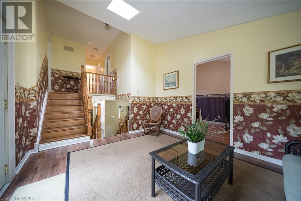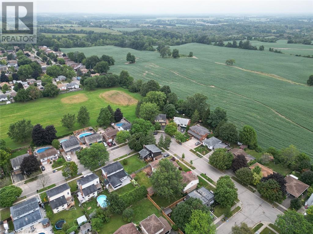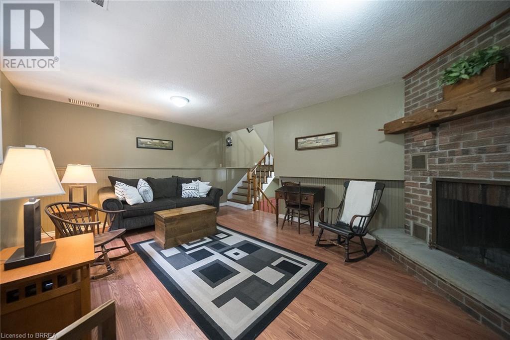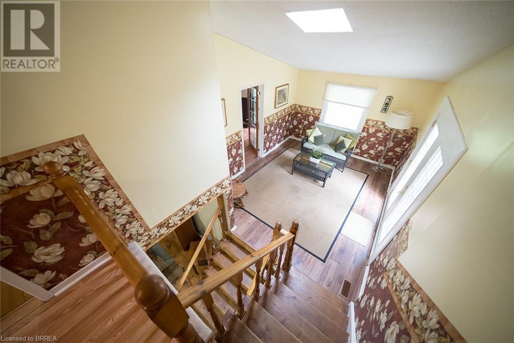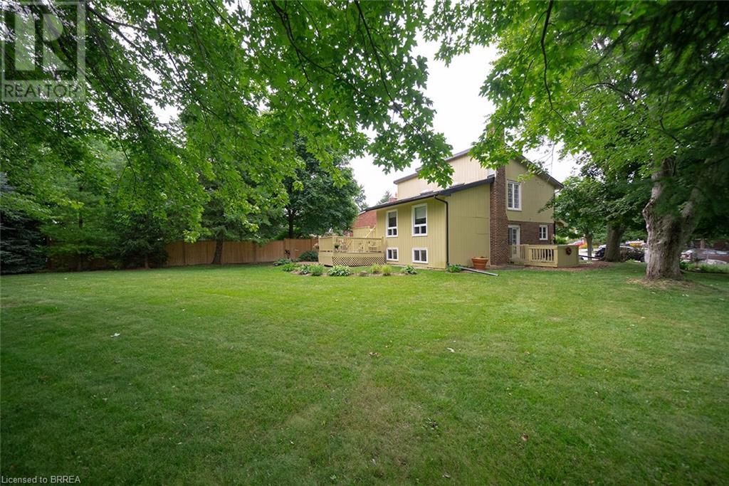 First time offered in Lynden Hills! Welcome Home to 60 Fieldgate Drive. This charming 2 storey home has 1485 sq ft+ additional finished space below with 4 beds, 2+2 baths and sits on a large pie shaped lot, no rear neighbours and backs onto Lynden Hills Park. The tidy exterior includes a single car garage, driveway parking for 4 and a deep lush backyard. This carpet-free home welcomes you with a spacious front foyer, featuring Pine plank hardwood that extends throughout the entire main floor, including the dining room, kitchen, and 2pc powder rm. The kitchen is situated at the front of the home, featuring a large window that offers a view of the front yard. It also has shaker-style cabinets, a built-in dishwasher (2021) & ample space for a kitchen table. The dining room features French doors that open to the side yard and a raised deck, offering the ideal spot to enjoy your morning coffee or unwind with an evening drink. The main floor also provides direct access to the garage. Just a few steps up the living room features a vaulted ceiling & French doors that lead to a deck overlooking the backyard. Adjacent to the living room is a versatile room that can serve as a bedroom, office, or den. The upper level of the home offers 3 bedrooms, including a primary suite with its own 2pc ensuite. This level is also complemented by a 4pc bath, featuring a shower/tub combo. The lower level has a recreation room and features a wood burning fireplace fashioned with a brick surround & timber mantle. A 3pc bath, utility room & laundry facilities can be found in the basement. The backyard is a green oasis, complete with mature trees, garden shed, and a spacious deck perfect for outdoor relaxing or enjoying family gatherings. This exceptional home is situated in a highly sought-after, family-friendly neighbourhood, close to top-rated schools, Lynden Mall and convenient HWY access for easy commuting. (id:55009)