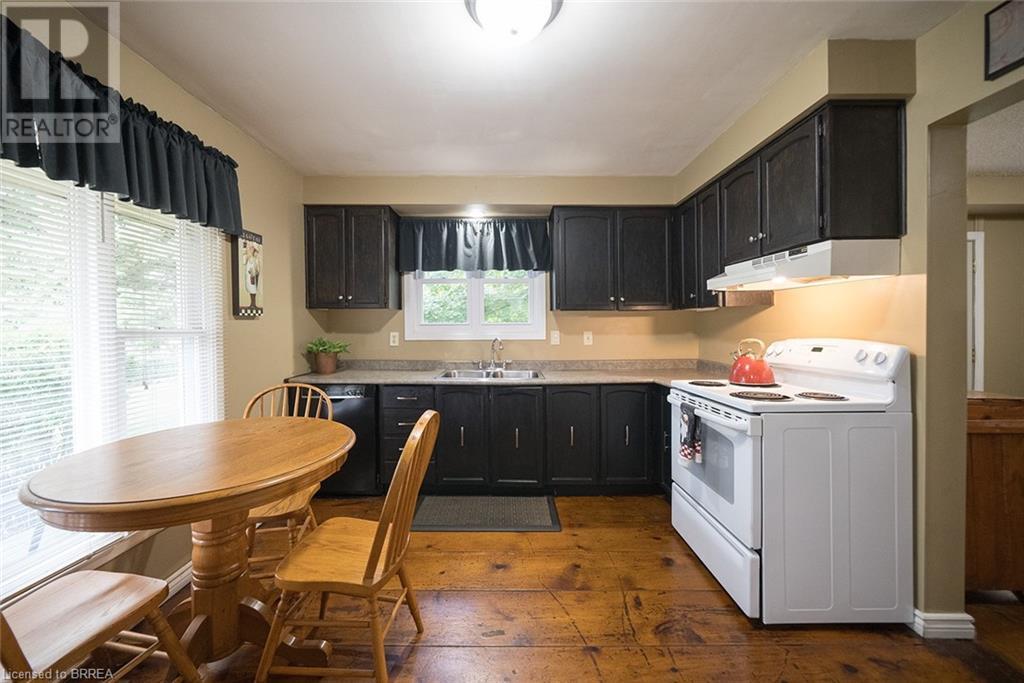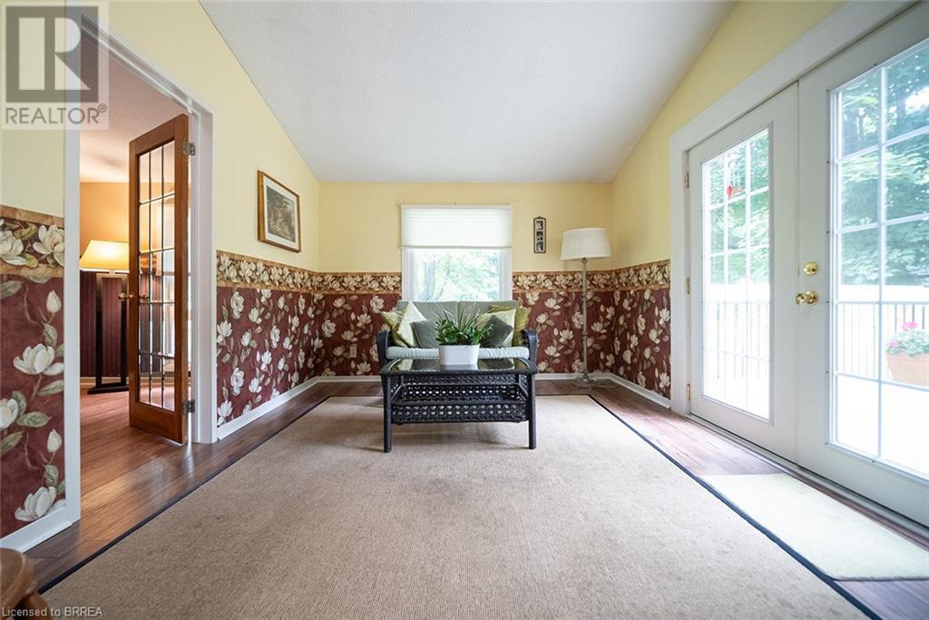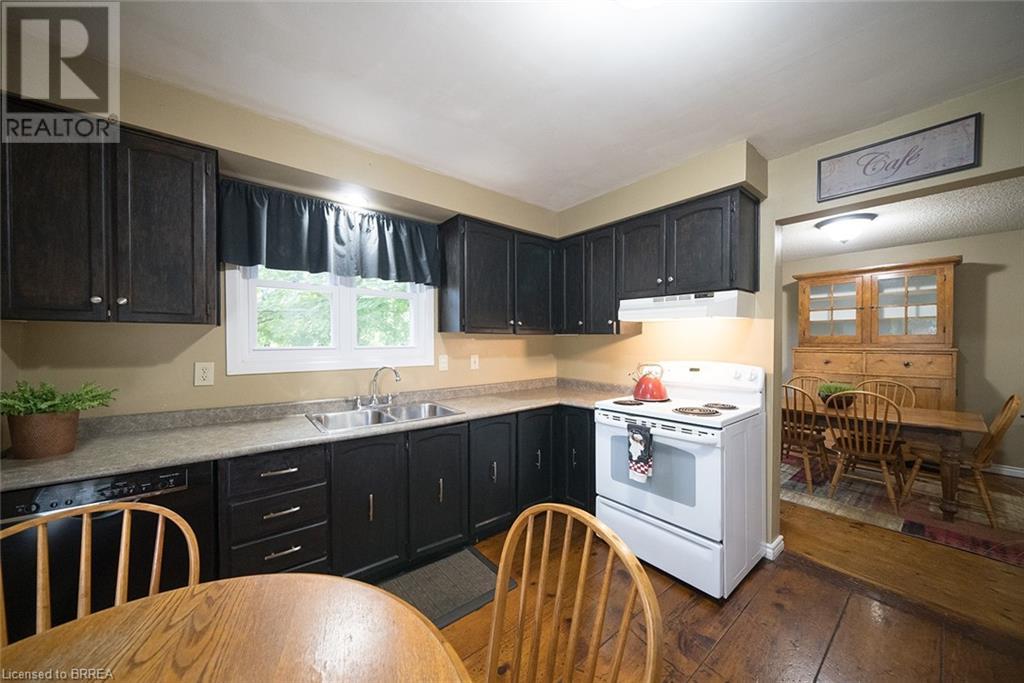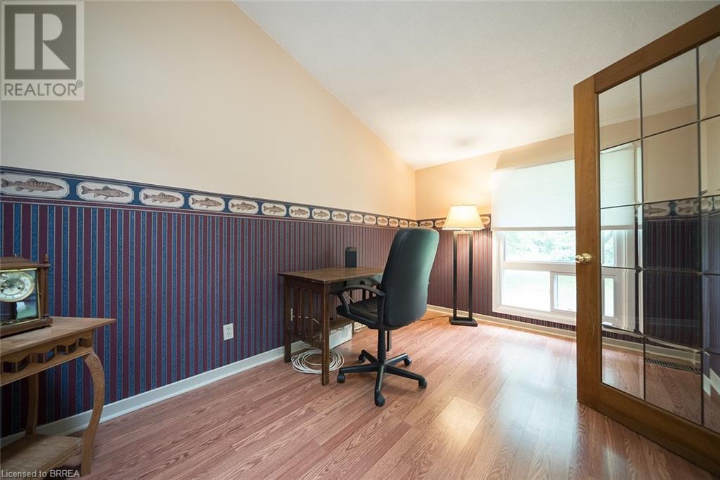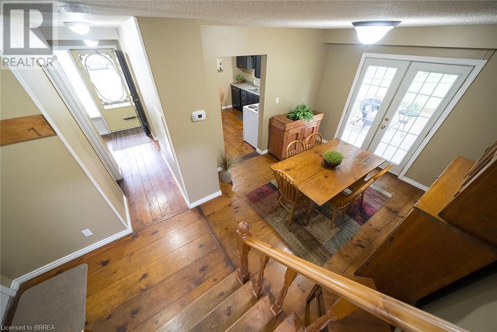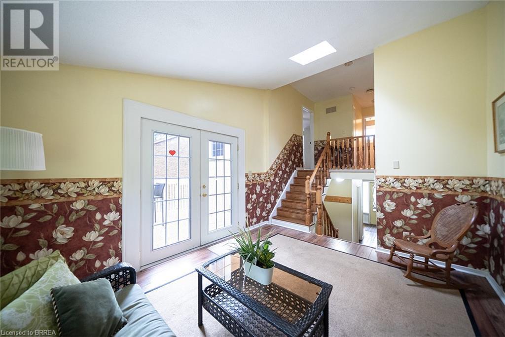 First time offered in Lynden Hills! Welcome Home to 60 Fieldgate Drive. This charming 2 storey home has 1485 sq ft+ additional finished space below with 4 beds, 2+2 baths and sits on a large pie shaped lot, no rear neighbours and backs onto Lynden Hills Park. The tidy exterior includes a single car garage, driveway parking for 4 and a deep lush backyard. This carpet-free home welcomes you with a spacious front foyer, featuring Pine plank hardwood that extends throughout the entire main floor, including the dining room, kitchen, and 2pc powder rm. The kitchen is situated at the front of the home, featuring a large window that offers a view of the front yard. It also has shaker-style cabinets, a built-in dishwasher (2021) & ample space for a kitchen table. The dining room features French doors that open to the side yard and a raised deck, offering the ideal spot to enjoy your morning coffee or unwind with an evening drink. The main floor also provides direct access to the garage. Just a few steps up the living room features a vaulted ceiling & French doors that lead to a deck overlooking the backyard. Adjacent to the living room is a versatile room that can serve as a bedroom, office, or den. The upper level of the home offers 3 bedrooms, including a primary suite with its own 2pc ensuite. This level is also complemented by a 4pc bath, featuring a shower/tub combo. The lower level has a recreation room and features a wood burning fireplace fashioned with a brick surround & timber mantle. A 3pc bath, utility room & laundry facilities can be found in the basement. The backyard is a green oasis, complete with mature trees, garden shed, and a spacious deck perfect for outdoor relaxing or enjoying family gatherings. This exceptional home is situated in a highly sought-after, family-friendly neighbourhood, close to top-rated schools, Lynden Mall and convenient HWY access for easy commuting. (id:55009)