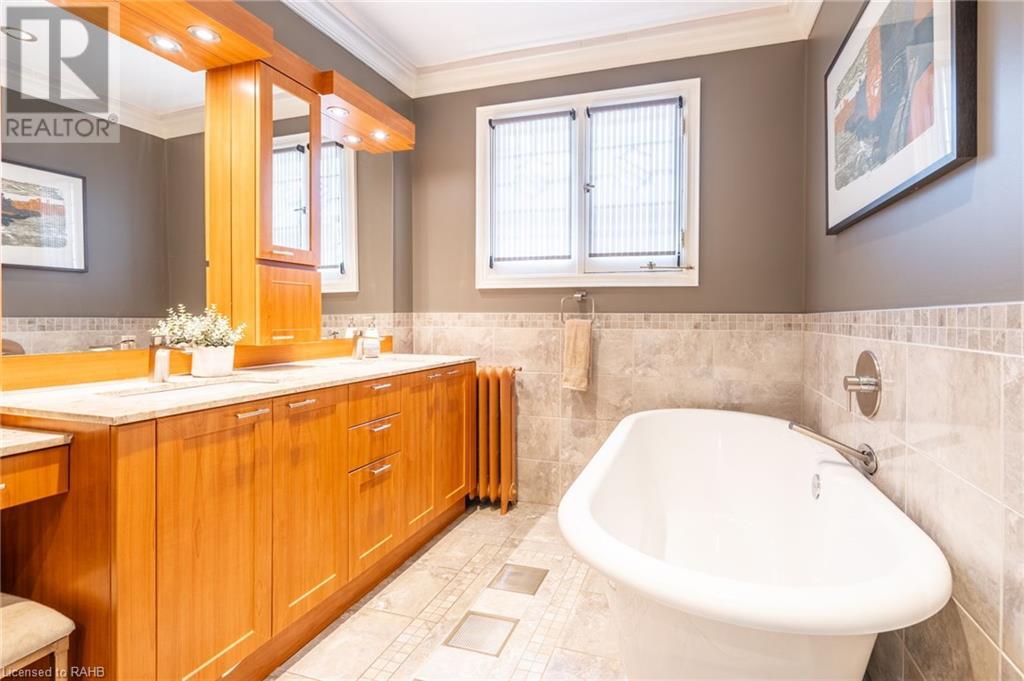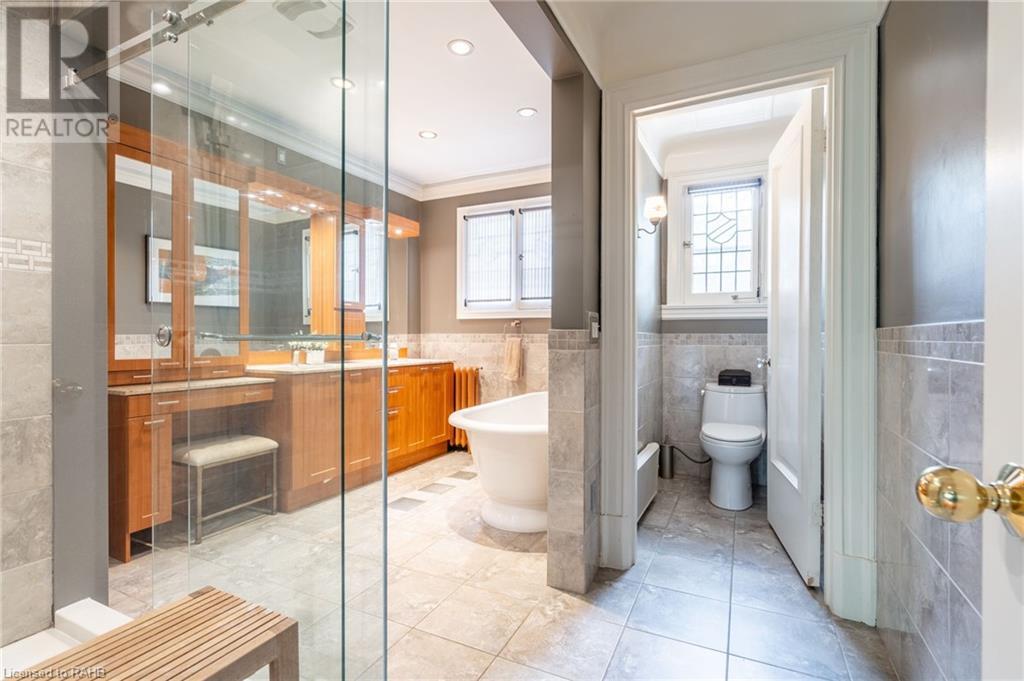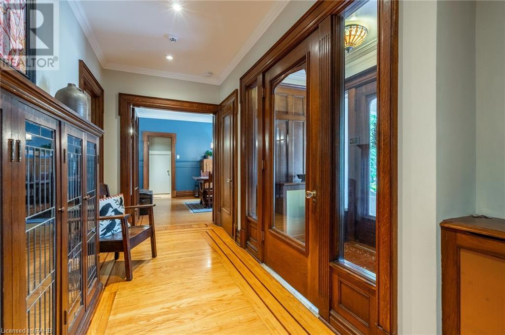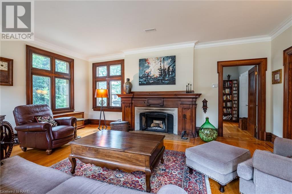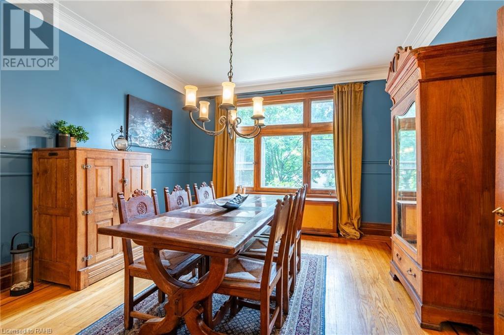 Beautiful character filled 1923 home in one of Hamilton's most sought-after pockets in the gorgeous South-West. Walking up to the property you're met with incredible curb appeal & stunning low maintenance gardens. It's set back from the road with ample parking with two driveways & double garage. The home offers 6 bedrooms, 4.5 bathrooms and entertaining is a dream with the large great room with wood burning fireplace and spacious dining room just off the kitchen. The home is filled with gorgeous lead windows & wood trim that is something to marvel at. Upstairs offers three bedrooms on the 2nd floor with two common areas & balcony off the family room overlooking the Escarpment. Separate Entrance & stairway from outside leading to 2nd floor. 3rd Floor has 2 more bedrooms, another full bathroom & its own patio space. Basement has an additional separate side entrance leading to large rec room, man cave, 3 pc bathroom & sauna. Outside the backyard is extremely private, with a sliding glass door off the kitchen leading to large deck with its own patio space, bar & hot tub. Home is ideally located within walking distance to Locke St S, hiking trails across the Escarpment & easy access to Hillfield Strathallan & 403 access. A must-see home! (id:55009)
