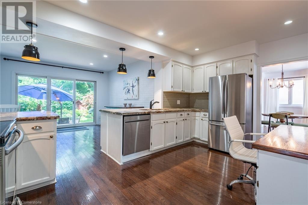 Located on the sought after Inverness Ave W, this beautiful home has so much to offer! As you enter the home, you are welcomed into a two-storey foyer. To the right of the foyer isa stunningly bright living room with a wood burning fireplace. Explore further into the main floor and find a formal dining area, private office space two piece bathroom, recreation room with a woodburning fireplace and a large eat in kitchen with a walk out to a great deck. On the second floor, we have five generous bedrooms with a full family bath. The backyard is a large private oasis with manicured gardens and private patio area and a cute shed for all your gardening supplies. This one-of-a-kind home, has a bus stop to nearby Hillfield Strathallan College and good public schools, walking distance to Mohawk College, Sam Lawrence and Southam Park. This is a rare opportunity in a great area and close to everything. Don’t be TOO LATE*! *REG TM. RSA (id:55009)