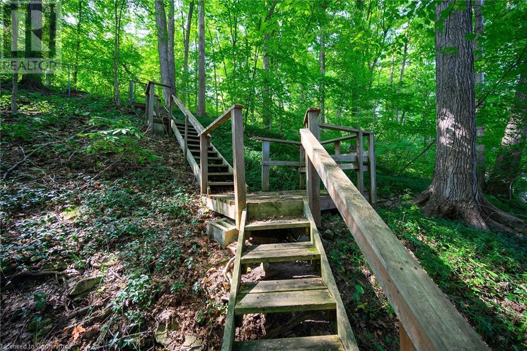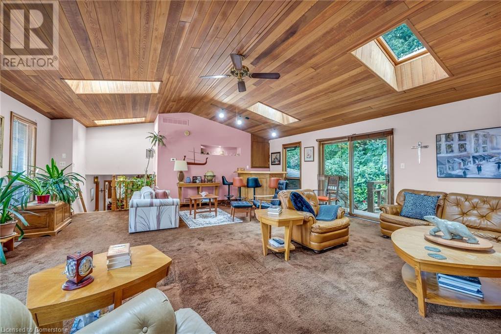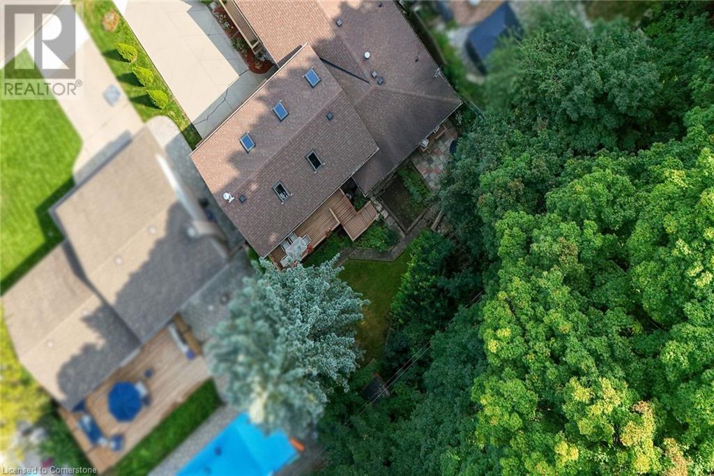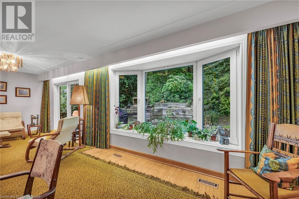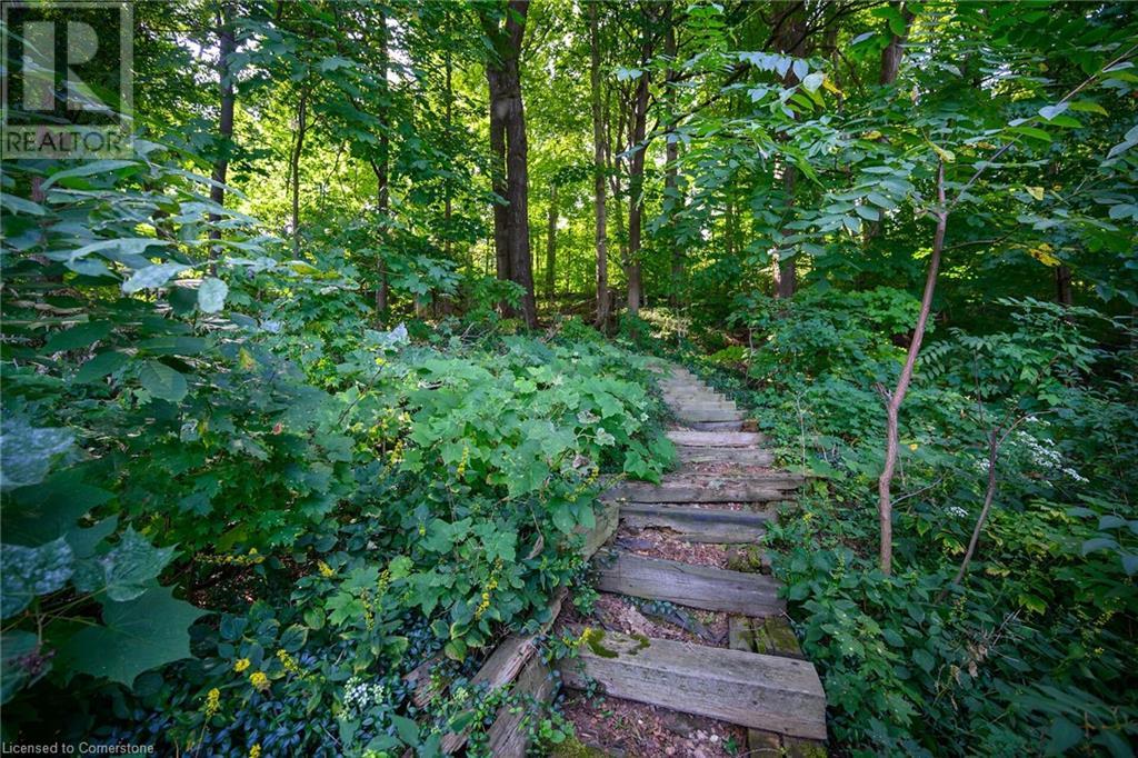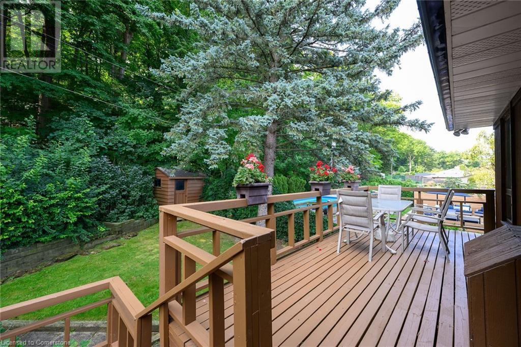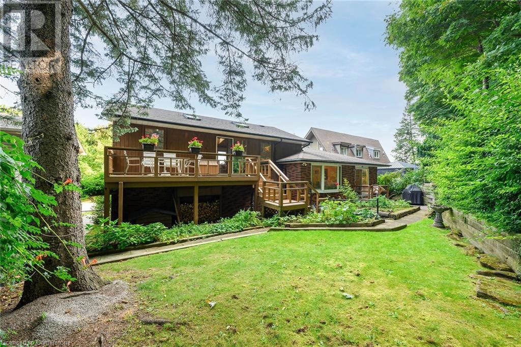 SPACIOUS CUSTOM-BUILT ONE-OWNER, 3+1 BEDROOM HILLSIDE HOME on the Stoney Creek plateau. Located on large property backing onto the escarpment in most sought-after hillside neighbourhood. Breathtaking woodland views from every window. Spacious main floor family room with wall-to-wall windows to take in the views. Main floor primary bedroom with ensuite privilege bath, wrap-around verandah on main level, eat in kitchen with sliding doors to back yard oasis with fully-fenced yard. Large upper-level great room with soaring cathedral ceiling, skylights, fireplace and sliding doors to spacious deck. Additional long front verandah from great room. Bright lower level with rec room, fireplace, additional bedroom & 3PC bath. OTHER FEATURES INCLUDE: New furnace and c/air 2017, new roof shingles 2015, all window treatments, washer/dryer, fridge, stove, 2.5 car garage, long double concrete driveway. Close to parks and conveniences with easy access to QEW. A serene haven adjacent to the Bruce Trail. (id:55009)