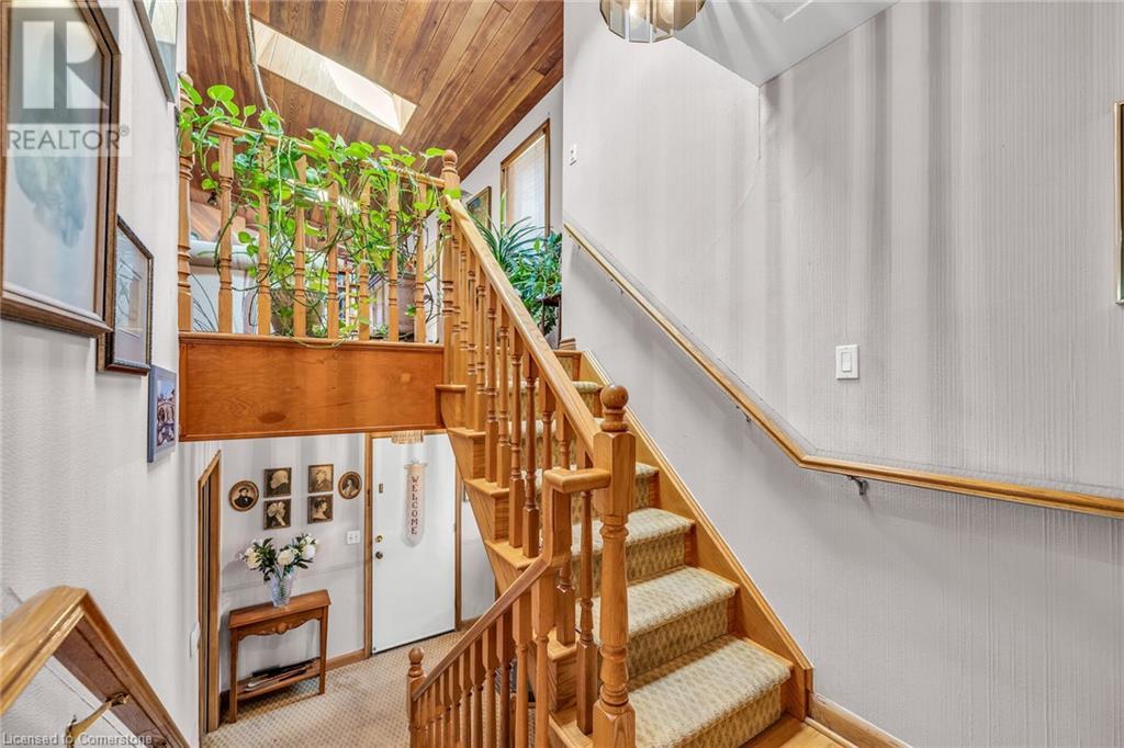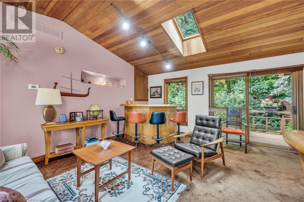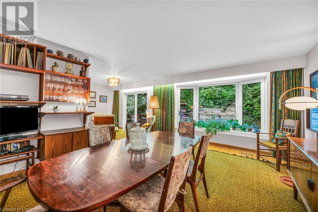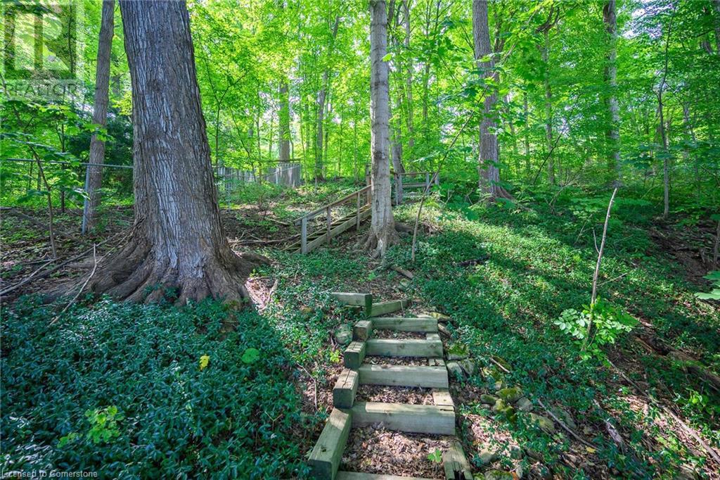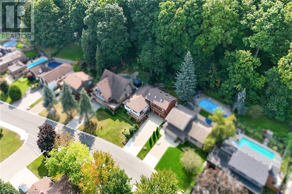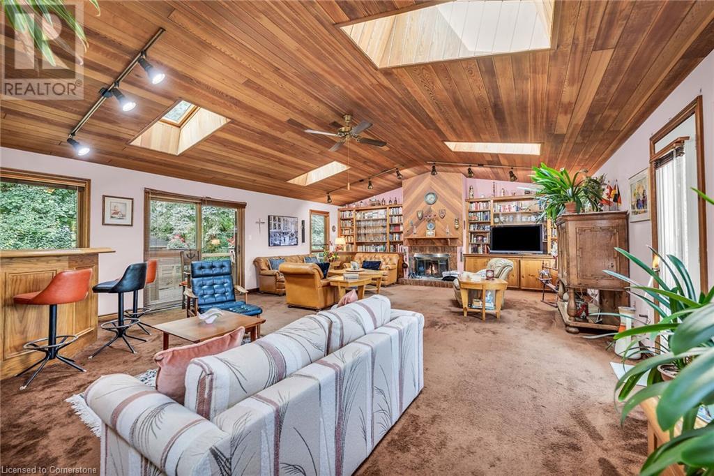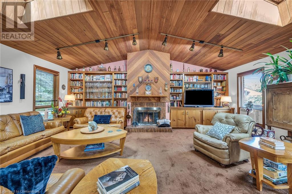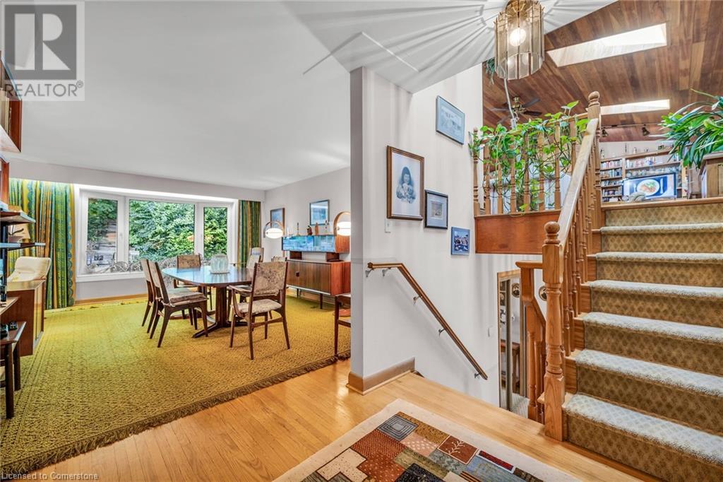 SPACIOUS CUSTOM-BUILT ONE-OWNER, 3+1 BEDROOM HILLSIDE HOME on the Stoney Creek plateau. Located on large property backing onto the escarpment in most sought-after hillside neighbourhood. Breathtaking woodland views from every window. Spacious main floor family room with wall-to-wall windows to take in the views. Main floor primary bedroom with ensuite privilege bath, wrap-around verandah on main level, eat in kitchen with sliding doors to back yard oasis with fully-fenced yard. Large upper-level great room with soaring cathedral ceiling, skylights, fireplace and sliding doors to spacious deck. Additional long front verandah from great room. Bright lower level with rec room, fireplace, additional bedroom & 3PC bath. OTHER FEATURES INCLUDE: New furnace and c/air 2017, new roof shingles 2015, all window treatments, washer/dryer, fridge, stove, 2.5 car garage, long double concrete driveway. Close to parks and conveniences with easy access to QEW. A serene haven adjacent to the Bruce Trail. (id:55009)