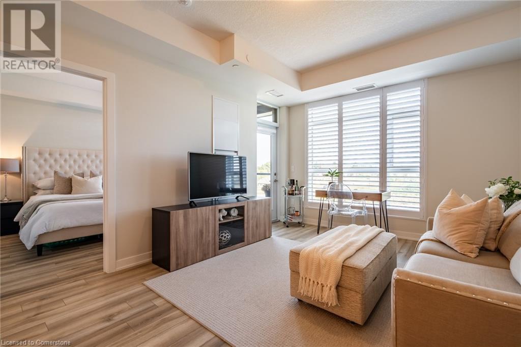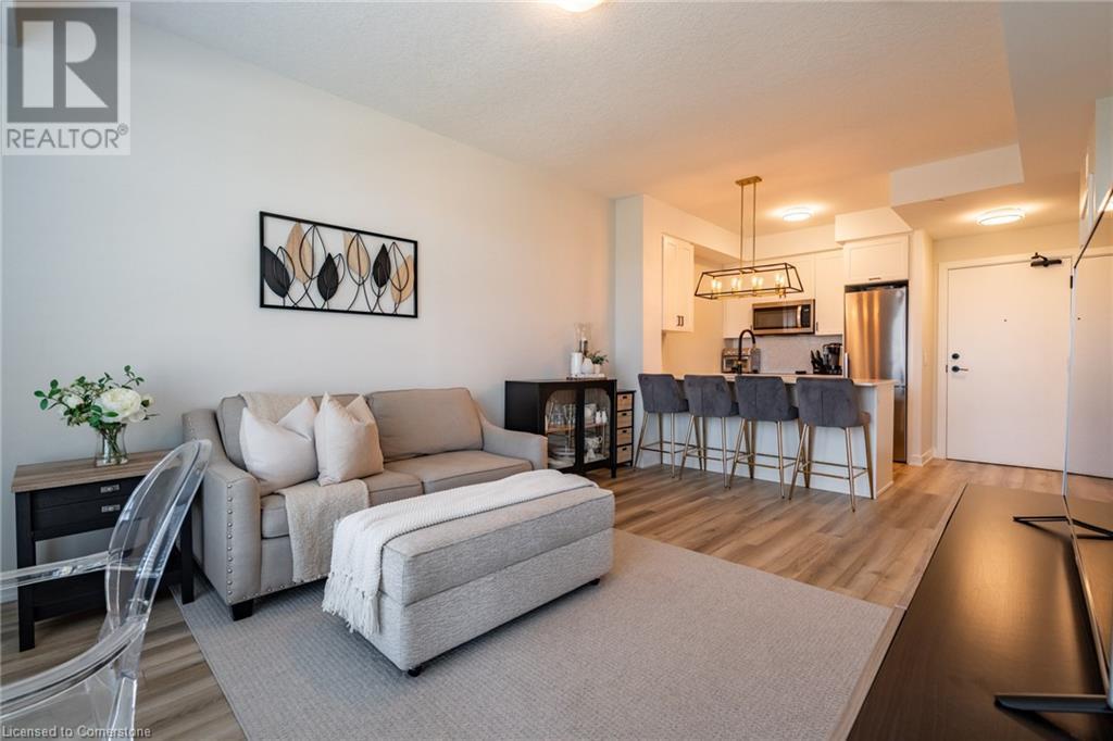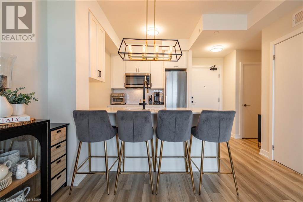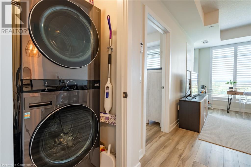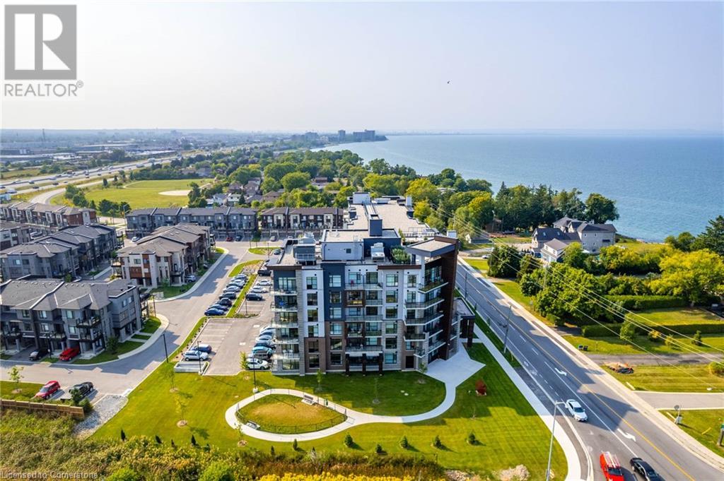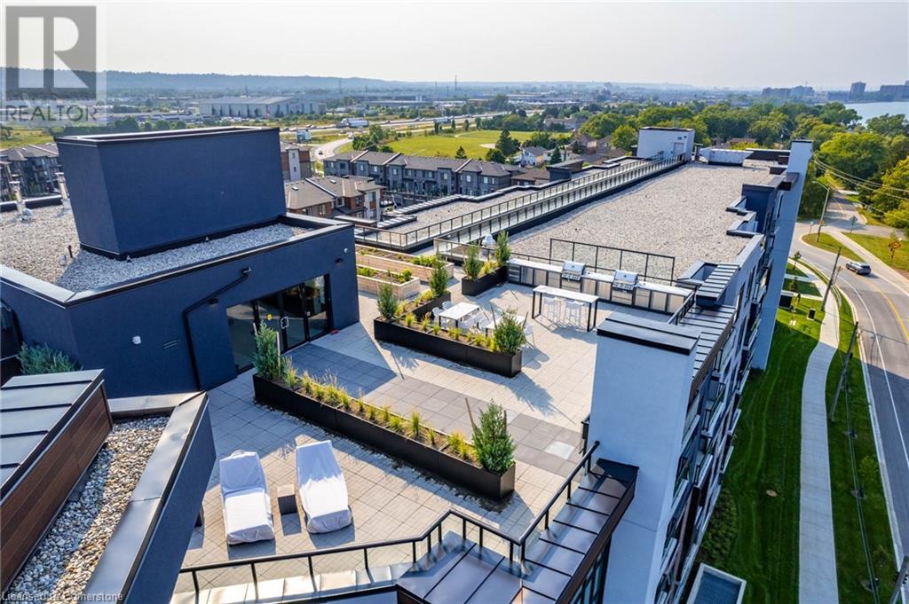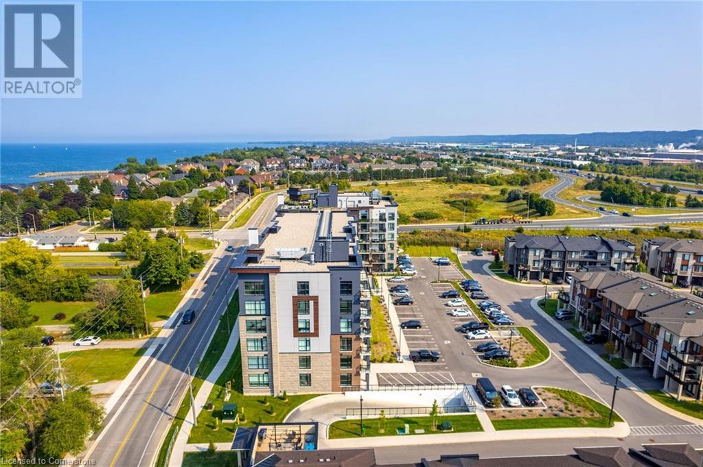 $234.58 MonthlyWelcome to Unit 321 at 600 North Service Rd, perfectly located just steps from Lake Ontario in the highly desirable Community Beach neighbourhood of Stoney Creek. This stylish 1-bed, 1-bath condo in the CoMo Condominium Building, built by Desantis Homes, features high ceilings, an O/C layout, and chic finishes throughout. The space is enhanced by luxury vinyl flooring lending an upscale touch to this already impressive space, large windows that flood the unit with natural light, and a sleek white kitchen. The modern kitch. is equipped with S/S appliances, quartz countertops, and a tiled backsplash all overlooking the living area. The unit includes in-suite laundry with an upgraded LG Electronics Ventless Front Load WashTower Laundry Centre and a primary bedrm with a spacious walk-in closet with a custom organization system, offering both convenience and sophistication. The luxurious bathroom features quartz countertops and a full-size tiled shower with frameless glass doors.Additional building amenities include a rooftop terrace with stunning lake views offering seating, BBQ's, lounging and gardening perfect for a green thumb. The condo building also has a media room, party room, a pet grooming spa, and an on-site dog park—perfect for pet lovers.This unbeatable location is ideal for commuters, with quick access to the QEW. A short drive to Niagara region to visit wineries and restaurants. You’re just a short drive from local shops, dining, and parks that Hamilton offers (id:55009)