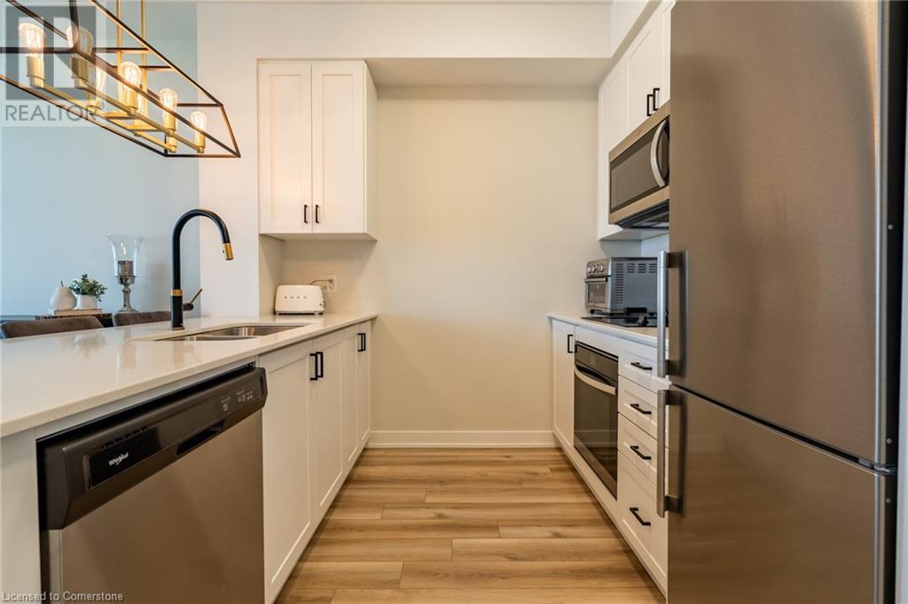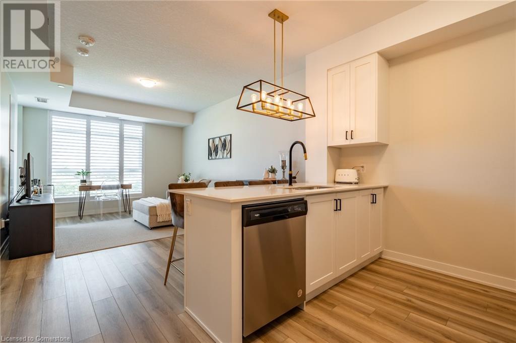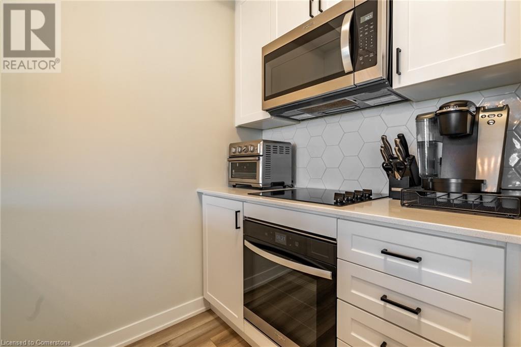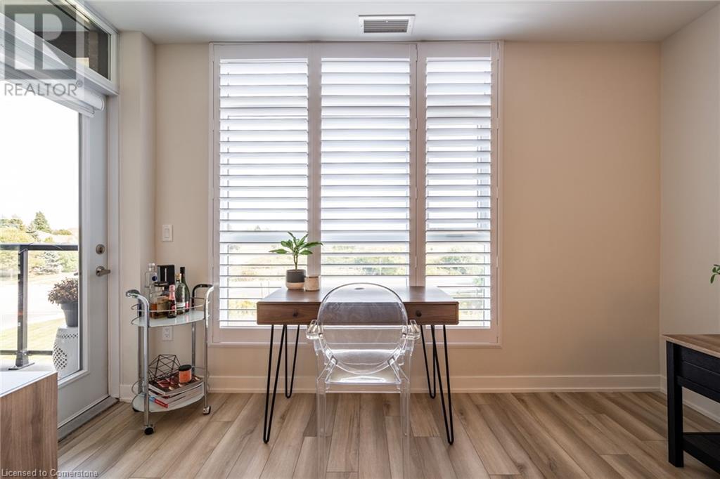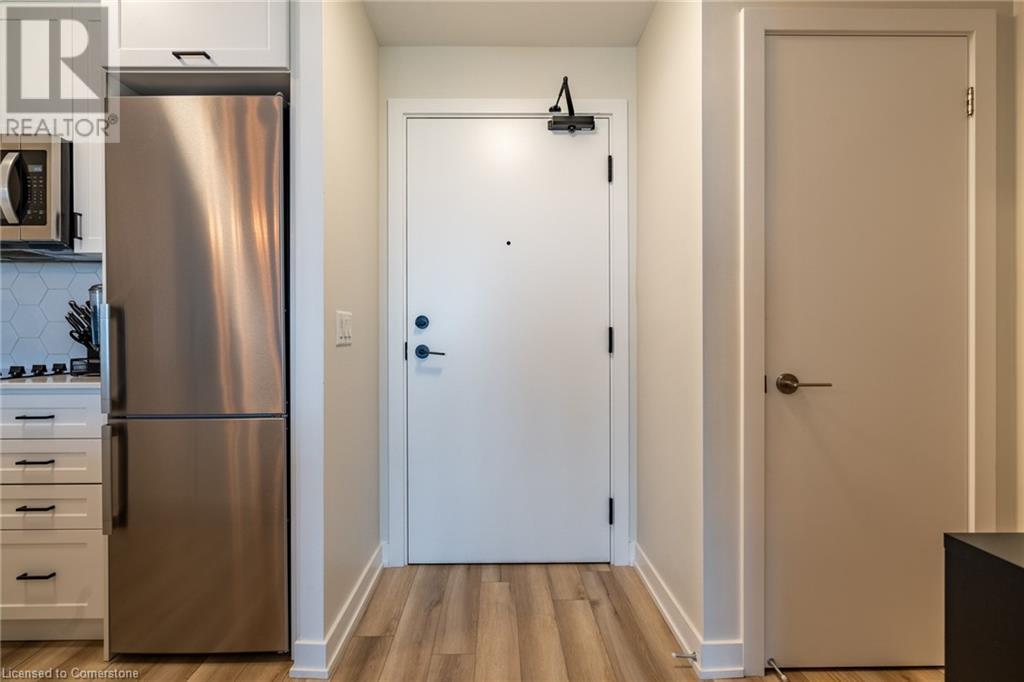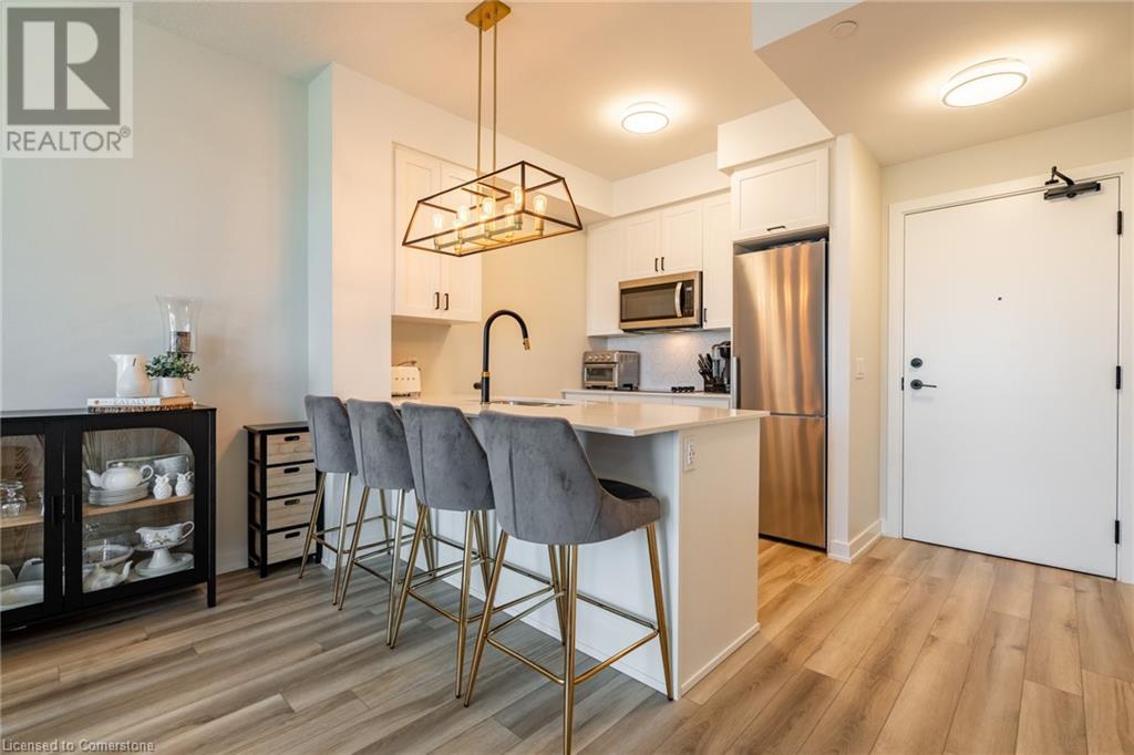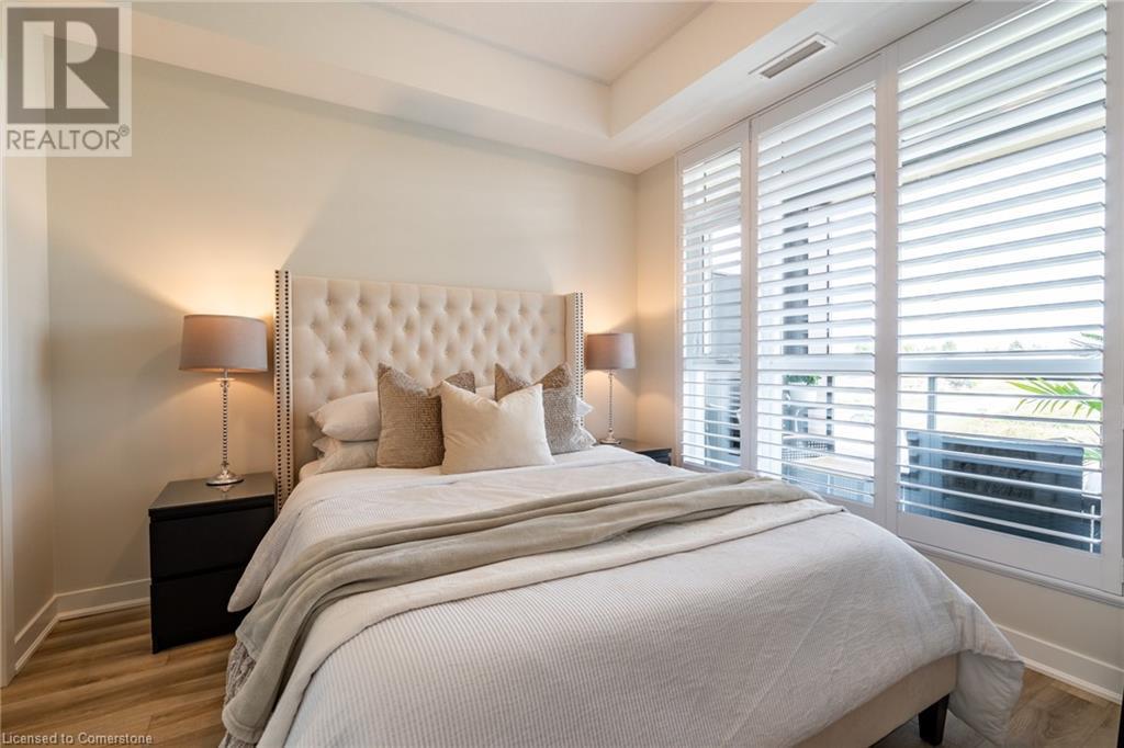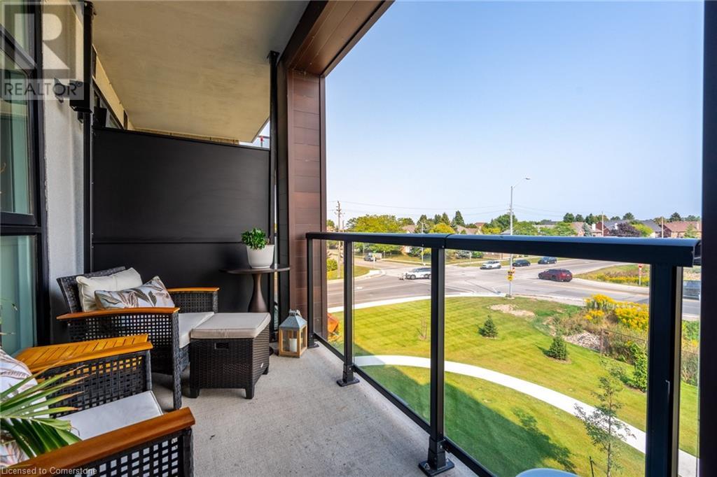 $234.58 MonthlyWelcome to Unit 321 at 600 North Service Rd, perfectly located just steps from Lake Ontario in the highly desirable Community Beach neighbourhood of Stoney Creek. This stylish 1-bed, 1-bath condo in the CoMo Condominium Building, built by Desantis Homes, features high ceilings, an O/C layout, and chic finishes throughout. The space is enhanced by luxury vinyl flooring lending an upscale touch to this already impressive space, large windows that flood the unit with natural light, and a sleek white kitchen. The modern kitch. is equipped with S/S appliances, quartz countertops, and a tiled backsplash all overlooking the living area. The unit includes in-suite laundry with an upgraded LG Electronics Ventless Front Load WashTower Laundry Centre and a primary bedrm with a spacious walk-in closet with a custom organization system, offering both convenience and sophistication. The luxurious bathroom features quartz countertops and a full-size tiled shower with frameless glass doors.Additional building amenities include a rooftop terrace with stunning lake views offering seating, BBQ's, lounging and gardening perfect for a green thumb. The condo building also has a media room, party room, a pet grooming spa, and an on-site dog park—perfect for pet lovers.This unbeatable location is ideal for commuters, with quick access to the QEW. A short drive to Niagara region to visit wineries and restaurants. You’re just a short drive from local shops, dining, and parks that Hamilton offers (id:55009)