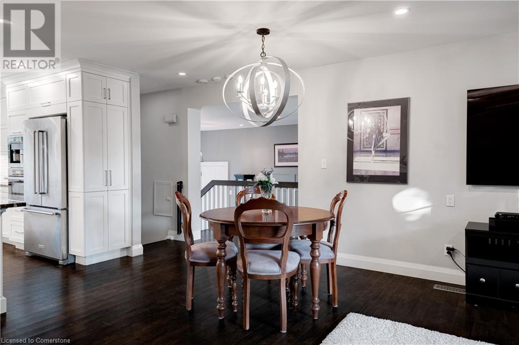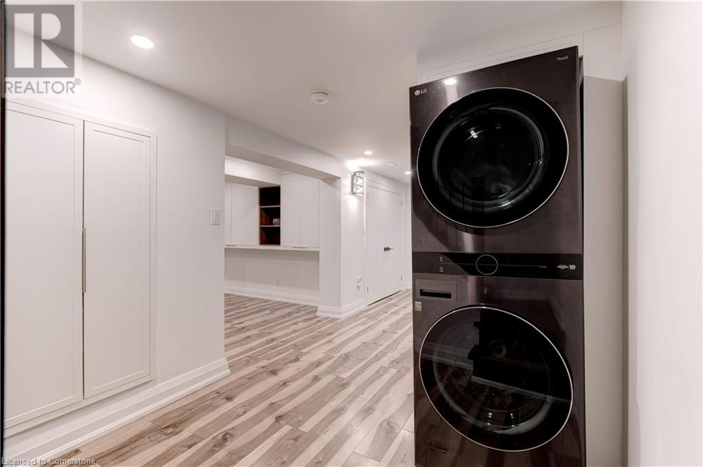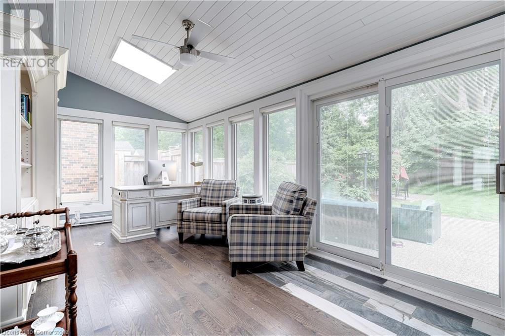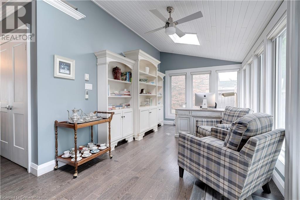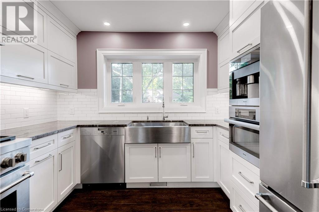 Timeless design with a perfect blend of traditional and contemporary elements and situated in the heart of downtown Burlington. The open concept main floor features well-proportioned rooms, featuring a magnificent great room, kitchen, two bedrooms including an ensuite bath in the primary bedroom. Main floor den/ office with wall of windows and a walkout to a private lush setting. The fully finished lower level offers great versatility, potential income or in-law suite. This level features a 3rd bedroom, kitchenette, bathroom, family room, laundry & storage. Experience the taste of local restaurants, Art Centre, shop at trendy stores and enjoy the summer festivities at Spencer Smith Lakefront Park. (id:55009)