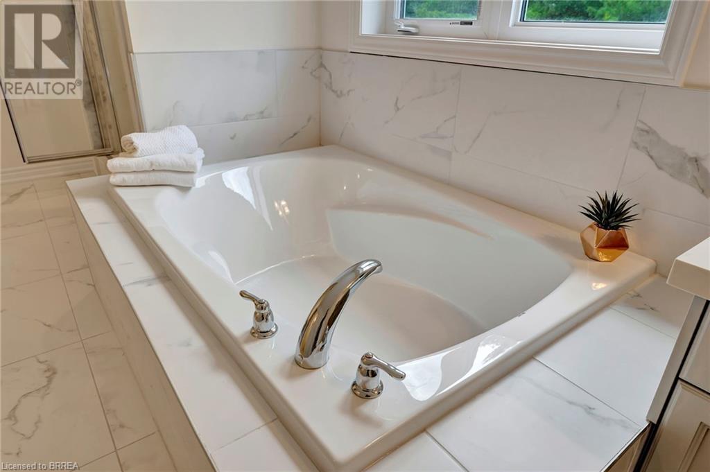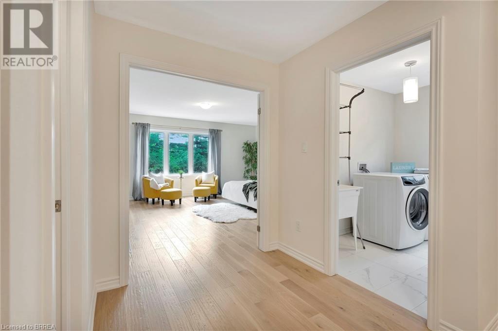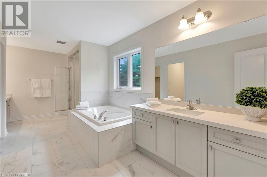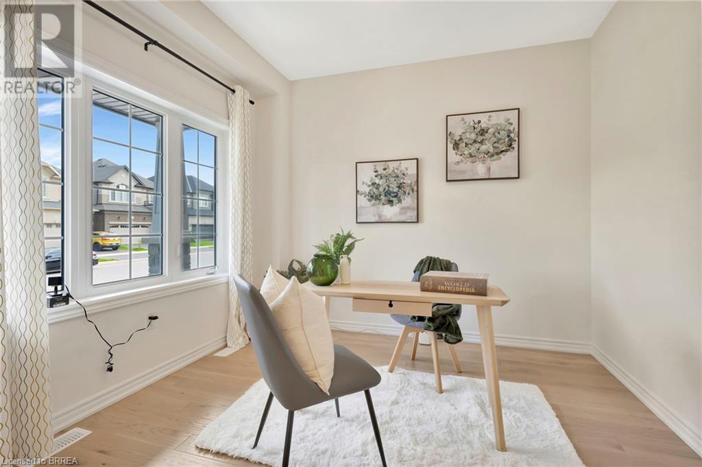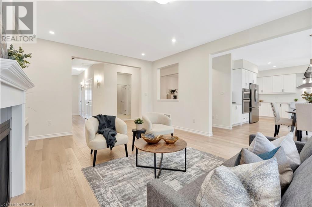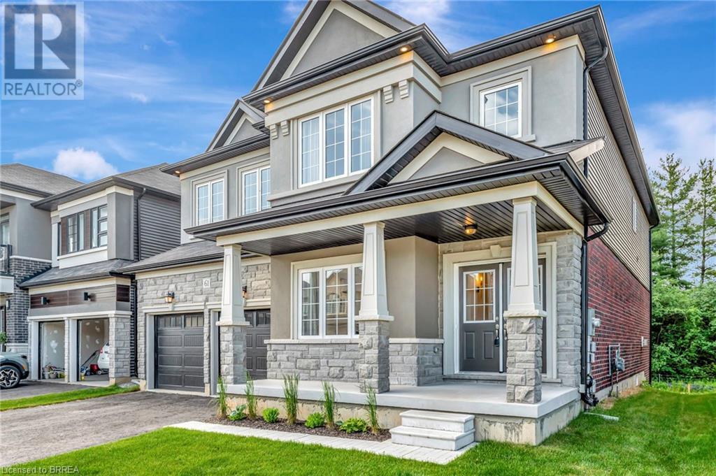 Experience nature at its finest at 61 Stauffer Road in Brantford's Nature's Grand Community. This property sits on a private, over-sized look-out ravine lot with a view of a small forest with lots of mature trees that leads to the Grand River. Immerse yourself in a neighborhood designed for outdoor enthusiasts, with a network of trails weaving around the property and plans for a future park just steps away. This immaculate move-in ready home seamlessly blends modern design with comfort. No detail has been overlooked, with over $130k invested in luxurious upgrades, elevating this home beyond its base package. Indulge in hand-scraped light oak hardwood floors, oak stairs with stainless steel spindles, and upgraded tile throughout. Experience style with quartz countertops, shaker-style cabinetry, and an upgraded faucet package adding a touch of luxury to your kitchen and bathrooms. The customized kitchen/breakfast nook area features a large island, wall-mounted appliances, built in cooktop, coffee station/breakfast bar, tile backsplash, and a 6' wide patio door providing a picturesque view of the forest. Enhance your living experience with refined features such as recessed pot lights, elegant sconce lighting, and smooth finish ceilings, elevating the aesthetic of every room on the main level. Gather around a cozy gas fireplace in the living room, perfect for intimate evenings or relaxed gatherings. Retreat to the spacious primary bedroom, boasting dual walk-in closets and a spa-like Ensuite with a deep soaker tub, separate shower, and dual vanities. Benefit from modern amenities with 200 AMP service, ensuring efficient power distribution for all your electrical needs, and prepare for future expansion with a bathroom rough-in in the basement. With convenient access to the 403, this property offers the perfect blend of tranquility and convenience. Don't miss your chance to call this exquisite property home! Schedule your showing today! (id:55009)
