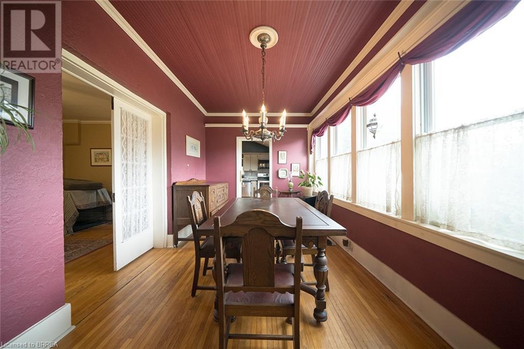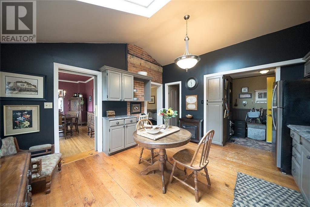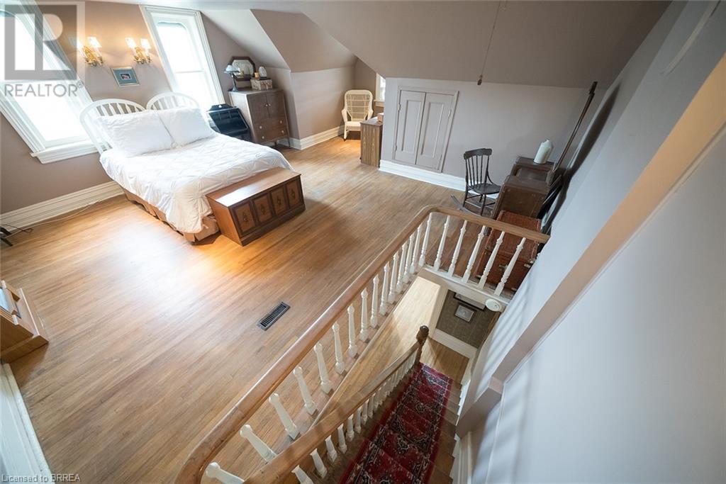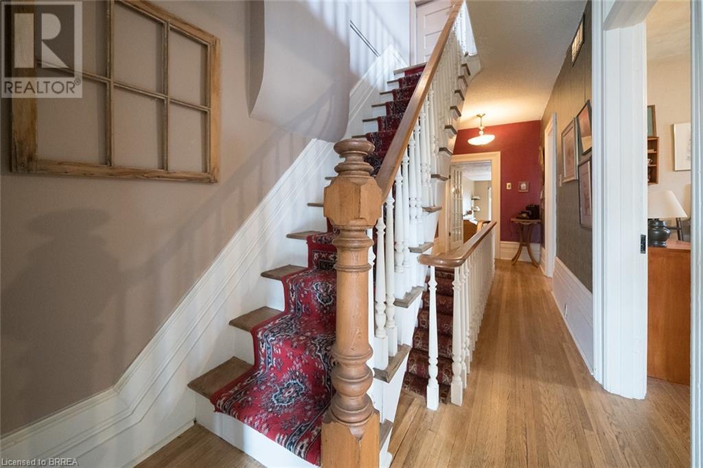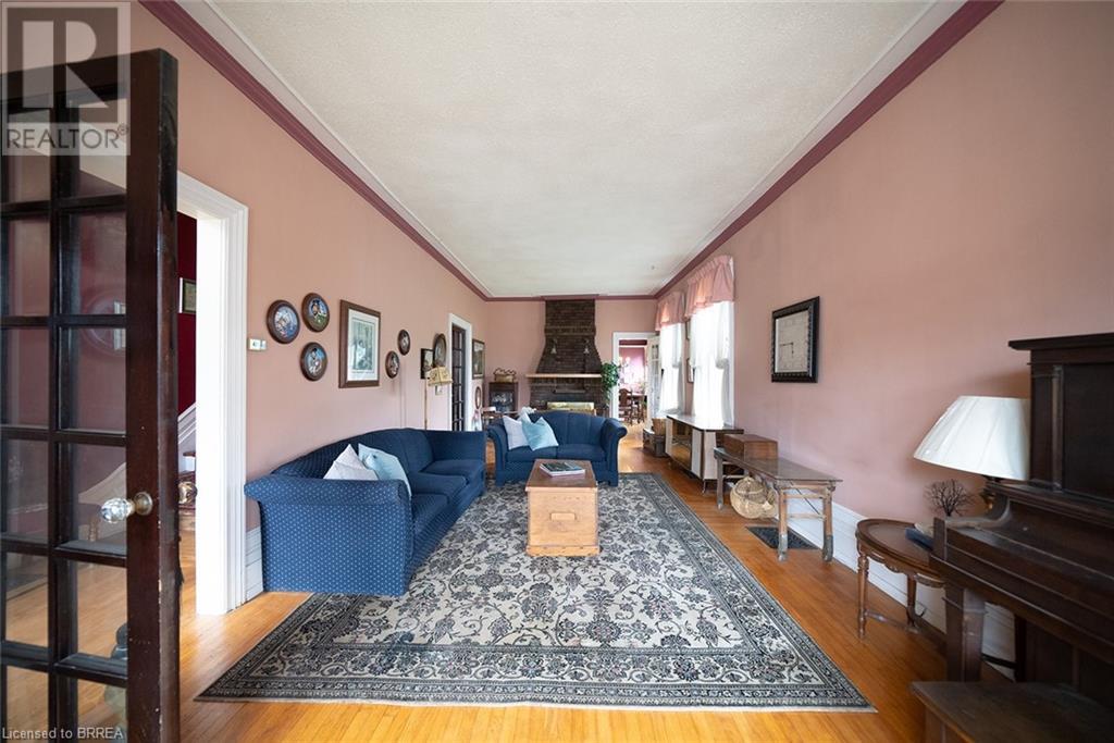 Welcome to 62 William street in Paris! Step back in time with this lovingly maintained 19th-century character home, cared for by the same owners for over 30 years. Boasting 2460 sq ft, this home is filled with timeless charm, where impressive millwork & deep baseboards lend a sense of grandeur to every room. With 4 bedrooms, 2 bathrooms and original hardwoods throughout, this property offers a blend of comfort & charm. Through the front doors, the impressive foyer leads to a living room through a single French door and features a bay window on one side and a brick fireplace on the other, creating a balanced space. The dining room has a panelled ceiling that adds texture & depth to the space. The windows & architectural details add a refined stately feel, making it an ideal setting for intimate gatherings. The kitchen has a vaulted ceiling with a skylight. The room blends modern conveniences of stainless steel appliances & sleek cabinetry, with charming rustic details, including hardwood floors, exposed brick & a breakfast nook. A mudroom with access to the rear yard is located off the kitchen. The main floor is complete with a den and a 3pc bathroom. This staircase leading to the second floor is a standout feature, adorned with elegantly crafted woodwork. Three bedrooms await on the second floor, including one with a charming sun porch. A 3pc bathroom with a classic clawfoot tub completes the upper level. The third level of the home serves as a primary bedroom, featuring cozy alcoves & a peaceful atmosphere. The unfinished basement with approximately 7ft of clearance presents potential for future development. The backyard is a private retreat with lush greenery & multiple seating areas. Just 100 ft from downtown, you’re moments away from shops, dining, and sights, plus a short 2-minute walk to the scenic S.C. Johnson Trail. The sale includes an additional 3500sq ft lot opposite the laneway, where you can explore the possibility of rebuilding a two-car garage. (id:55009)