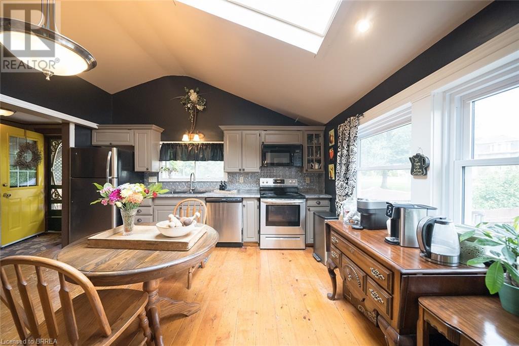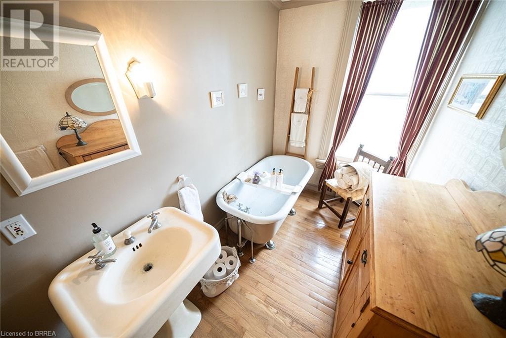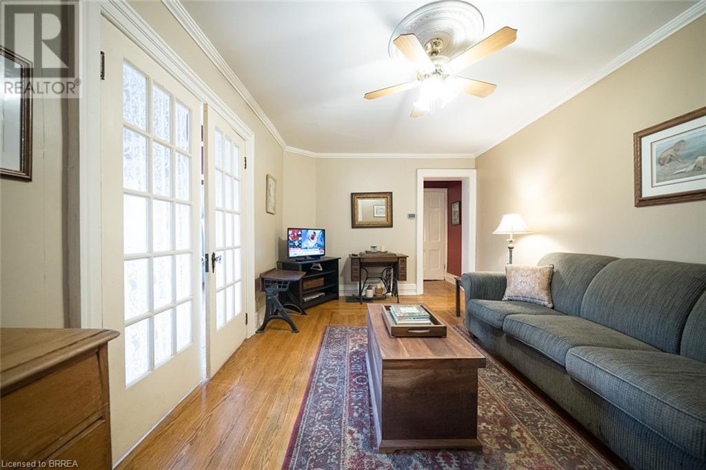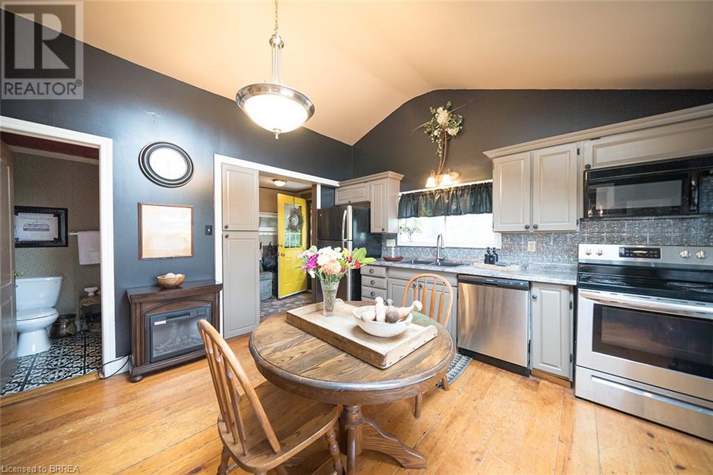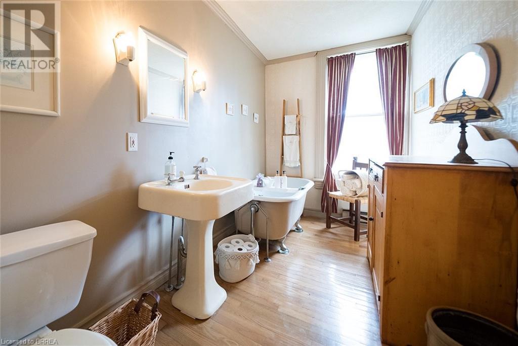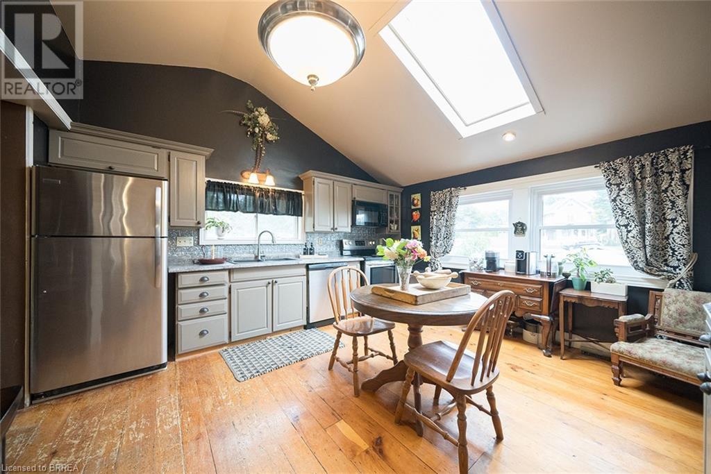 Welcome to 62 William street in Paris! Step back in time with this lovingly maintained 19th-century character home, cared for by the same owners for over 30 years. Boasting 2460 sq ft, this home is filled with timeless charm, where impressive millwork & deep baseboards lend a sense of grandeur to every room. With 4 bedrooms, 2 bathrooms and original hardwoods throughout, this property offers a blend of comfort & charm. Through the front doors, the impressive foyer leads to a living room through a single French door and features a bay window on one side and a brick fireplace on the other, creating a balanced space. The dining room has a panelled ceiling that adds texture & depth to the space. The windows & architectural details add a refined stately feel, making it an ideal setting for intimate gatherings. The kitchen has a vaulted ceiling with a skylight. The room blends modern conveniences of stainless steel appliances & sleek cabinetry, with charming rustic details, including hardwood floors, exposed brick & a breakfast nook. A mudroom with access to the rear yard is located off the kitchen. The main floor is complete with a den and a 3pc bathroom. This staircase leading to the second floor is a standout feature, adorned with elegantly crafted woodwork. Three bedrooms await on the second floor, including one with a charming sun porch. A 3pc bathroom with a classic clawfoot tub completes the upper level. The third level of the home serves as a primary bedroom, featuring cozy alcoves & a peaceful atmosphere. The unfinished basement with approximately 7ft of clearance presents potential for future development. The backyard is a private retreat with lush greenery & multiple seating areas. Just 100 ft from downtown, you’re moments away from shops, dining, and sights, plus a short 2-minute walk to the scenic S.C. Johnson Trail. The sale includes an additional 3500sq ft lot opposite the laneway, where you can explore the possibility of rebuilding a two-car garage. (id:55009)