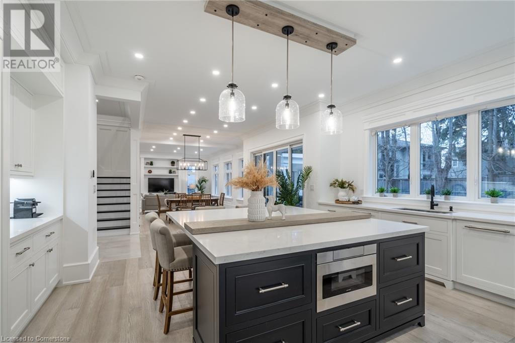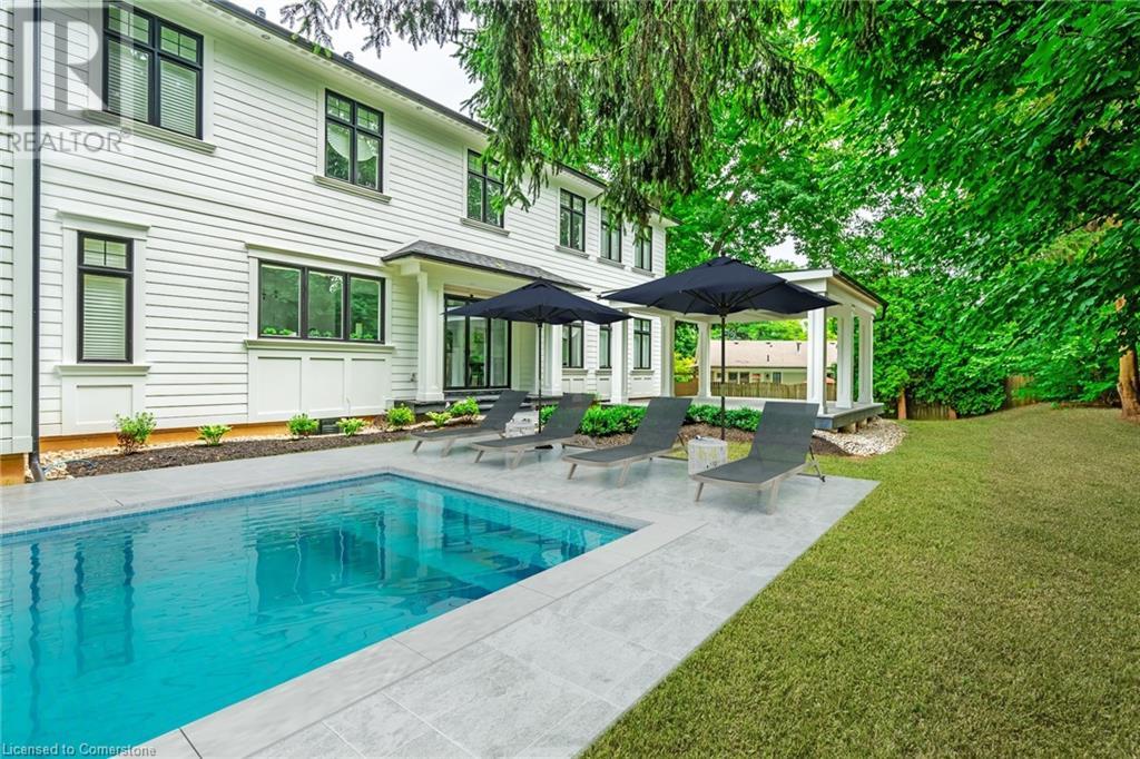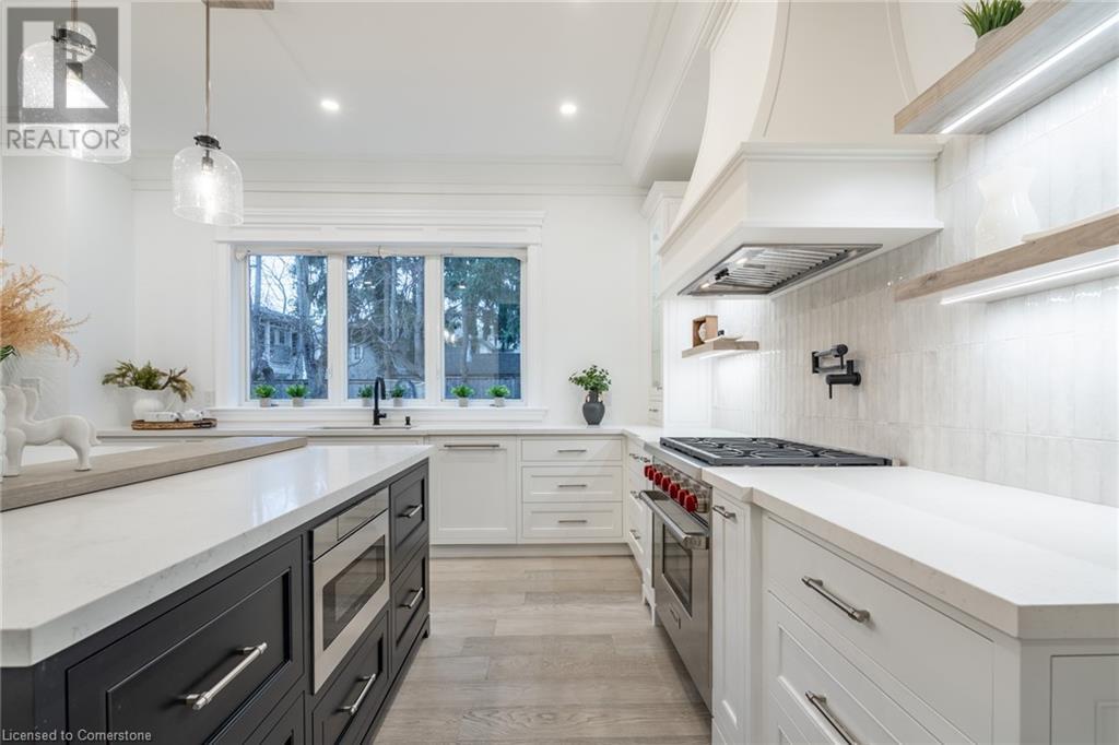 Indulge in luxury at this exceptional residence! Positioned in a highly sought-after neighbourhood in South Burlington this home is a short walk from downtown & the Burlington Golf & Country Club. This meticulously crafted home spans over 4500 square feet, showcasing charm & unparalleled craftsmanship. Offering 4+1 bedrooms & 7 bathrooms, it seamlessly combines sophistication with comfort, catering to the refined homeowner. The gourmet kitchen, equipped with high-end Fisher & Paykel appliances & a Wolf 6-burner stove, is a haven to those with a passion for cooking. The open-concept layout transitions from intimate family dinners to grand formal gatherings in the dining room. The primary suite serves as a relaxing retreat, featuring spa-like ensuite bathrooms for both partners and a dressing room. Generously sized additional bedrooms, each with its own ensuite bathroom & walk-in closet, further enhance the allure. The finished basement, complete with a full kitchen, living space, bedroom, and bathroom, offers versatility & is ideal for an in-law setup. A mudroom leads to the 3-car tandem garage, ensuring ample parking. The yard is equipped with a full irrigation system, & newly added gazebo out back, perfect for entertaining. Experience the seamless blend of luxury & functionality firsthand! First charge vendor take back mortgage available. Rear yard landscape design supports installation of inground pool, negotiable in purchase. Don’t be TOO LATE*! *REG TM. RSA. (id:55009)