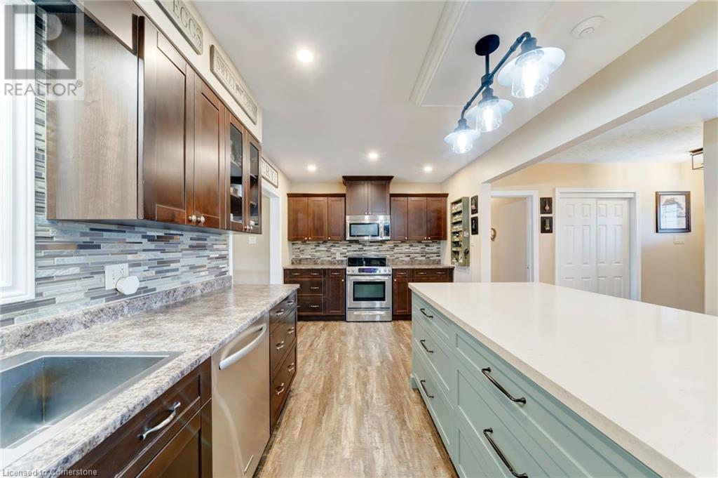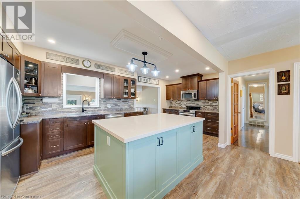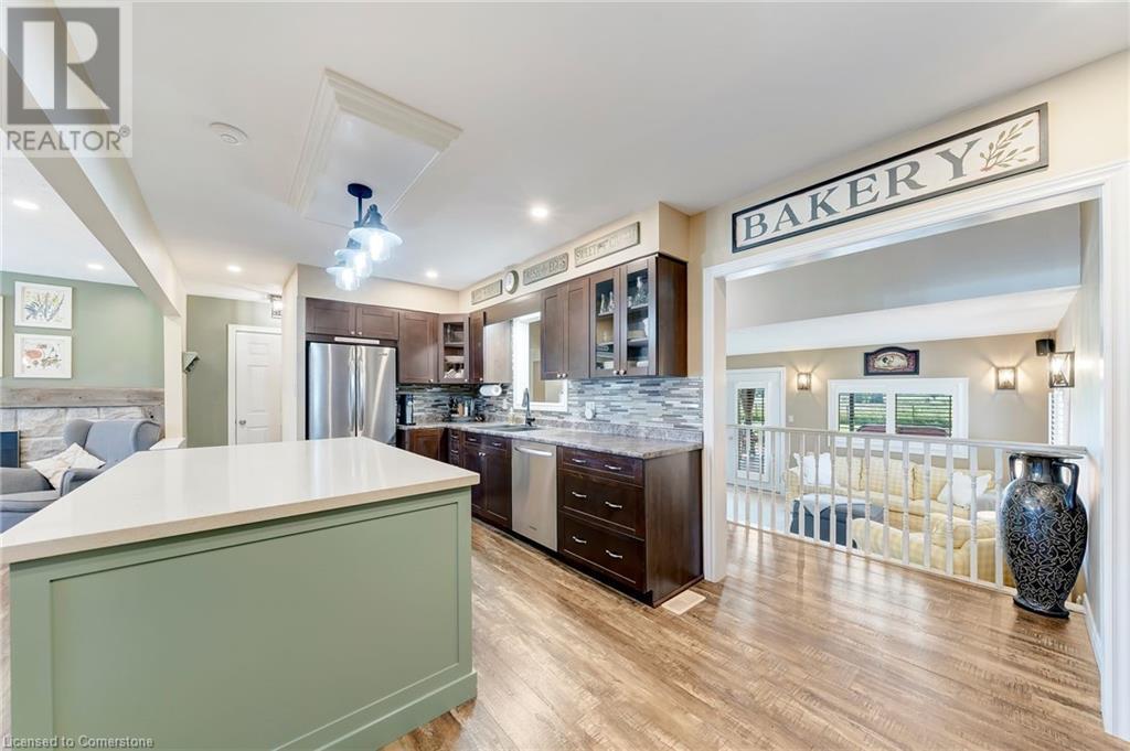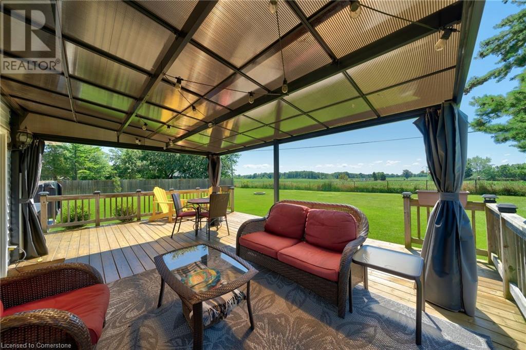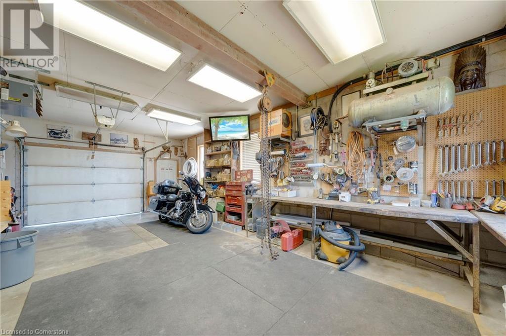 Welcome to Rural Living with all your amenity needs within just a short drive. This well maintained Bungalow with a separate 30X16' Shop that is heated and air conditioned really shows it's pride of ownership. Situated on a perfectly landscaped and fully fenced half acre property looking into farm fields while you enjoy privacy on your covered porch or hot tub. The home itself is very spacious. Recently updated kitchen, bathroom and flooring. Featuring a large dining area with separate family room on the main. A fully finished basement with large recreational room and office/den. This entire property is backed up with a 27 KILOWATT Honeywell Generator(23') powered by natural gas and an upgraded gas meter. It is also equipped with a new roof on all buildings(22'), a newer furnace, A/C unit and hot water heater that are all owned. A back up sump pump battery, newer plastic septic tank, a drilled Well + separate 2000 gallon Cistern with full purification system including: ionizer, softeners, carbon filters, particle filter and UV bulbs. Everything you want in a Rural home. Do not miss out on this opportunity. Contact me today for a private tour! (id:55009)