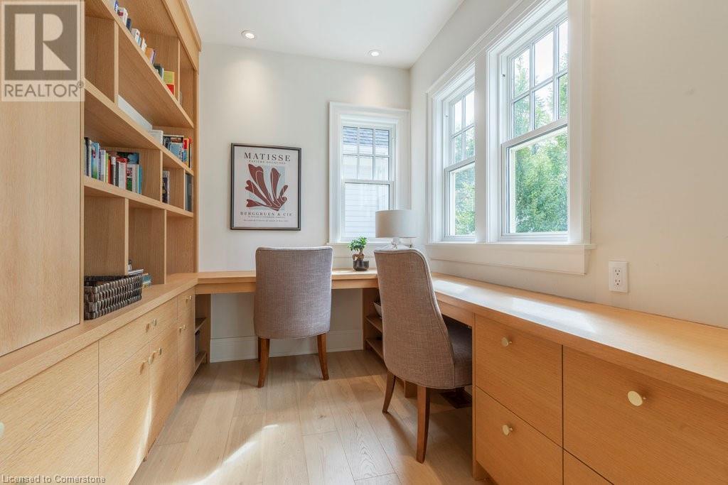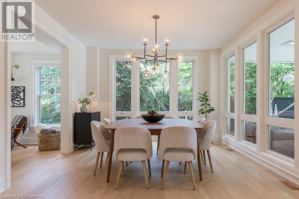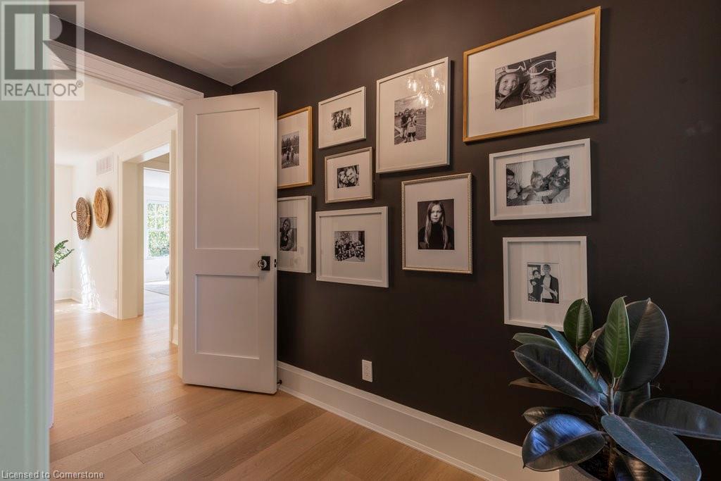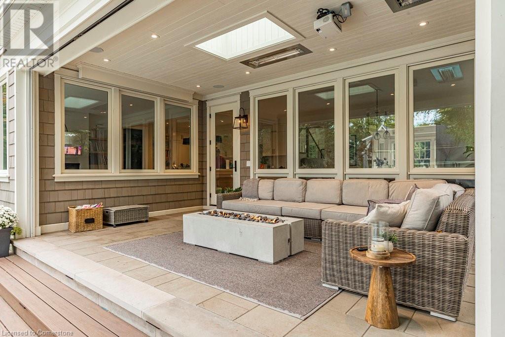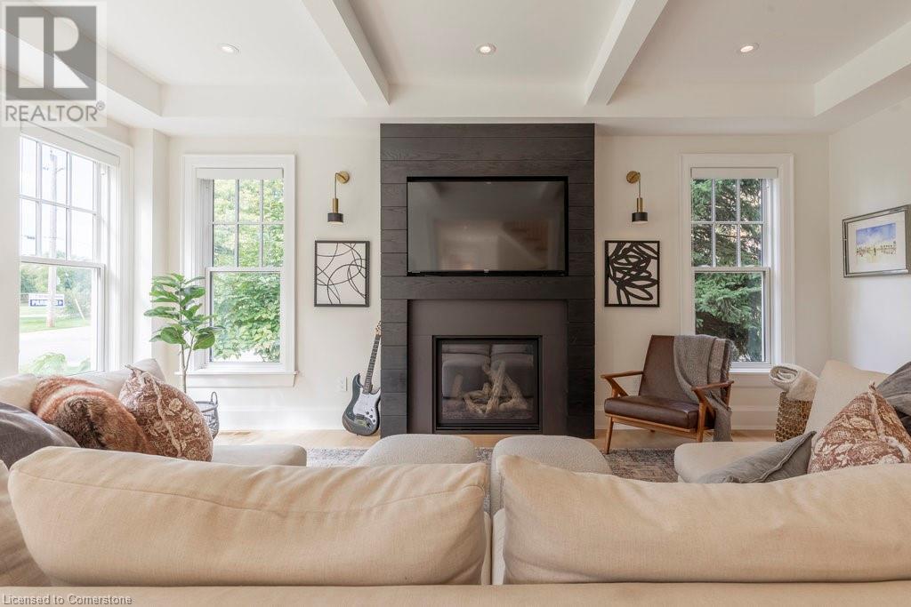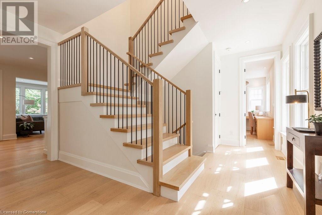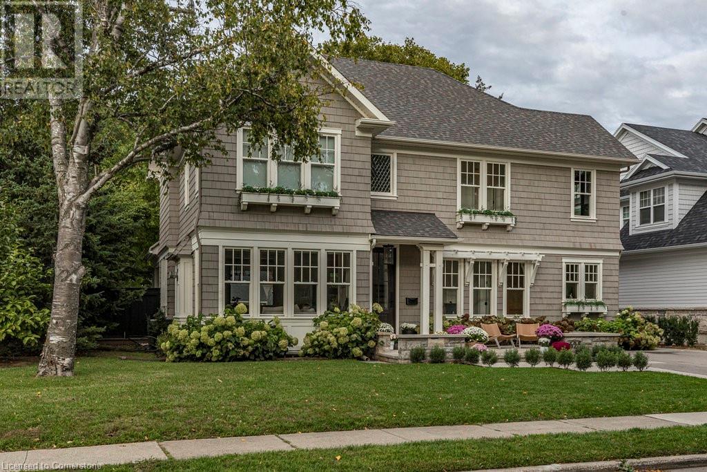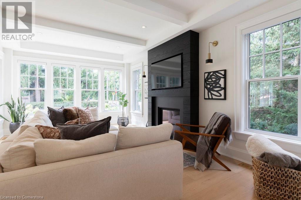 Experience luxury, comfort, and practicality in this custom home designed by award-winning architect John Williams in downtown Burlington. With over 50 windows, the home is bathed in natural light, creating a bright and airy atmosphere. Every detail in this one-of-a-kind gem reflects thoughtful design and quality craftsmanship. Upon entering, you'll notice the difference a custom-built home makes. The layout is ideal for growing families and entertaining, featuring heated floors, a spacious walk-in pantry with a second fridge, and a convenient water bottle refill station. A separate mudroom entrance adds extra storage to keep your family organized. The home exudes charm and character rarely found in newer builds. The open-concept kitchen centers around a traditional wood-burning fireplace, perfect for family gatherings or quiet evenings. A separate family room and main floor office or craft room provide additional functionality. Upstairs, there are four spacious bedrooms, including a luxurious primary suite. The three beautifully designed bathrooms feature rain showers for a spa-like experience. The backyard is a private oasis, professionally landscaped with mature trees. It includes a newly lined pool, hot tub, and a heated covered porch equipped with automated screens, a projector, and a gas fire pit—ideal for year-round relaxation or entertaining. At the front, an oversized courtyard sitting area offers a peaceful retreat. The detached single-car garage comes with a Tesla charger, and there's parking for four cars, ensuring ample space for family and guests. Additionally, the unfinished lower level with 9-foot ceilings provides incredible potential to expand and add value to this remarkable property. (id:55009)