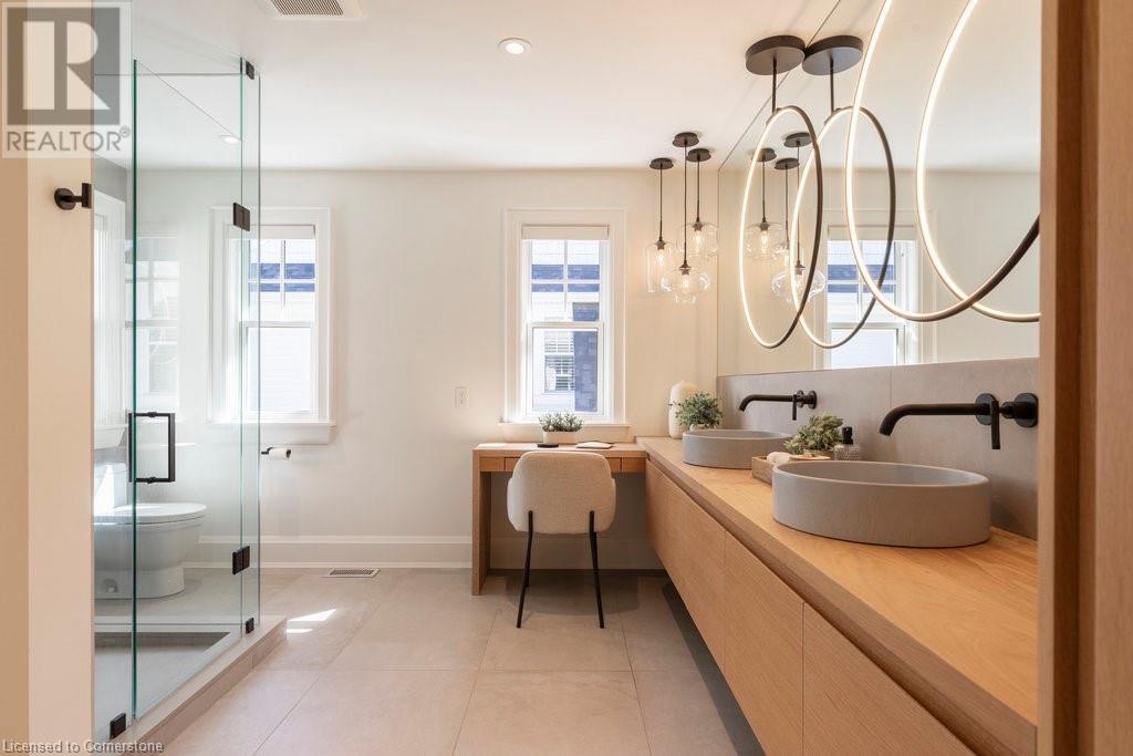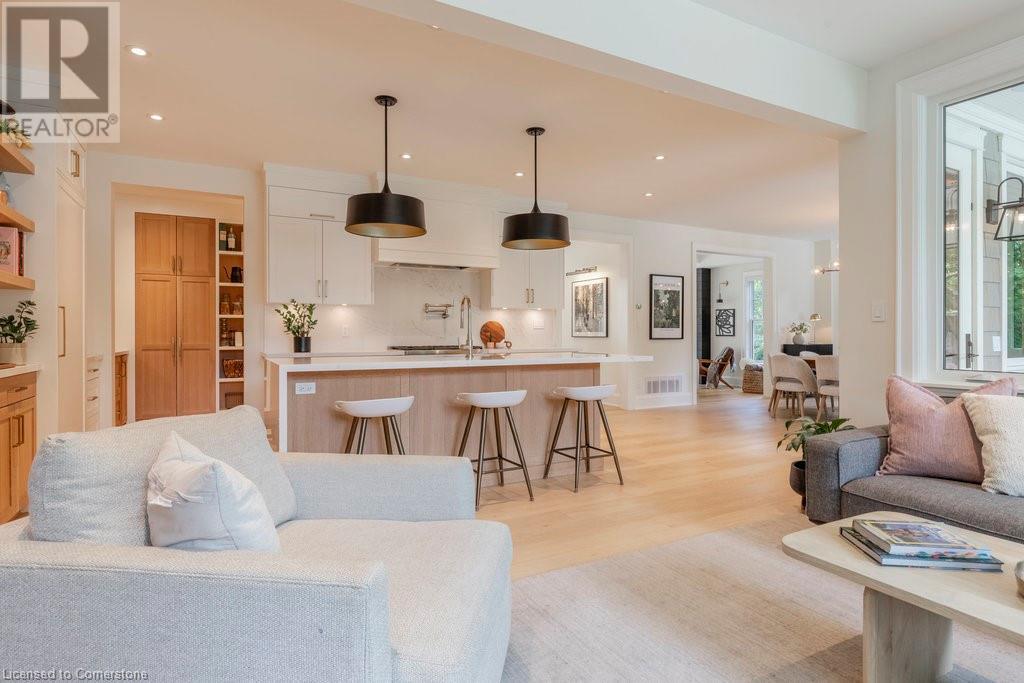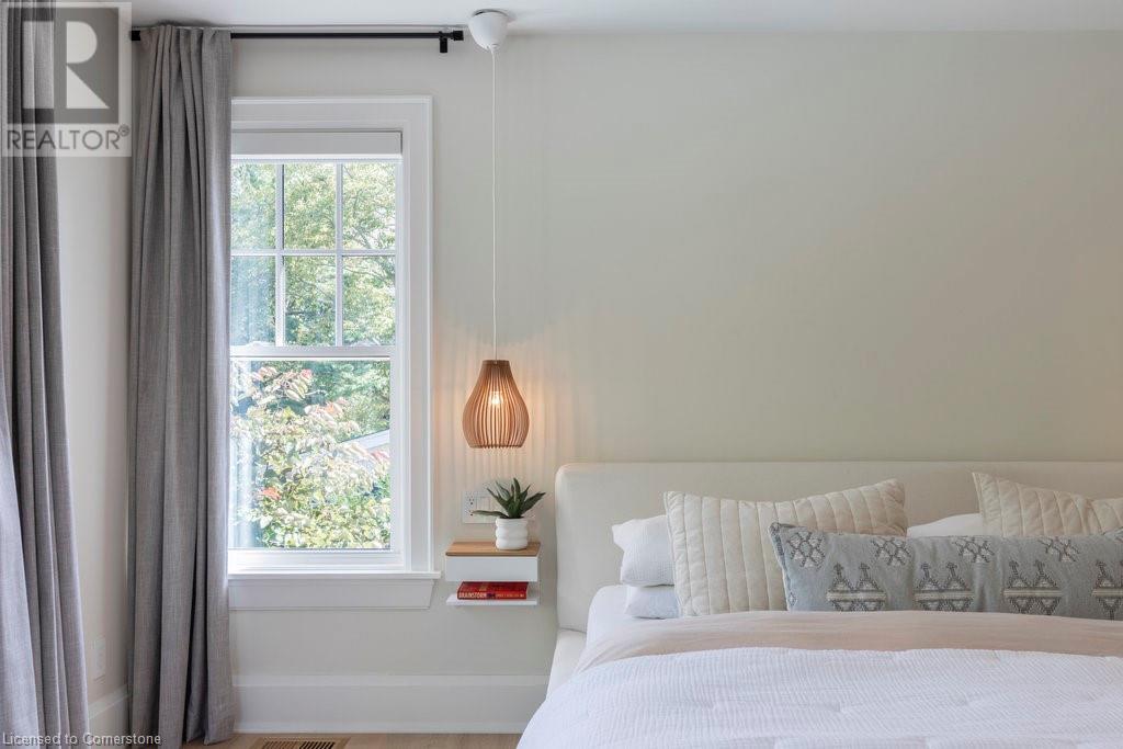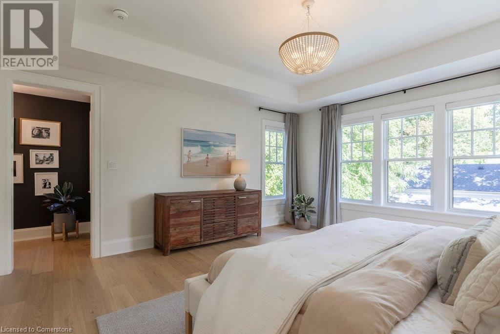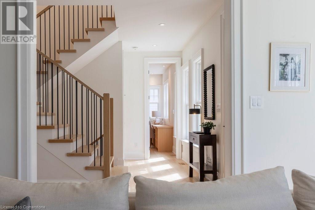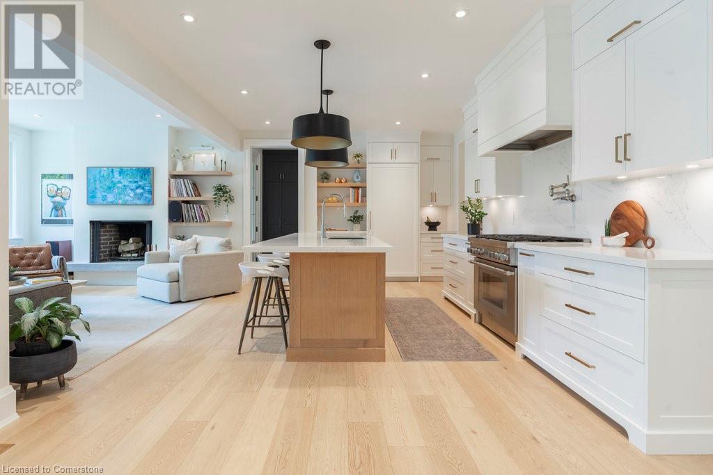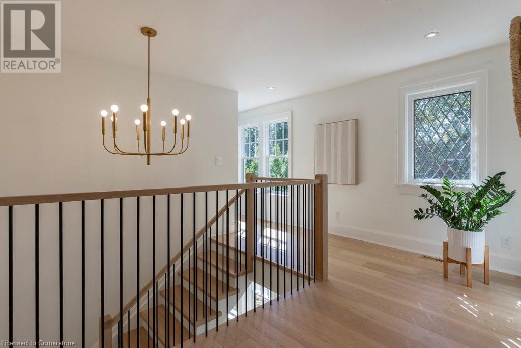 Experience luxury, comfort, and practicality in this custom home designed by award-winning architect John Williams in downtown Burlington. With over 50 windows, the home is bathed in natural light, creating a bright and airy atmosphere. Every detail in this one-of-a-kind gem reflects thoughtful design and quality craftsmanship. Upon entering, you'll notice the difference a custom-built home makes. The layout is ideal for growing families and entertaining, featuring heated floors, a spacious walk-in pantry with a second fridge, and a convenient water bottle refill station. A separate mudroom entrance adds extra storage to keep your family organized. The home exudes charm and character rarely found in newer builds. The open-concept kitchen centers around a traditional wood-burning fireplace, perfect for family gatherings or quiet evenings. A separate family room and main floor office or craft room provide additional functionality. Upstairs, there are four spacious bedrooms, including a luxurious primary suite. The three beautifully designed bathrooms feature rain showers for a spa-like experience. The backyard is a private oasis, professionally landscaped with mature trees. It includes a newly lined pool, hot tub, and a heated covered porch equipped with automated screens, a projector, and a gas fire pit—ideal for year-round relaxation or entertaining. At the front, an oversized courtyard sitting area offers a peaceful retreat. The detached single-car garage comes with a Tesla charger, and there's parking for four cars, ensuring ample space for family and guests. Additionally, the unfinished lower level with 9-foot ceilings provides incredible potential to expand and add value to this remarkable property. (id:55009)