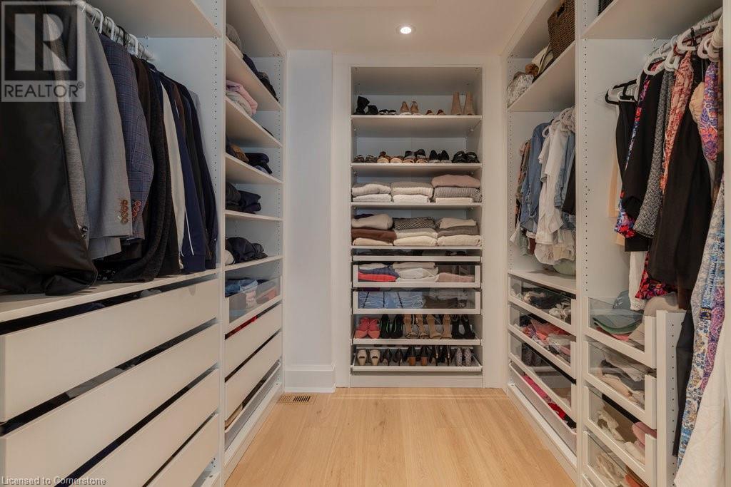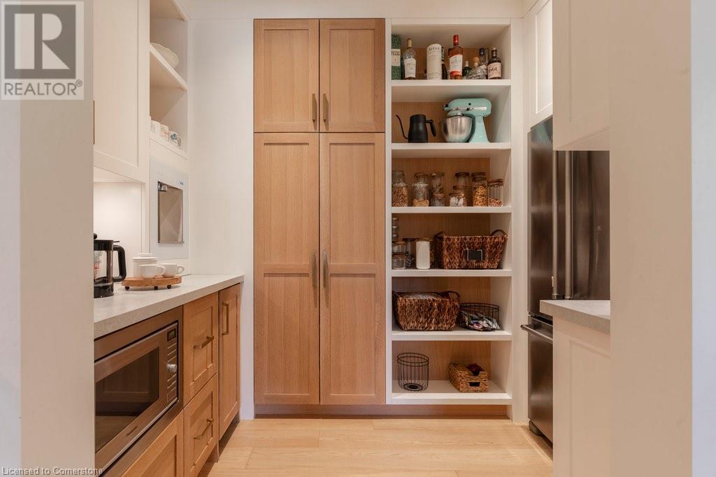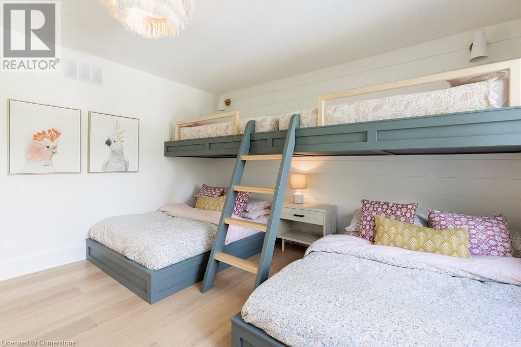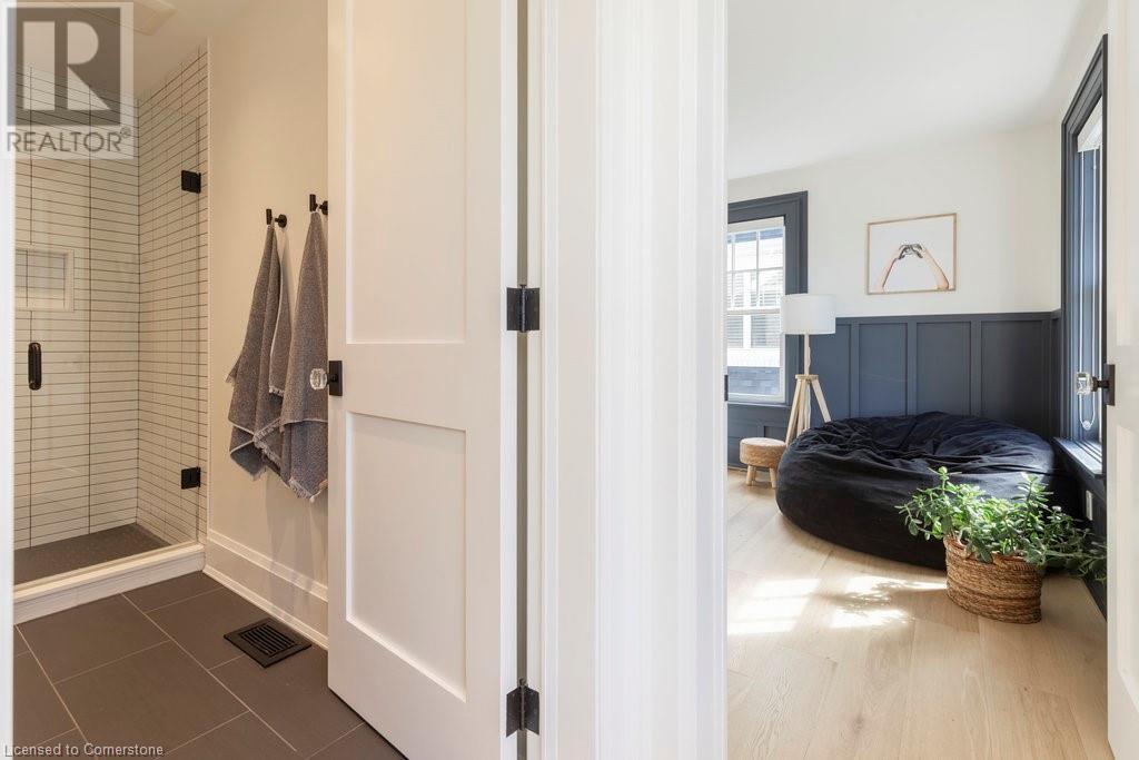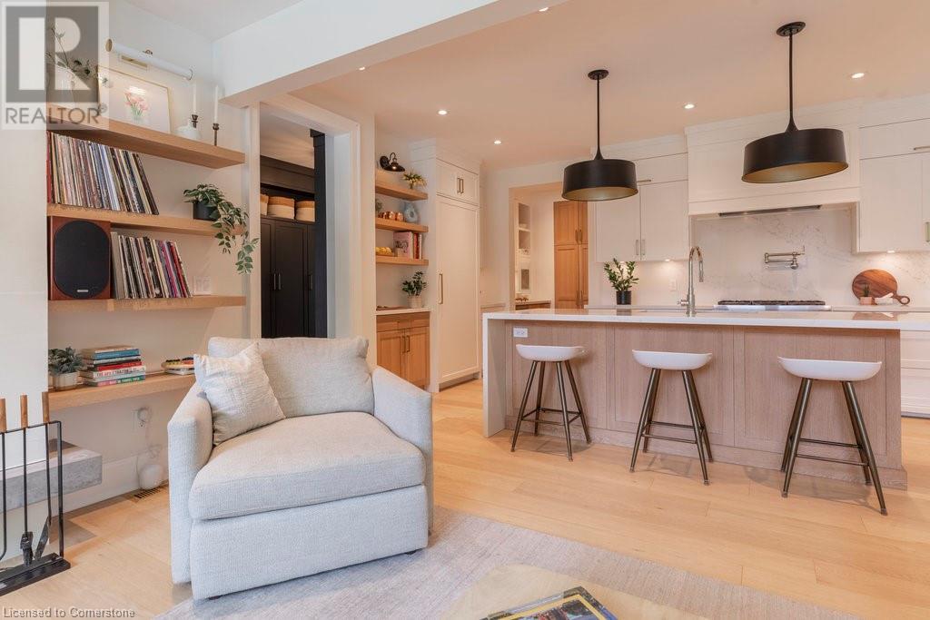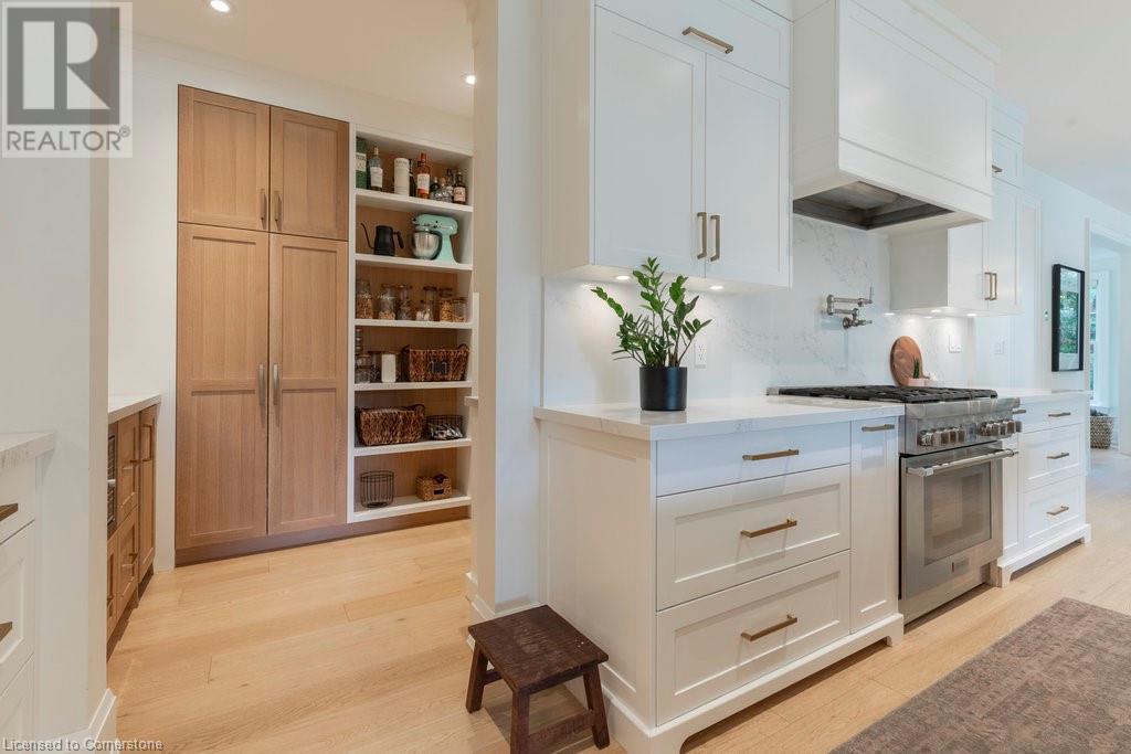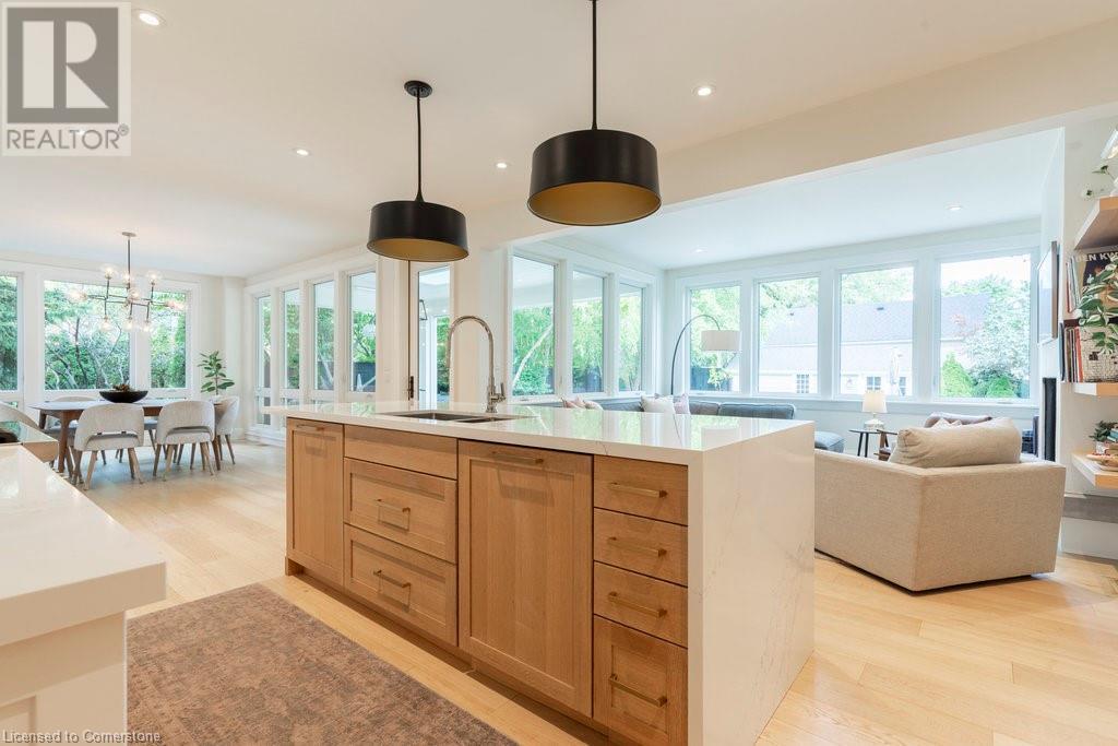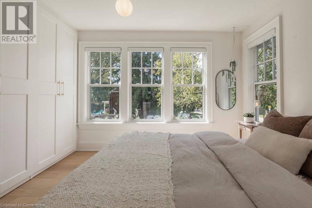 Experience luxury, comfort, and practicality in this custom home designed by award-winning architect John Williams in downtown Burlington. With over 50 windows, the home is bathed in natural light, creating a bright and airy atmosphere. Every detail in this one-of-a-kind gem reflects thoughtful design and quality craftsmanship. Upon entering, you'll notice the difference a custom-built home makes. The layout is ideal for growing families and entertaining, featuring heated floors, a spacious walk-in pantry with a second fridge, and a convenient water bottle refill station. A separate mudroom entrance adds extra storage to keep your family organized. The home exudes charm and character rarely found in newer builds. The open-concept kitchen centers around a traditional wood-burning fireplace, perfect for family gatherings or quiet evenings. A separate family room and main floor office or craft room provide additional functionality. Upstairs, there are four spacious bedrooms, including a luxurious primary suite. The three beautifully designed bathrooms feature rain showers for a spa-like experience. The backyard is a private oasis, professionally landscaped with mature trees. It includes a newly lined pool, hot tub, and a heated covered porch equipped with automated screens, a projector, and a gas fire pit—ideal for year-round relaxation or entertaining. At the front, an oversized courtyard sitting area offers a peaceful retreat. The detached single-car garage comes with a Tesla charger, and there's parking for four cars, ensuring ample space for family and guests. Additionally, the unfinished lower level with 9-foot ceilings provides incredible potential to expand and add value to this remarkable property. (id:55009)