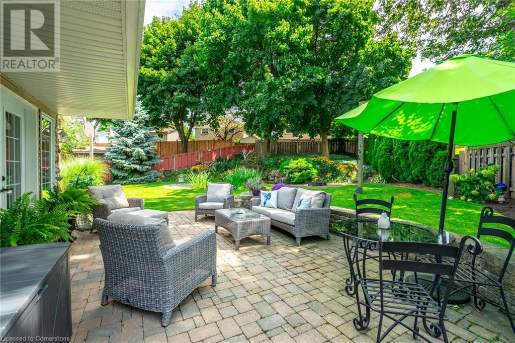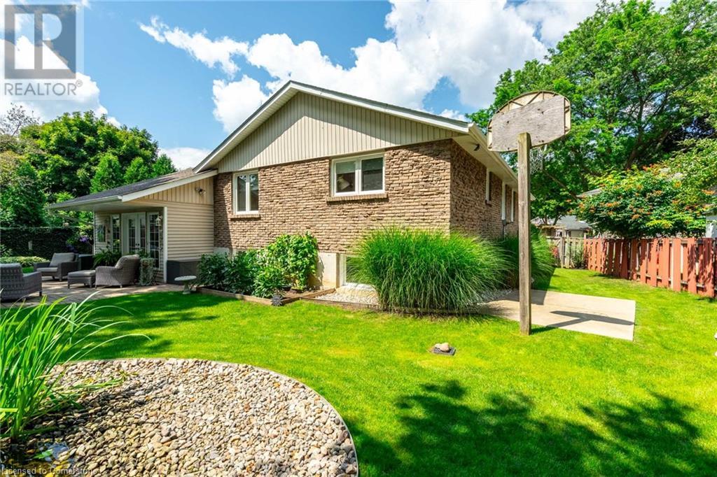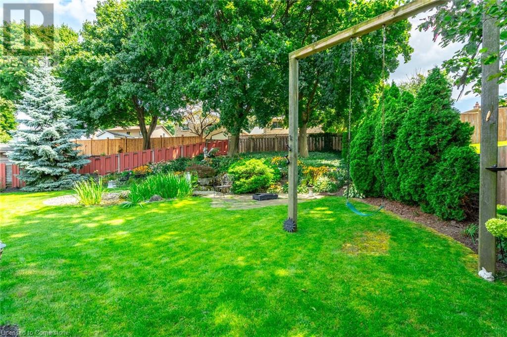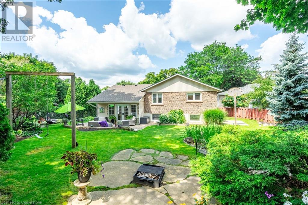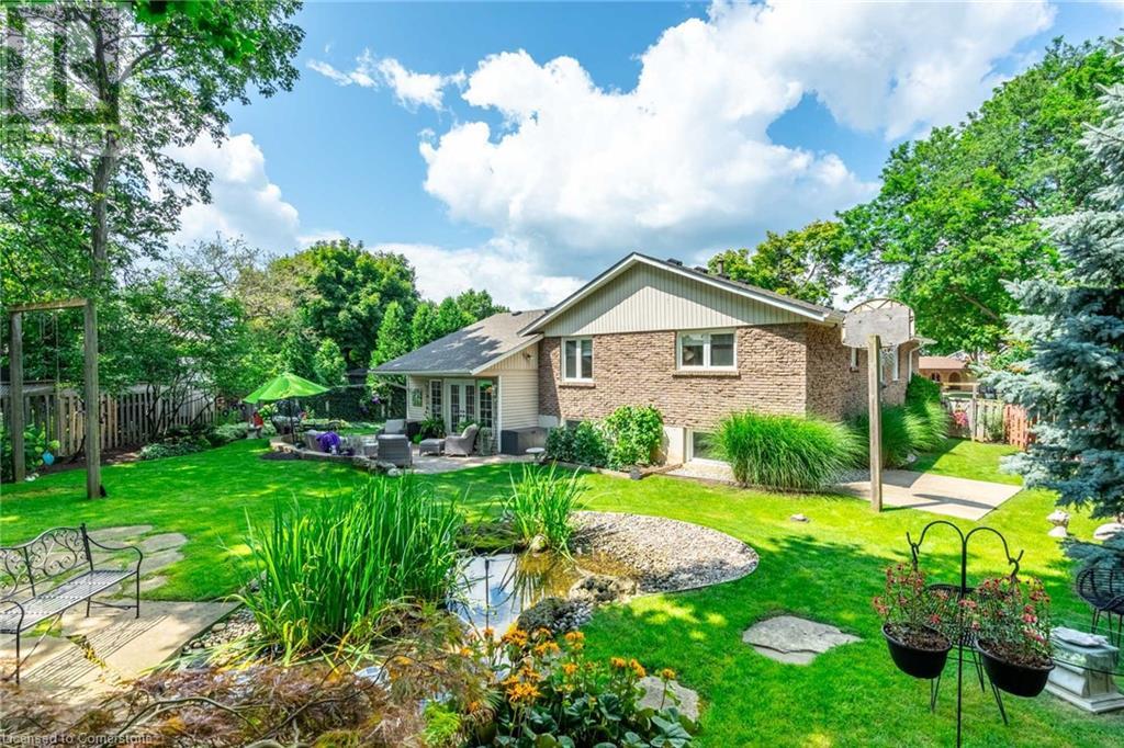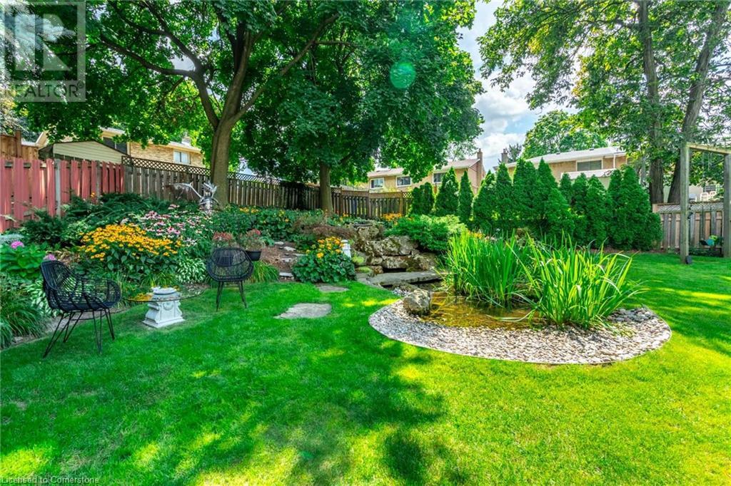 Welcome home! Located on a quiet, court-like street in the sought after Fessenden neighbourhood of Hamilton Mountain is this 4 bedroom, 1+1 bath sidesplit with over 2,700 square feet of living space. Nestled on a large, pie-shaped lot with extensively landscaped gardens, this home offers the perfect blend of indoor & outdoor space. The backyard features lush gardens, a stunning tiered waterfall, pond, basketball court, firepit area & large patio perfect for lounging & al-fresco dining. Inside, the home has been tastefully renovated. The kitchen features white shaker-style cabinets, stainless steel appliances, an oversized island & dedicated desk area as well as leathered granite countertops. Open to the kitchen is a seating area with access to the patio as well as a gas fireplace for those cozy nights at home during winter. The second level houses the spacious family room with large windows & recently added custom built-in bookshelves. There are four bedrooms on this level, with a stunning primary featuring ensuite privileges. The lower level includes oversize windows, TV area & renovated laundry room. Plenty of recent upgrades throughout include new windows & doors, new pond pump, fresh paint throughout including ceilings, new doors & trim throughout, exterior lights, electric outlet replacement indoor & outdoor and more. Don’t be TOO LATE*! *REG TM. RSA (id:55009)