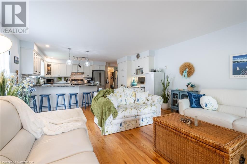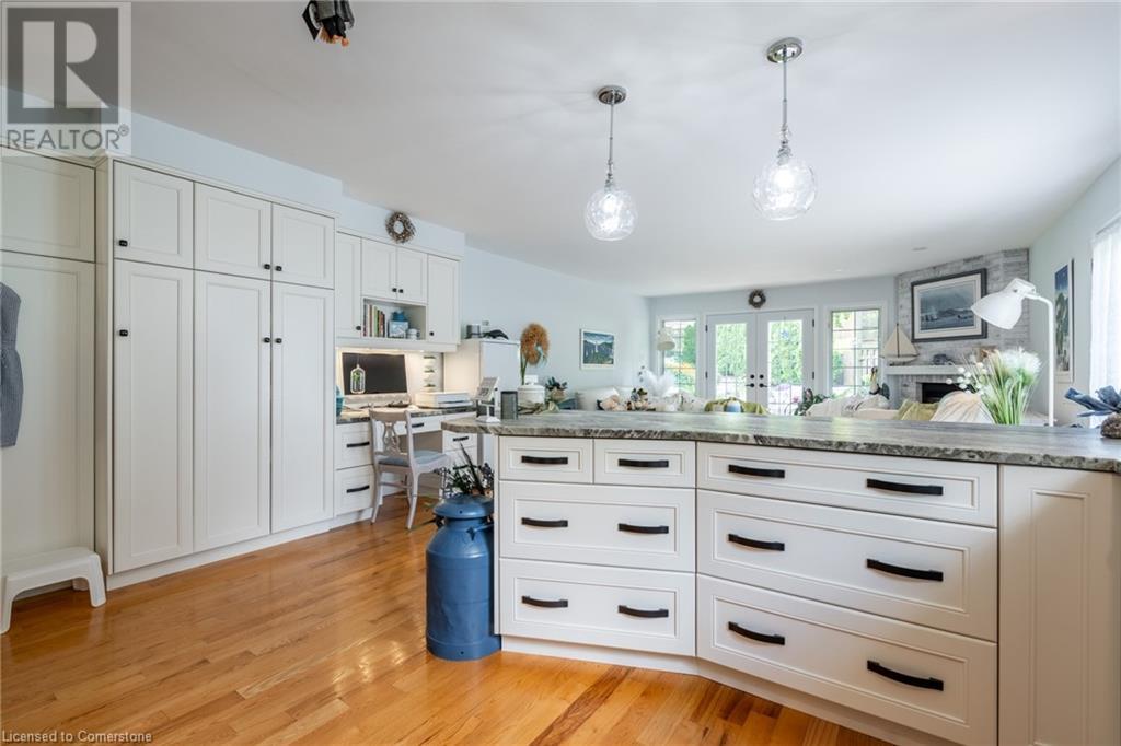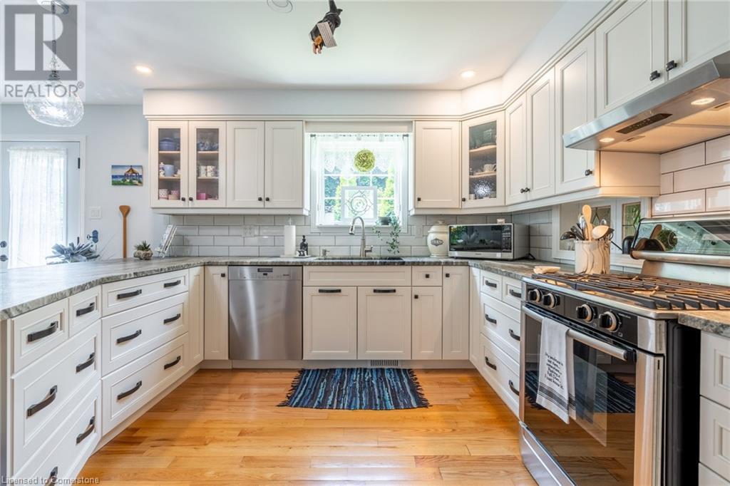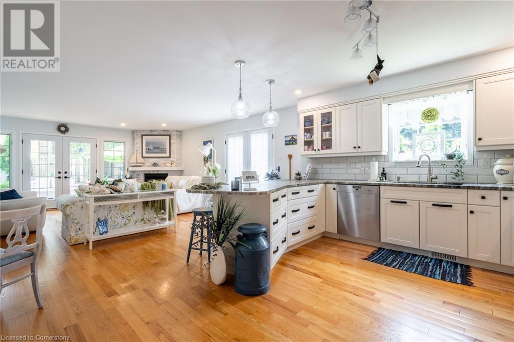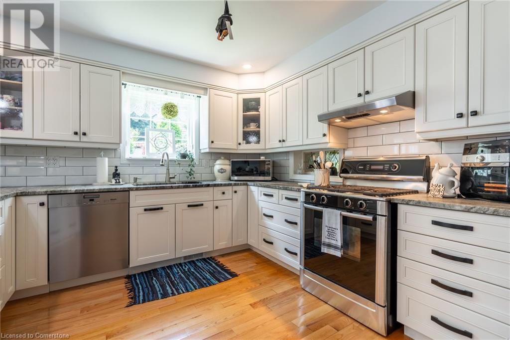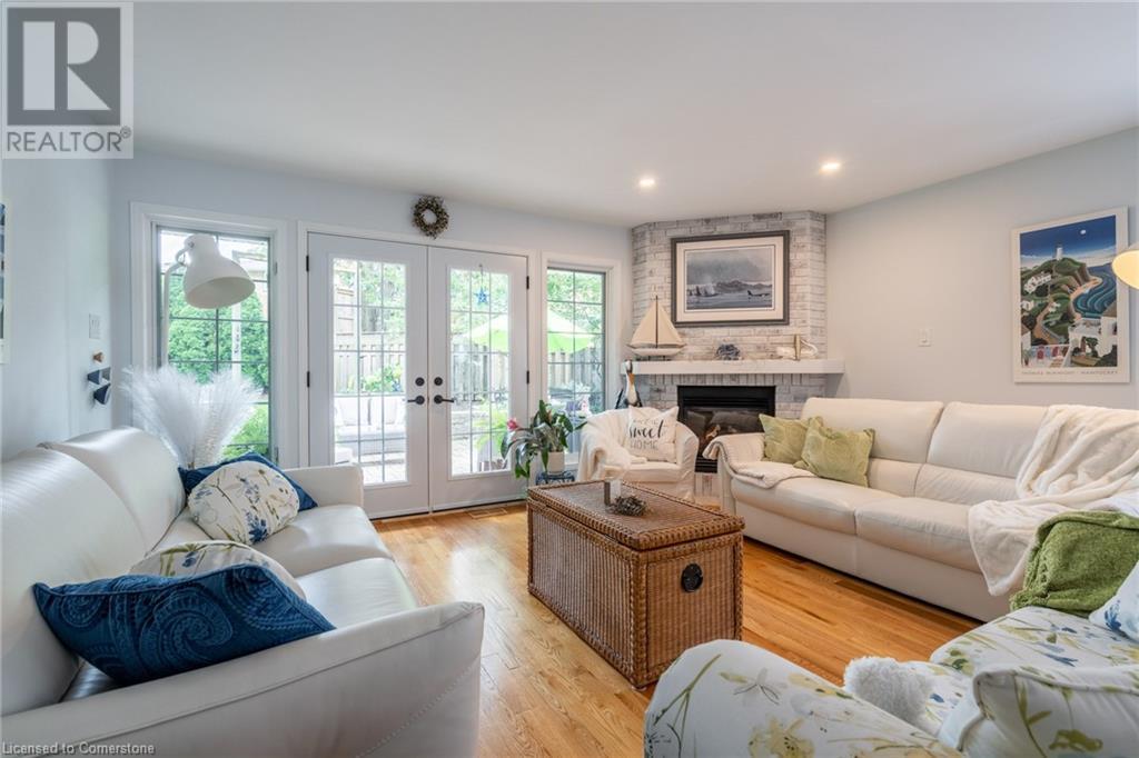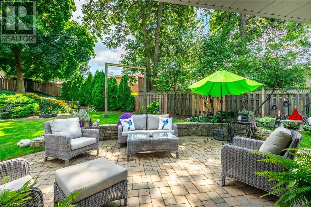 Welcome home! Located on a quiet, court-like street in the sought after Fessenden neighbourhood of Hamilton Mountain is this 4 bedroom, 1+1 bath sidesplit with over 2,700 square feet of living space. Nestled on a large, pie-shaped lot with extensively landscaped gardens, this home offers the perfect blend of indoor & outdoor space. The backyard features lush gardens, a stunning tiered waterfall, pond, basketball court, firepit area & large patio perfect for lounging & al-fresco dining. Inside, the home has been tastefully renovated. The kitchen features white shaker-style cabinets, stainless steel appliances, an oversized island & dedicated desk area as well as leathered granite countertops. Open to the kitchen is a seating area with access to the patio as well as a gas fireplace for those cozy nights at home during winter. The second level houses the spacious family room with large windows & recently added custom built-in bookshelves. There are four bedrooms on this level, with a stunning primary featuring ensuite privileges. The lower level includes oversize windows, TV area & renovated laundry room. Plenty of recent upgrades throughout include new windows & doors, new pond pump, fresh paint throughout including ceilings, new doors & trim throughout, exterior lights, electric outlet replacement indoor & outdoor and more. Don’t be TOO LATE*! *REG TM. RSA (id:55009)
