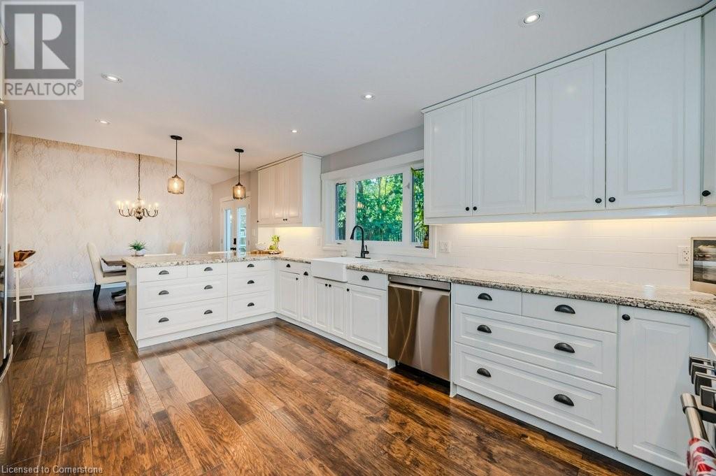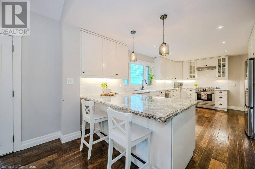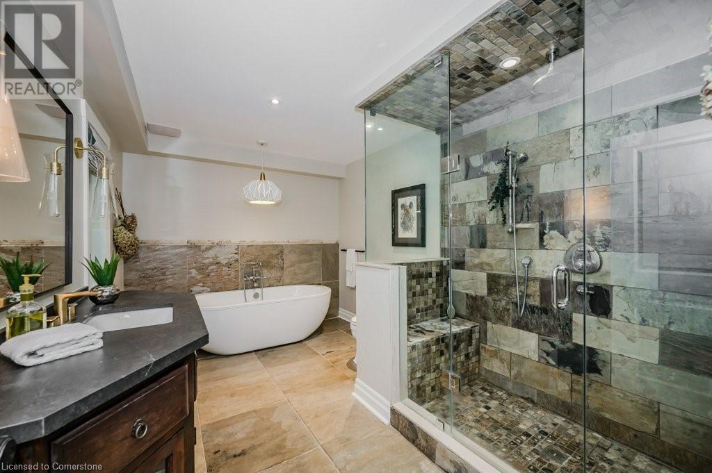 If you love the soothing sounds of birds, rustling leaves & the serenity of nature this location is for you! Nestled on a quiet street in Kilbride. This expansive 66’ x 264’ property offers a private oasis complete with a patio, hot tub & a 600 sq ft outbuilding. (Outbuilding could be converted into a 2 car garage). This charming Cape Cod home boasts 3600 + sq ft of luxurious total living space. The main floor features a primary bedroom with a beautiful renovated spa-like ensuite & upstairs you’ll find 3 large bedrooms & a stylish 4 piece main bath. The main level renovated in 2023 with convenient mudroom/laundry area, 2 piece powder room & family room featuring vaulted ceilings, stone gas fireplace & an alcove filled with natural light creates a cozy nook. Updated white kitchen complete with quartz countertops, stainless steel appliances & spacious eating area opens to a private patio with a hot tub. The newly finished lower level in 2022 features a recreation room, bedroom, den & 3 piece bath. Plenty of storage & excellent in-law suite potential makes this space is functional & versatile. You can’t beat this location! Just steps from Kilbride Public School, parks & scenic trails, with skiing at Glen Eden nearby and golf courses. Highway access to Toronto, Burlington & Hamilton for ultimate convenience. Propane tank is owned. Ready to elevate your lifestyle? This home is perfect for a growing family that loves outdoor living. Schedule your private showing today and make this dream home yours! (id:55009)