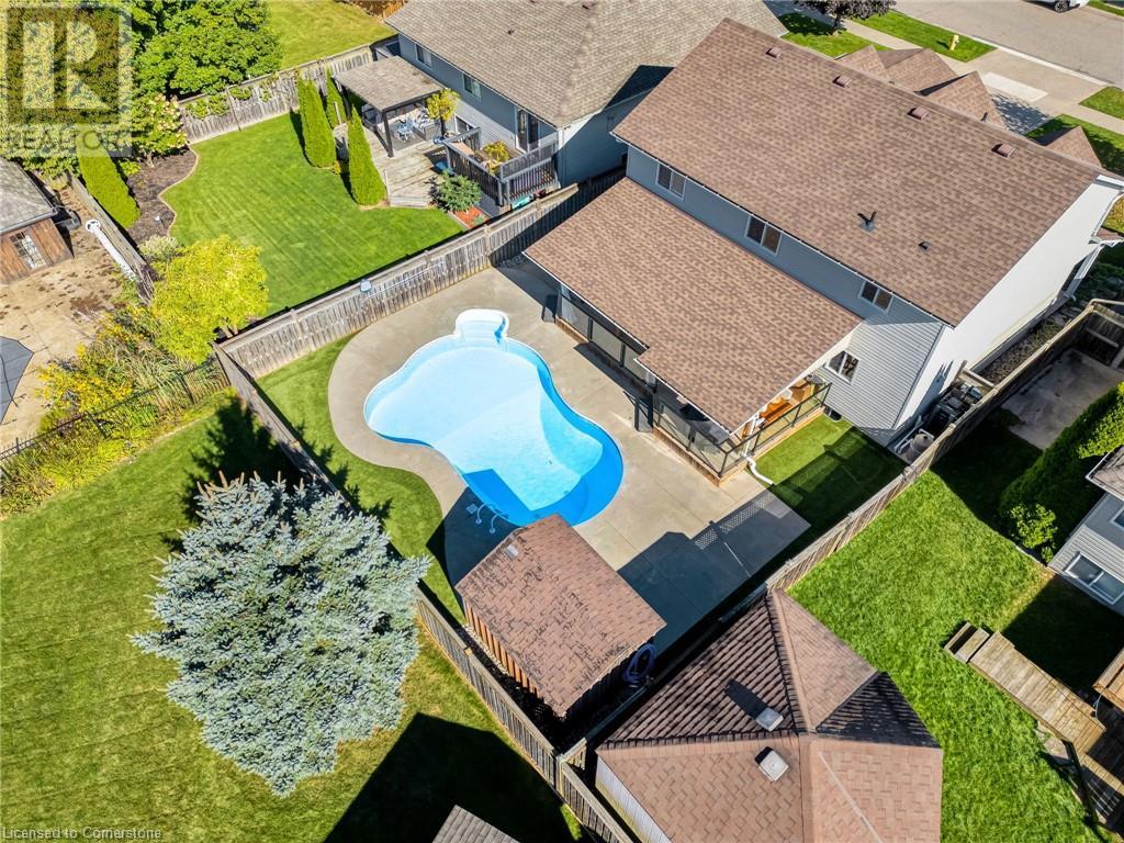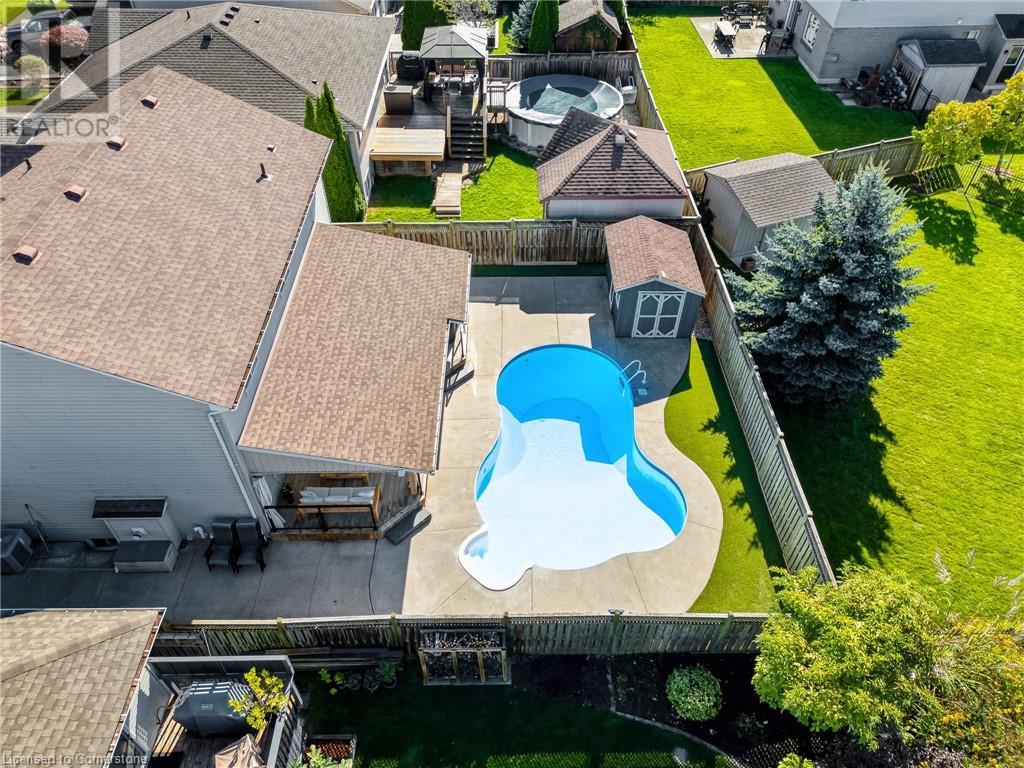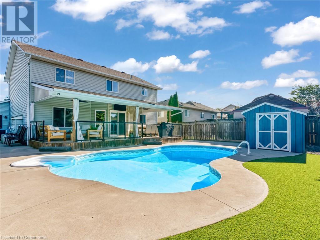 Welcome to 65 Dunrobin Dr, a spacious and beautifully maintained 2-storey home that perfectly blends style, comfort, and functionality. This 5 bedroom, 3.5-bathroom home boasts over 3,000 sq. ft. of finished living space, ideal for families looking for both room to grow and spaces to entertain. As you enter, you'll be greeted by newer luxury vinyl flooring (’20) that flows throughout the main floor, creating a modern yet warm atmosphere. The open-concept kitchen seamlessly connects to the dining area and family room, where you'll find a cozy gas fireplace perfect for relaxing evenings. The living room offers additional space for gatherings or quiet retreats, while the main floor mudroom features convenient laundry facilities. Step outside from the dining area onto the expansive 350+ sq/ft covered patio, perfect for entertaining guests or spending time with the family. Beyond the patio, you'll find a sparkling pool that’s ideal for summer fun and relaxation. Upstairs is 2 full bathrooms and 4 generously sized bedrooms, including a luxurious primary suite complete with a walk-in closet and a private 3 pc ensuite bathroom - this space provides the perfect escape after a long day. The fully renovated basement offers even more living space with a large rec room with electric fireplace, office area, a bedroom, and a stylish 3-piece bathroom with a custom tile shower. Whether you need extra room for guests, a home office, or a play area, this basement has it all. Additional info: smart and automated lawn sprinkler system for front yard, smart home lighting, forced air heated & insulated garage, shingles replaced 2015, furnace & AC replaced 2020. This home is a true gem in a quiet, family-friendly neighbourhood, offering both elegance and practicality. Don't miss the chance to make it yours! (id:55009)